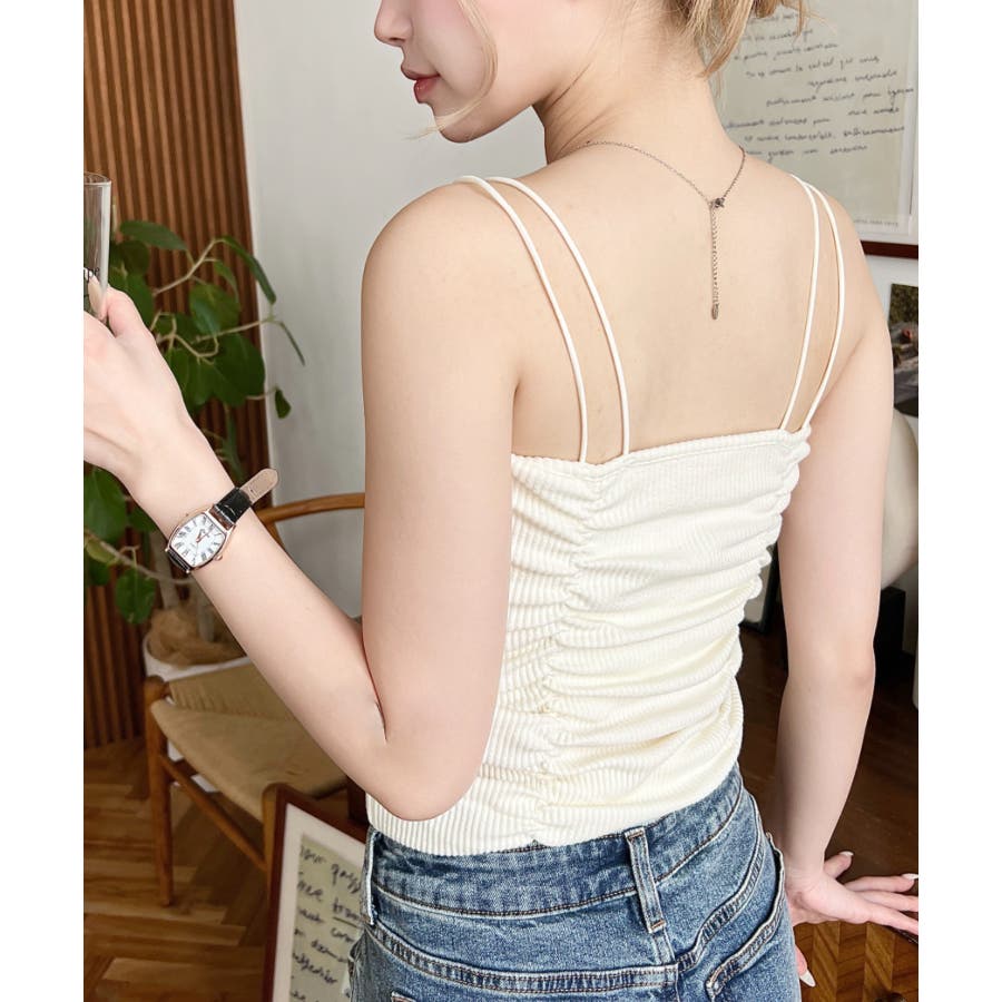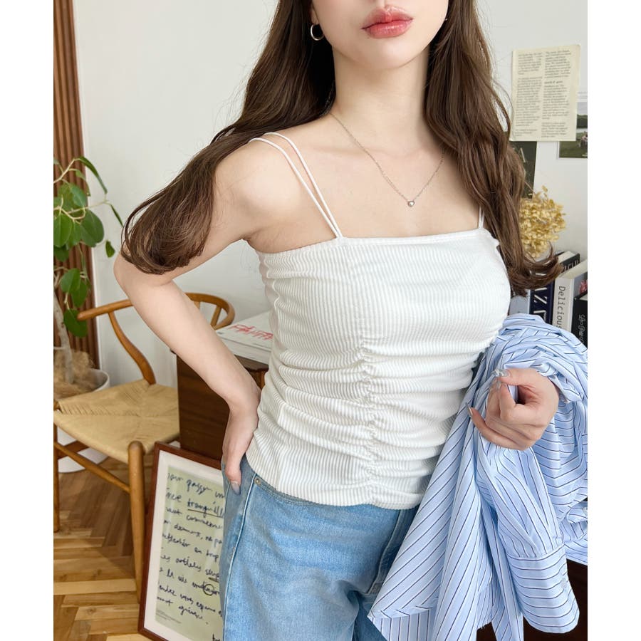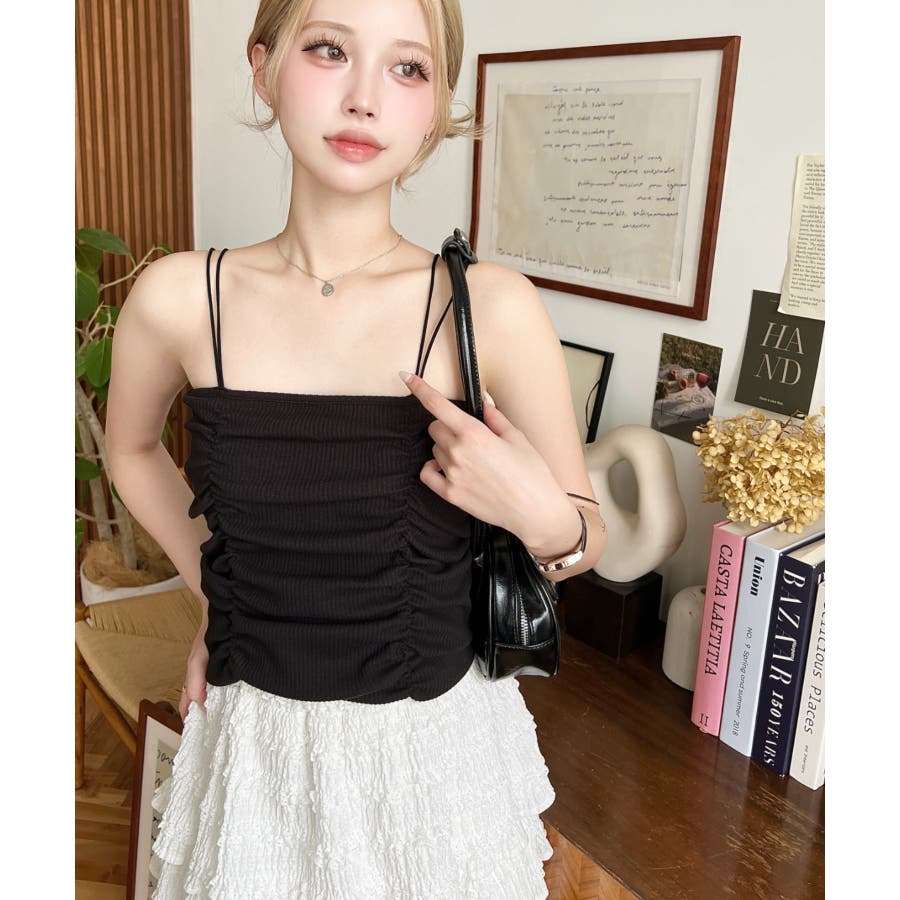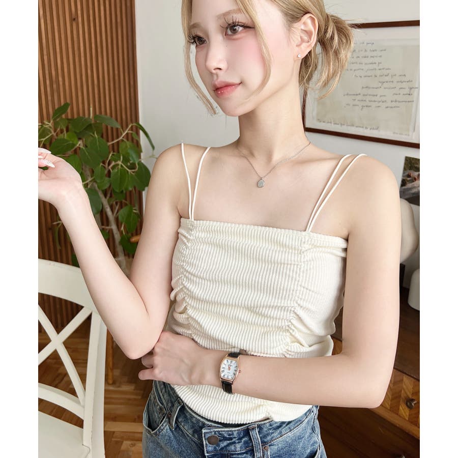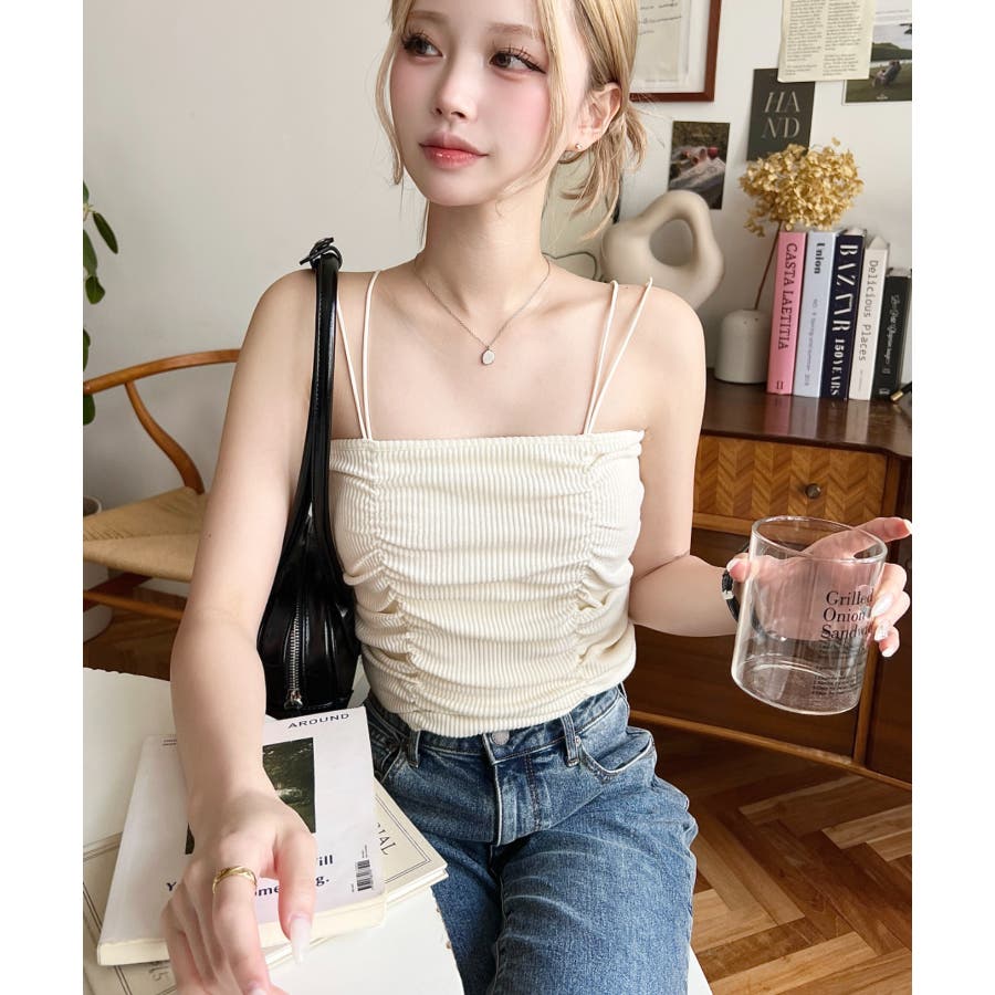 【シャーリングデザインが目を惹くダブルストラップキャミが登場!】