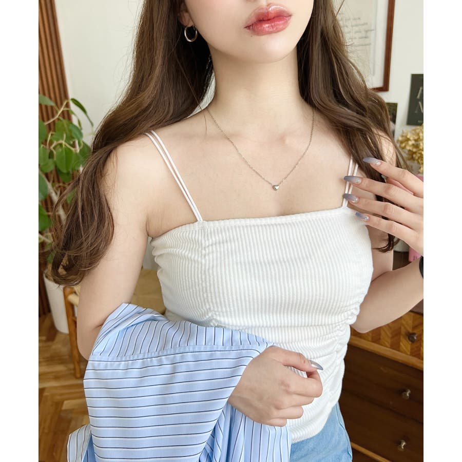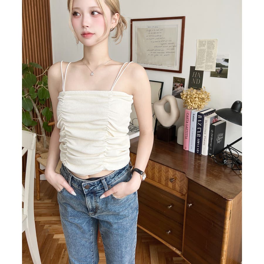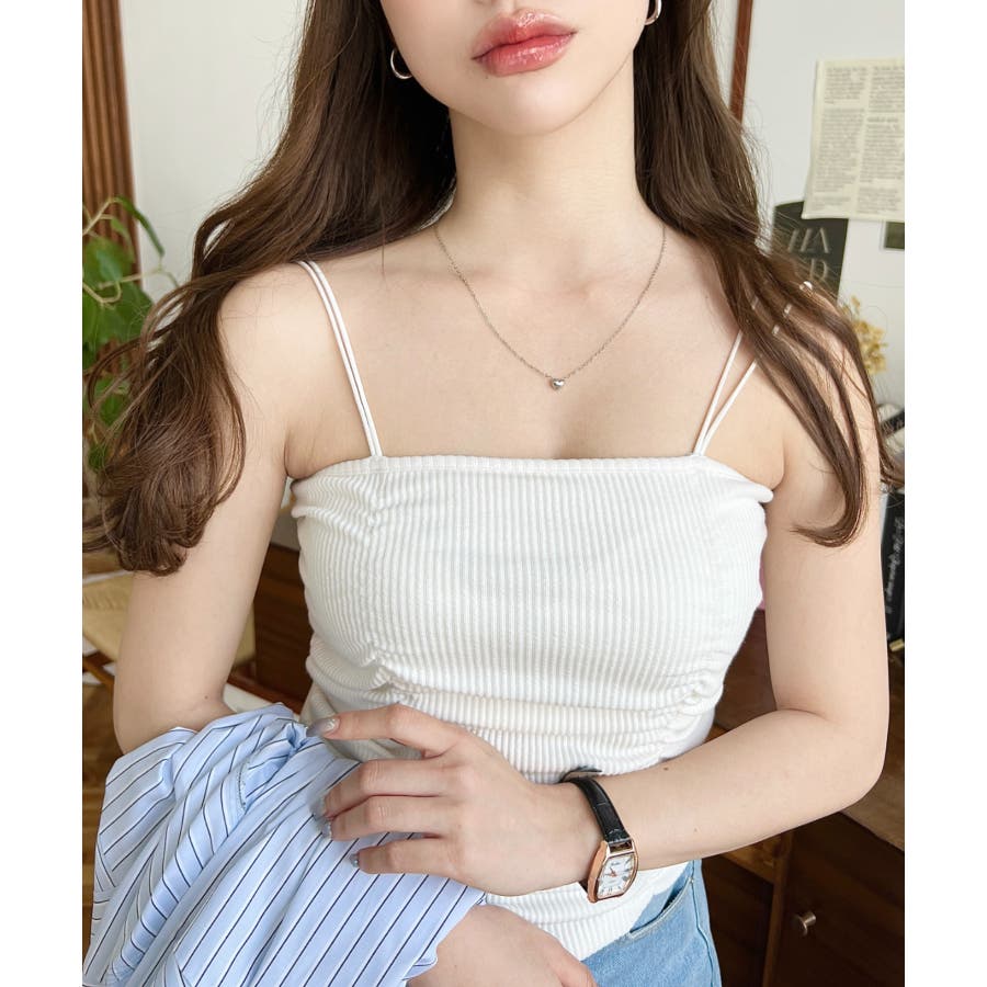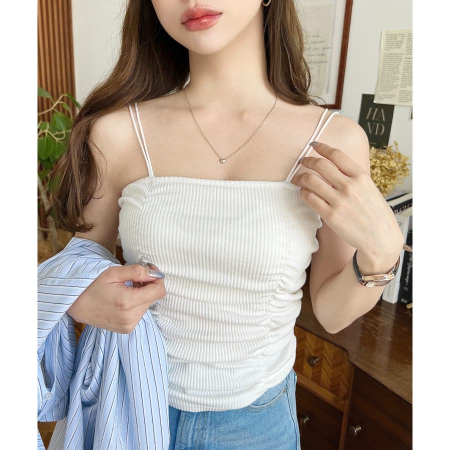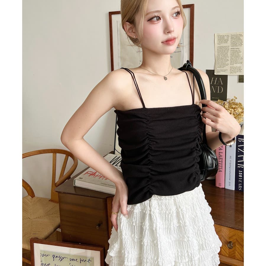 【シャーリングデザインが目を惹くダブルストラップキャミが登場!】