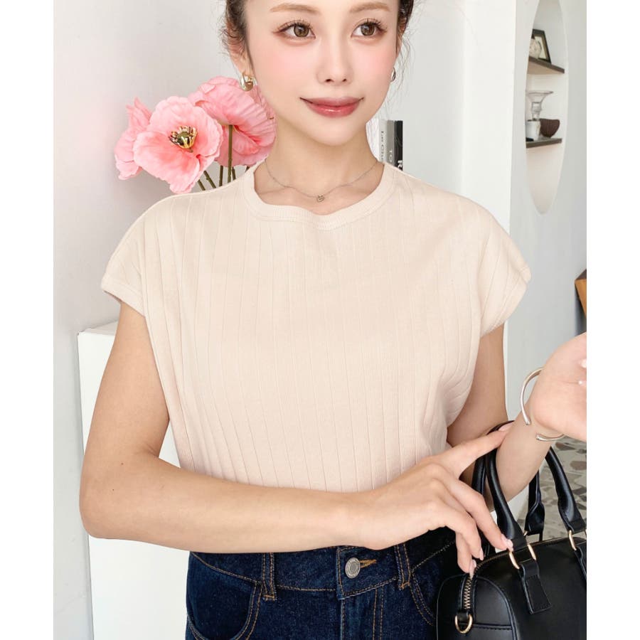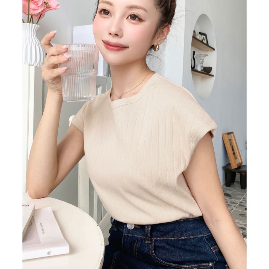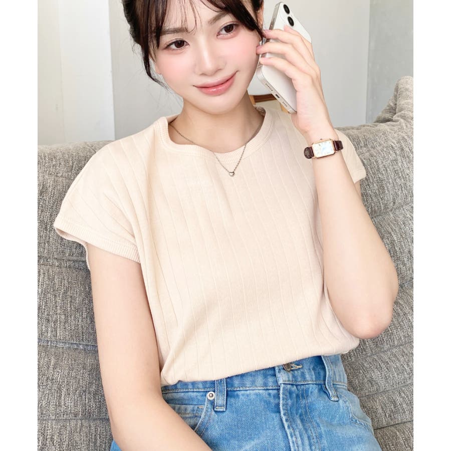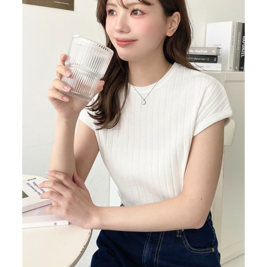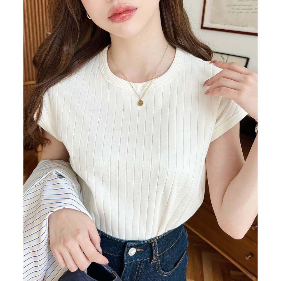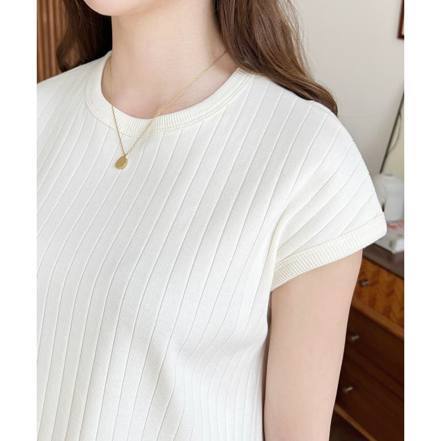 Tシャツ カットソー フレンチスリーブ 半袖 リブ 着回し 重ね着 レイヤード クルーネック 綿100% コットン 伸縮性 華奢見え シンプル 無地 カジュアル トップス 大人カジュアル プチプラ レディース レディースファッション 定番 シーズンレス オールシーズン SS AW 春 夏 秋 冬 mt08389