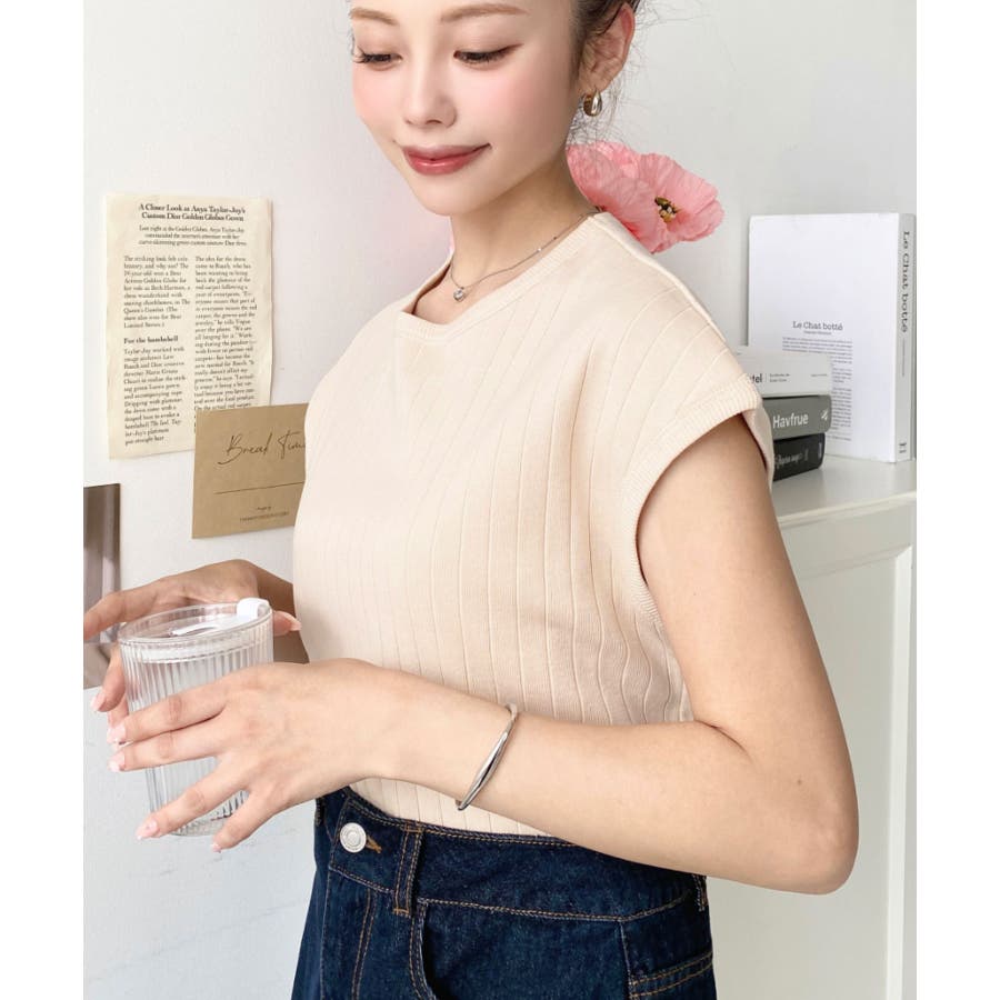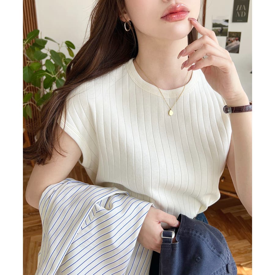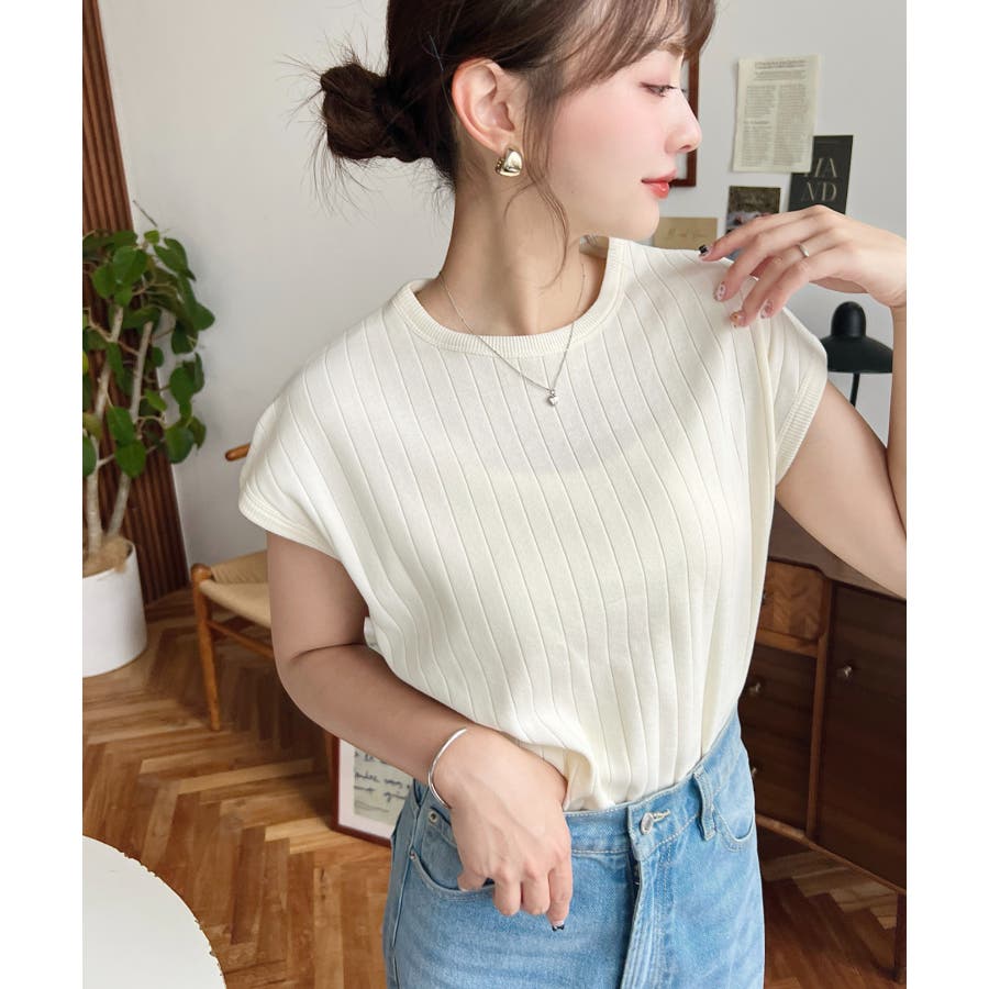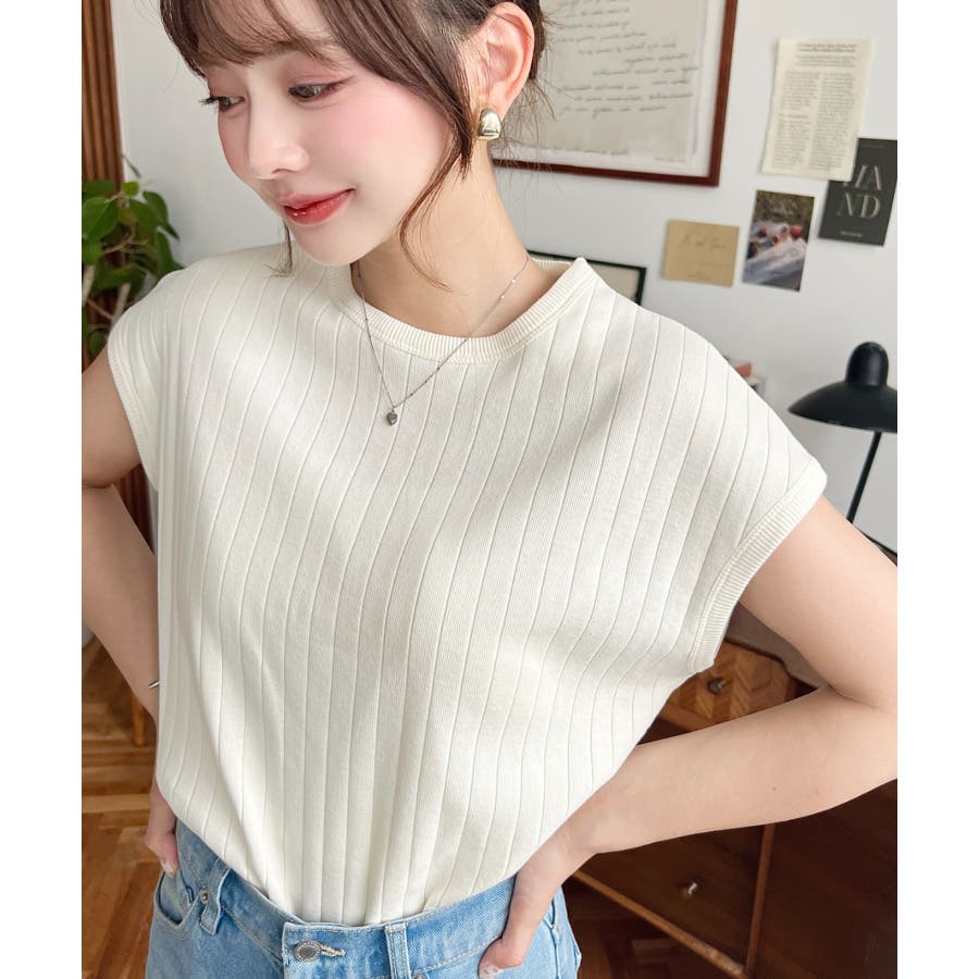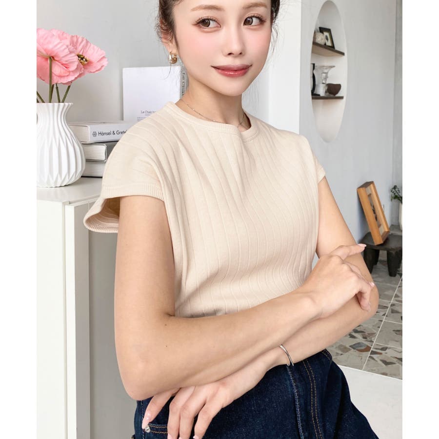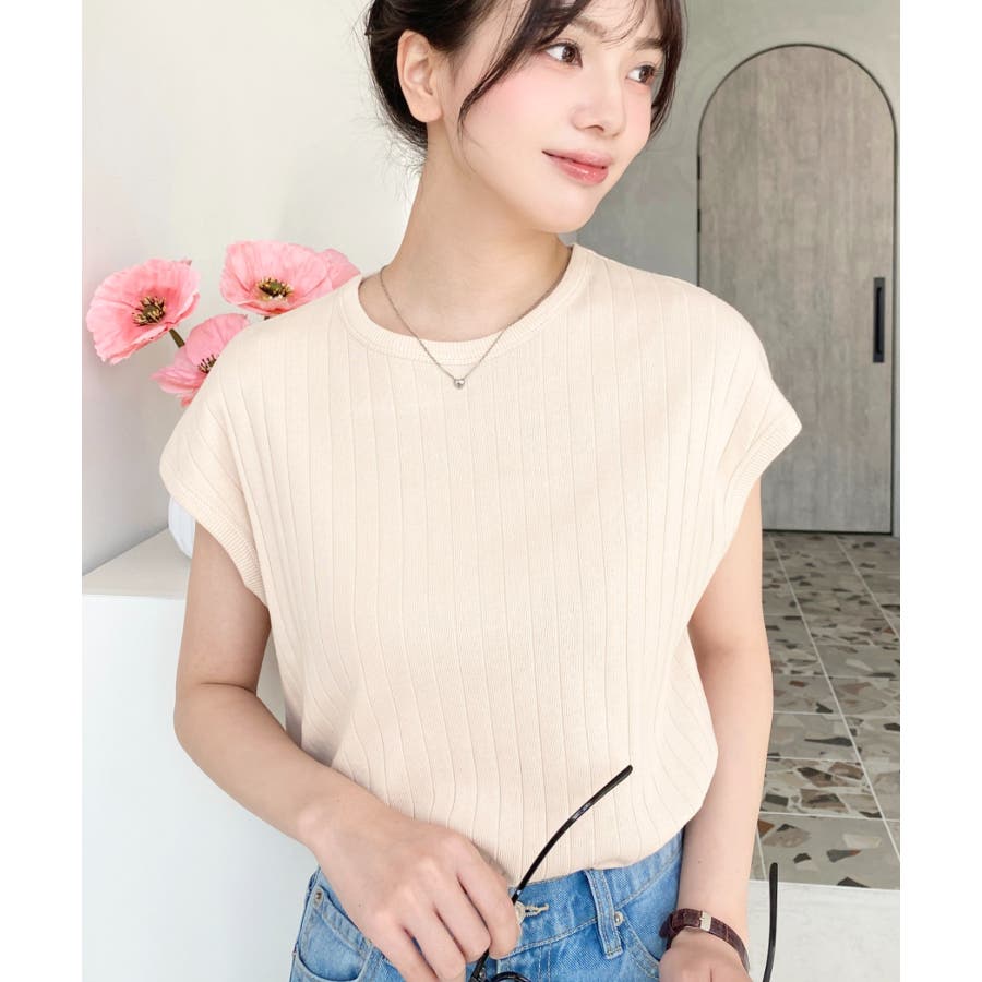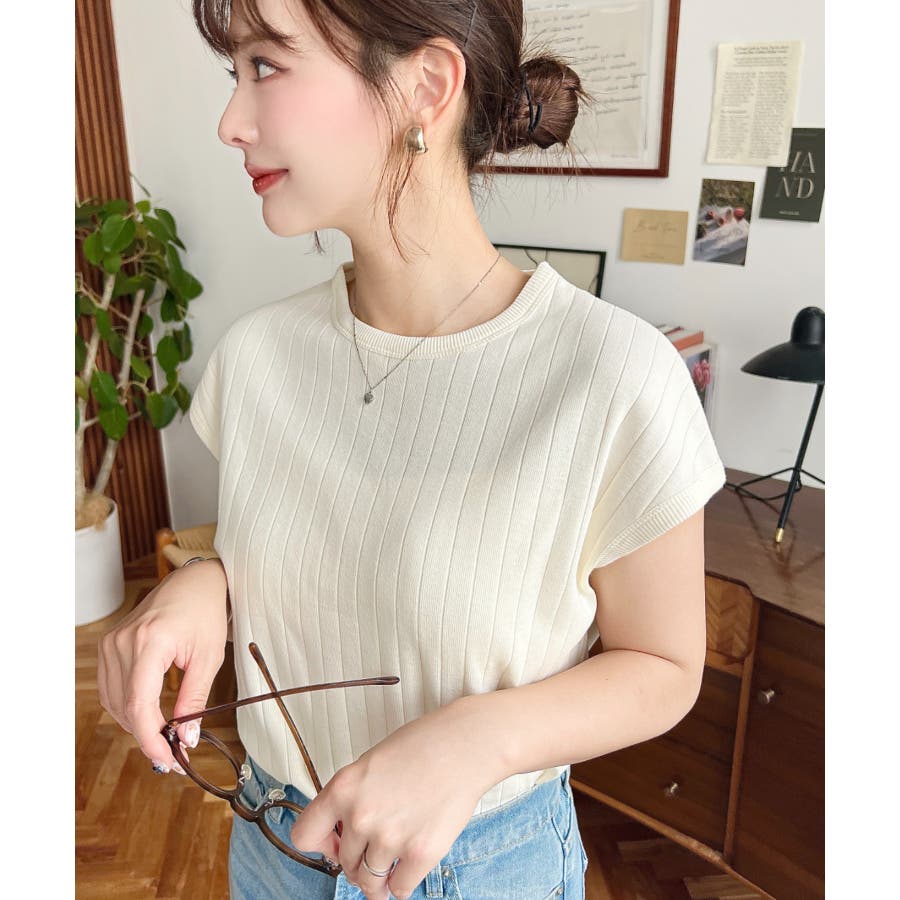 ・カジュアルな素材感×上品な肌みせが叶うフレンチスリーブで、女性らしい大人のこなれ感を演出します。