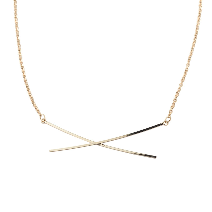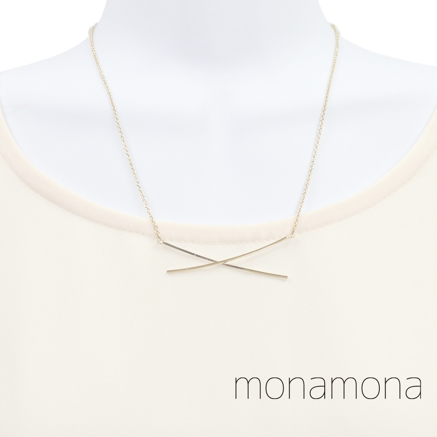 クロスしたバーがアクセントになったネックレス