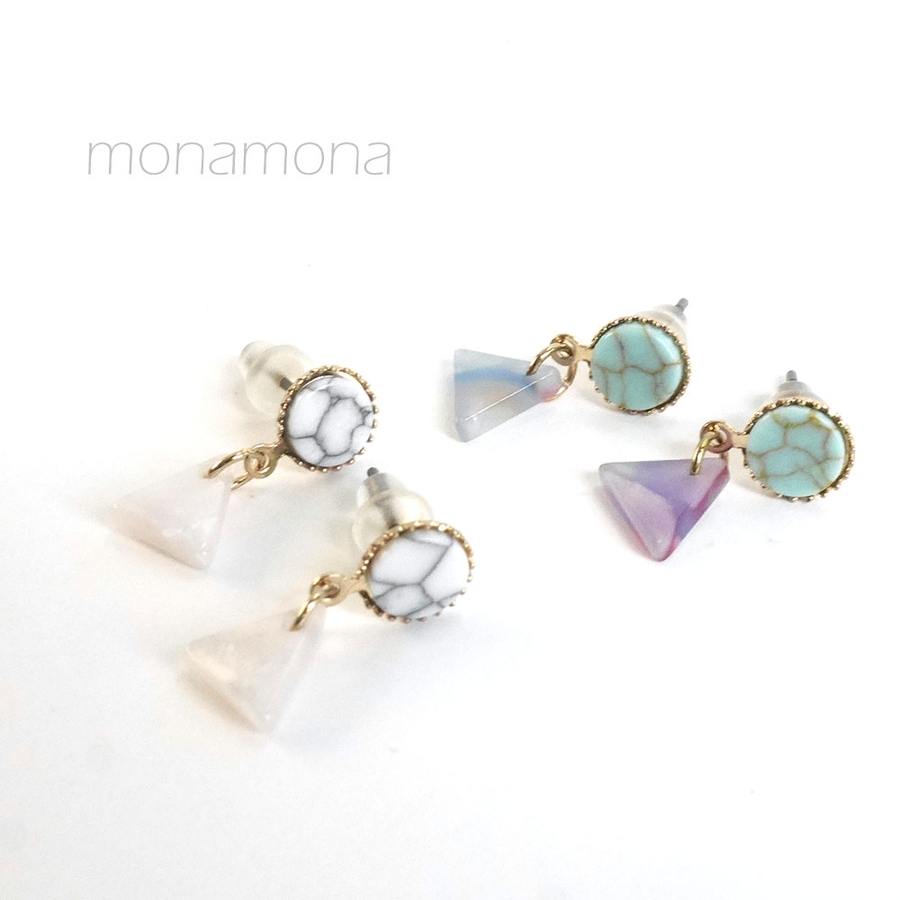 丸・三角の幾何学モチーフの小いさなピアス。