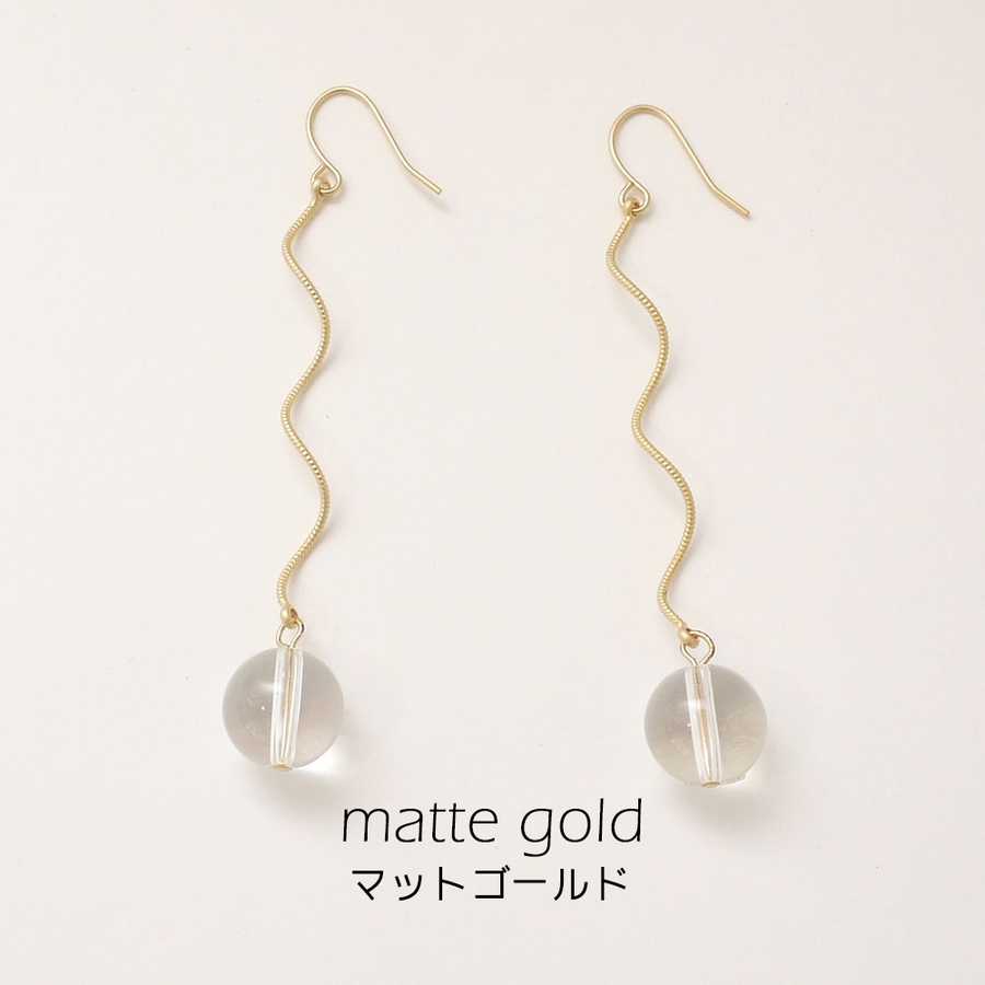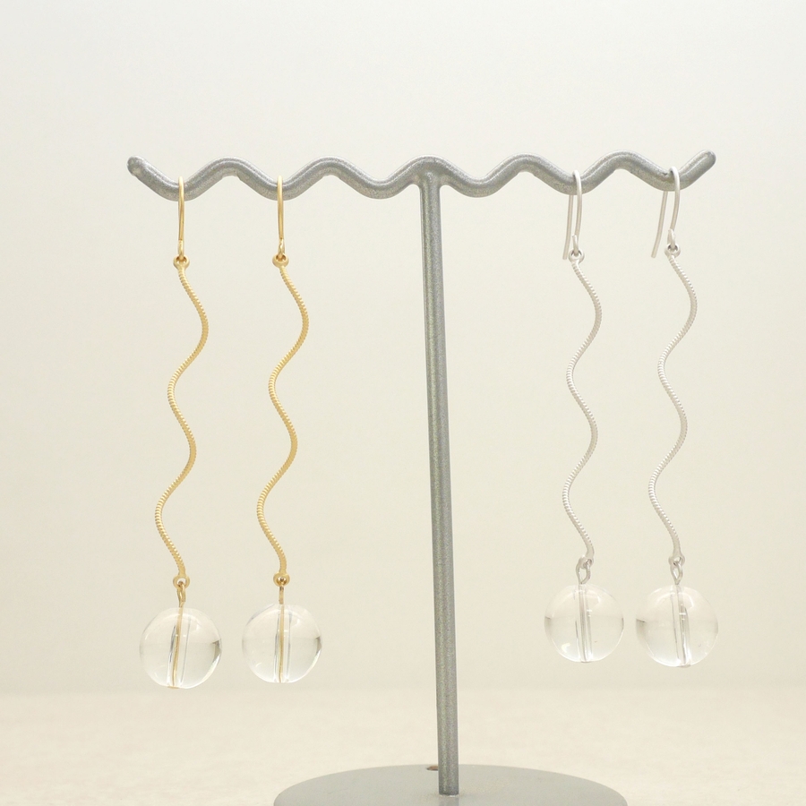 らせんのワイヤーのがシンプルなデザインの中に遊びを入れて変化を付けています。カラーもマットカラーでキラキラをおさえた落ち着いたゴールドとシルバーの2色展開です。