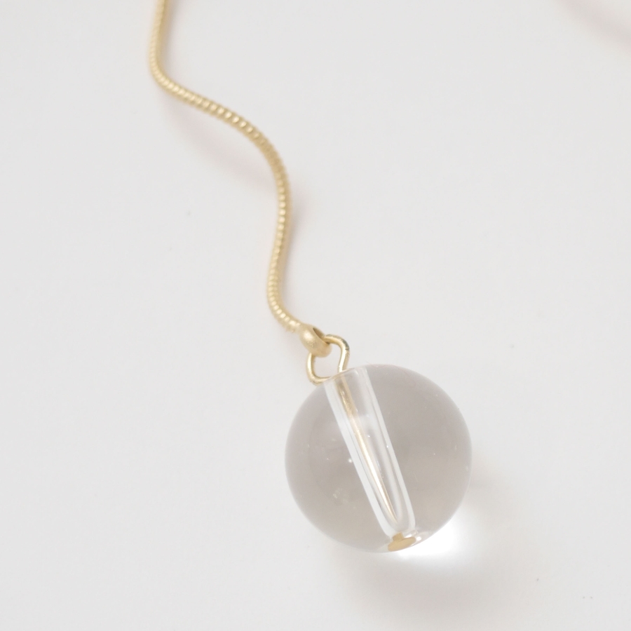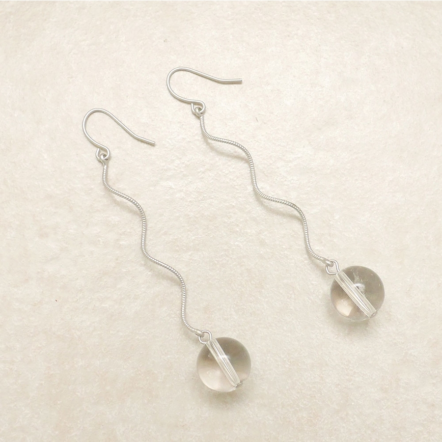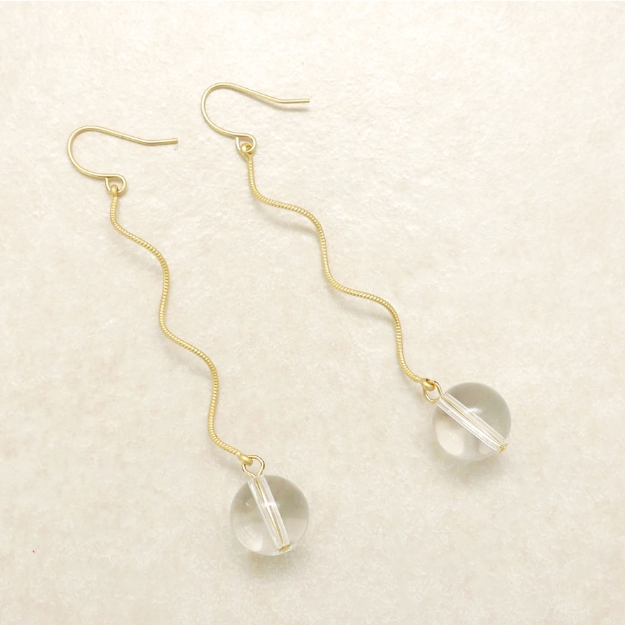 スパイラルワイヤーの先にクリアボールが付いているピアス