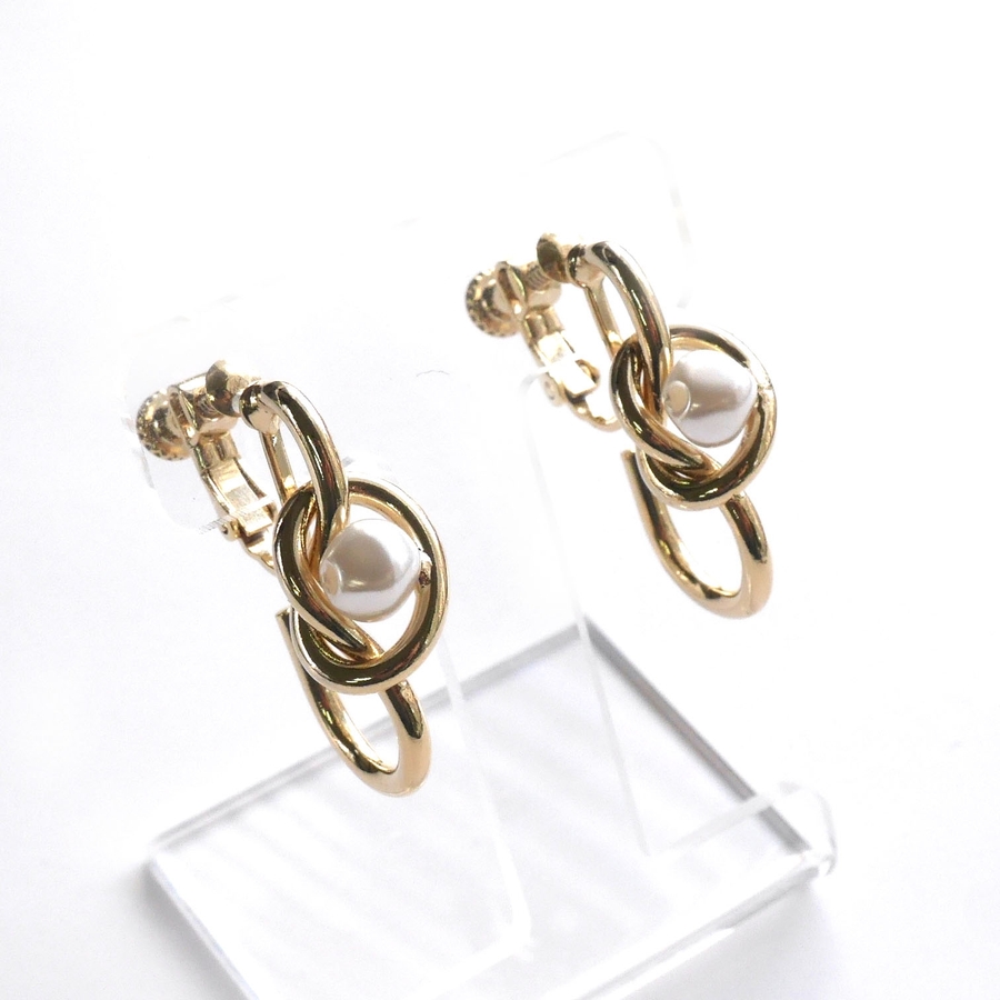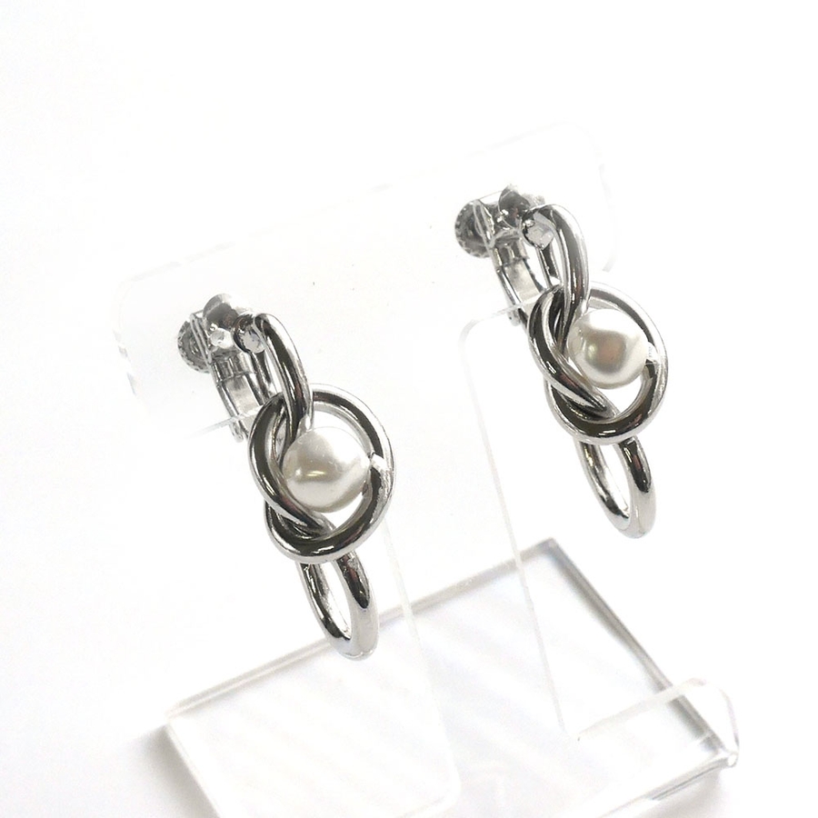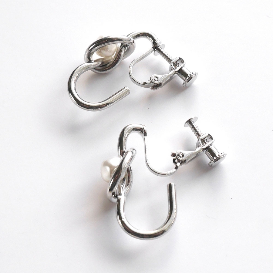 結び目モチーフとフェイクパールのイヤリング