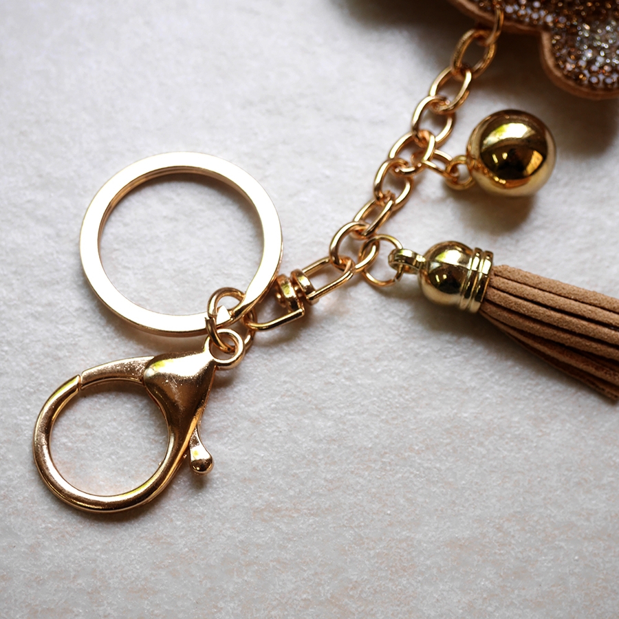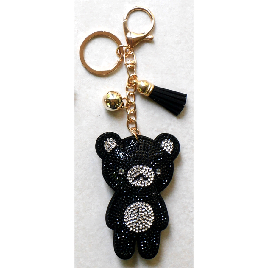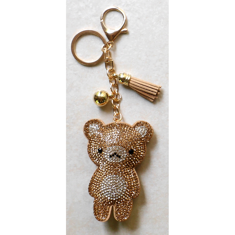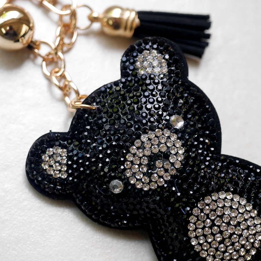 全身、キラキララインストーンの バックチャームにも使える、くまちゃんキーホルダーです。