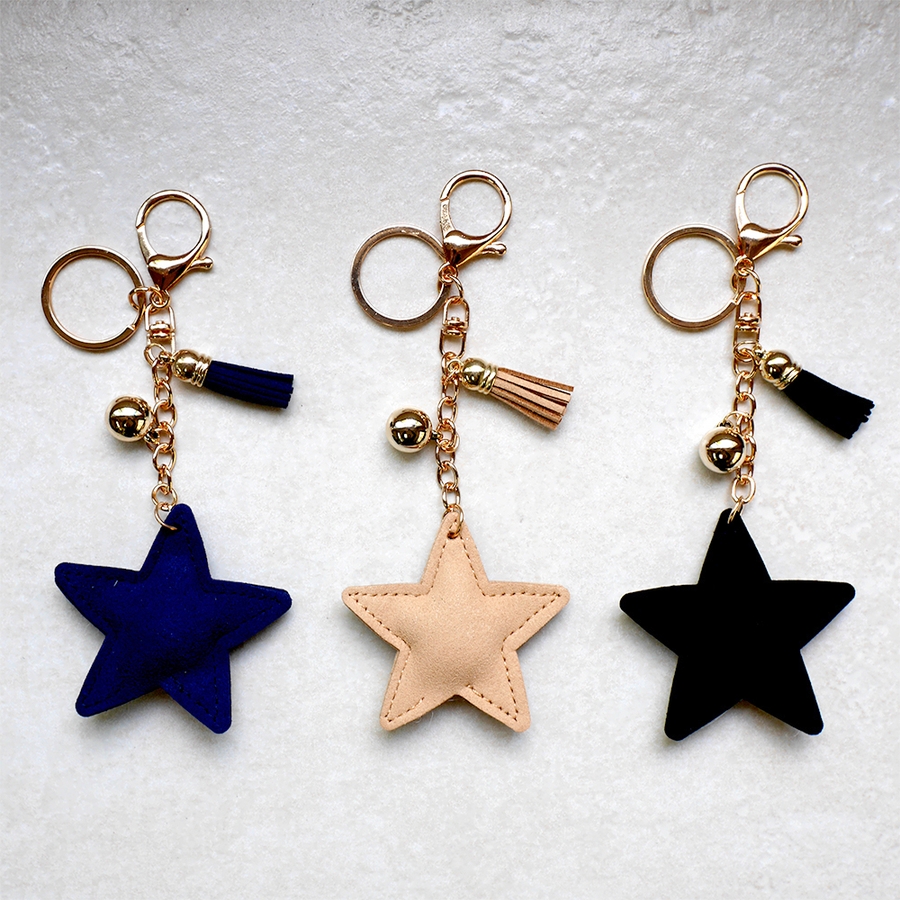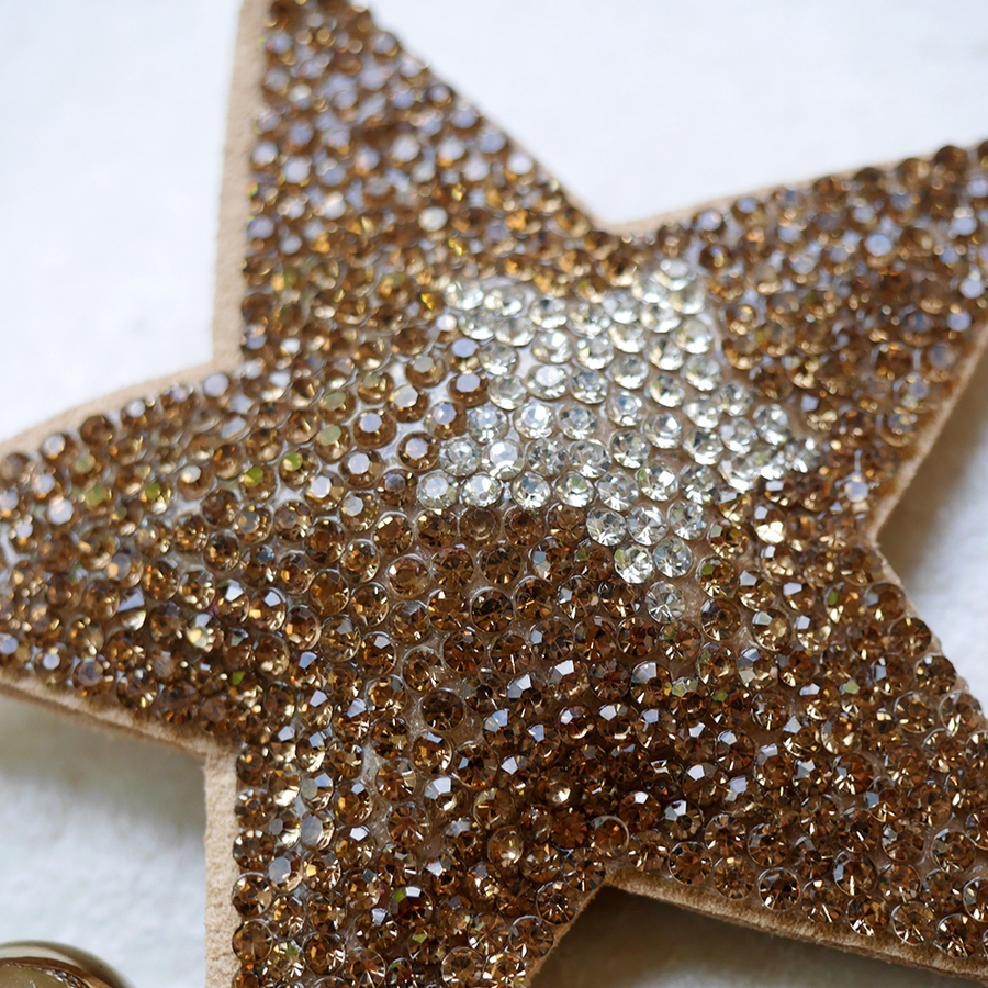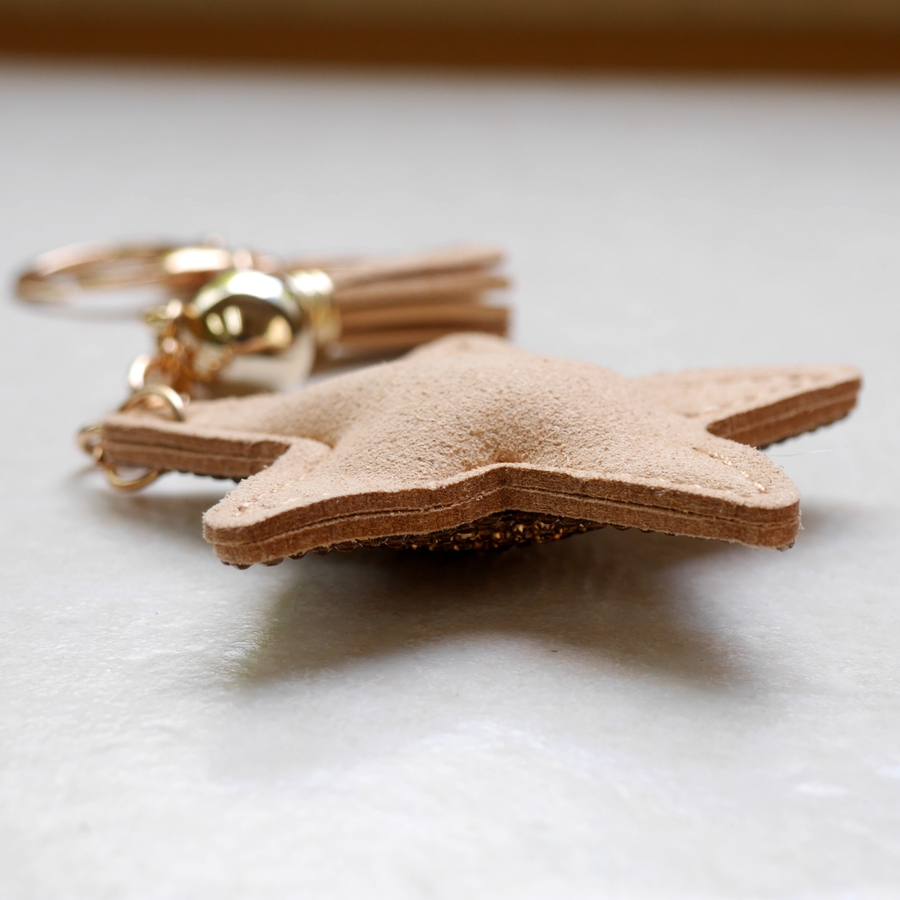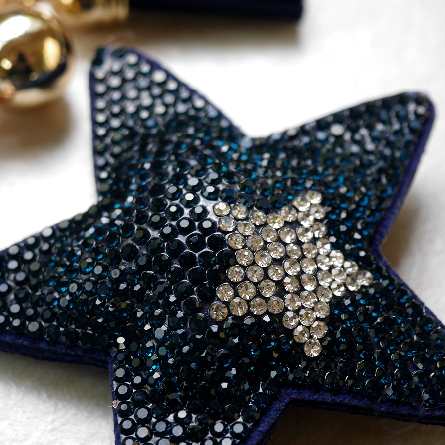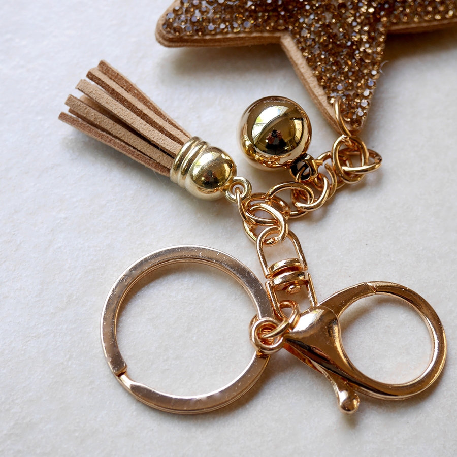 キラキララインストーンの2色使いで、バックチャームにも使える星型キーホルダーです。