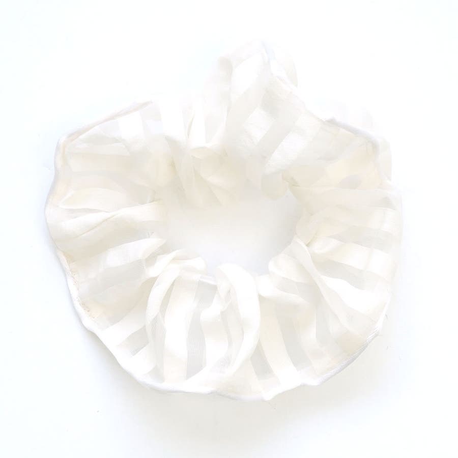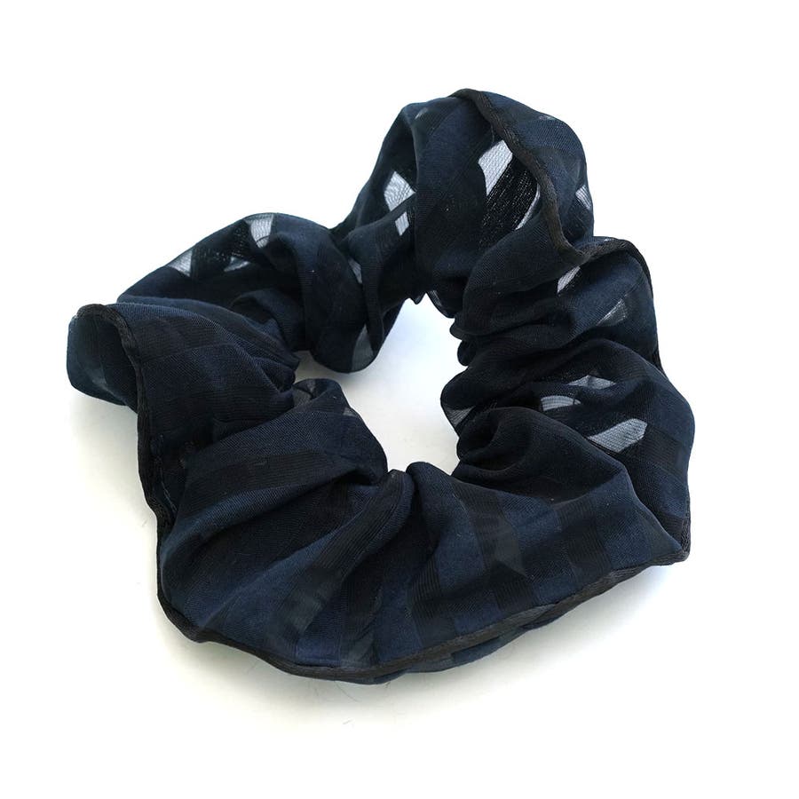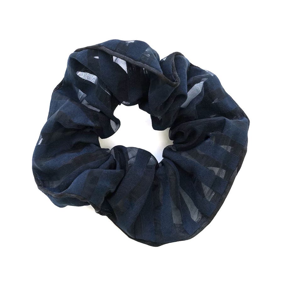 透け感のある薄手の生地のボーダー柄シュシュ