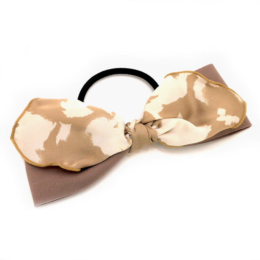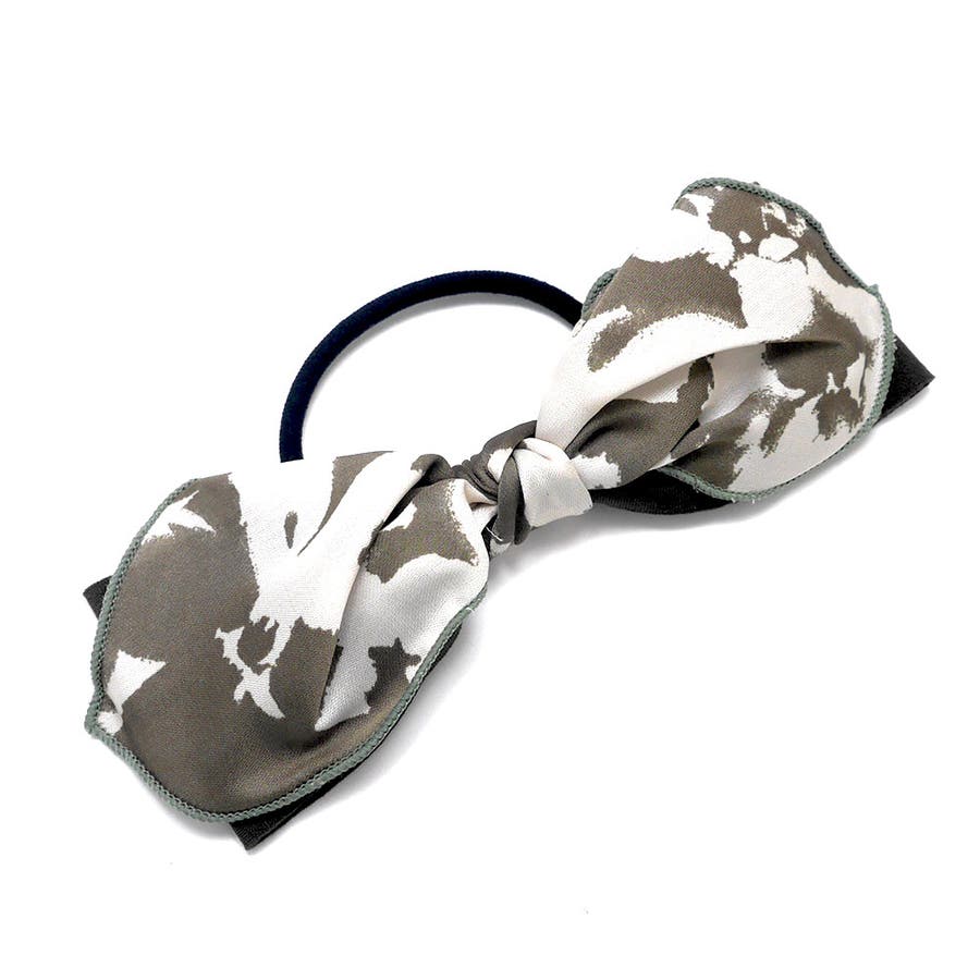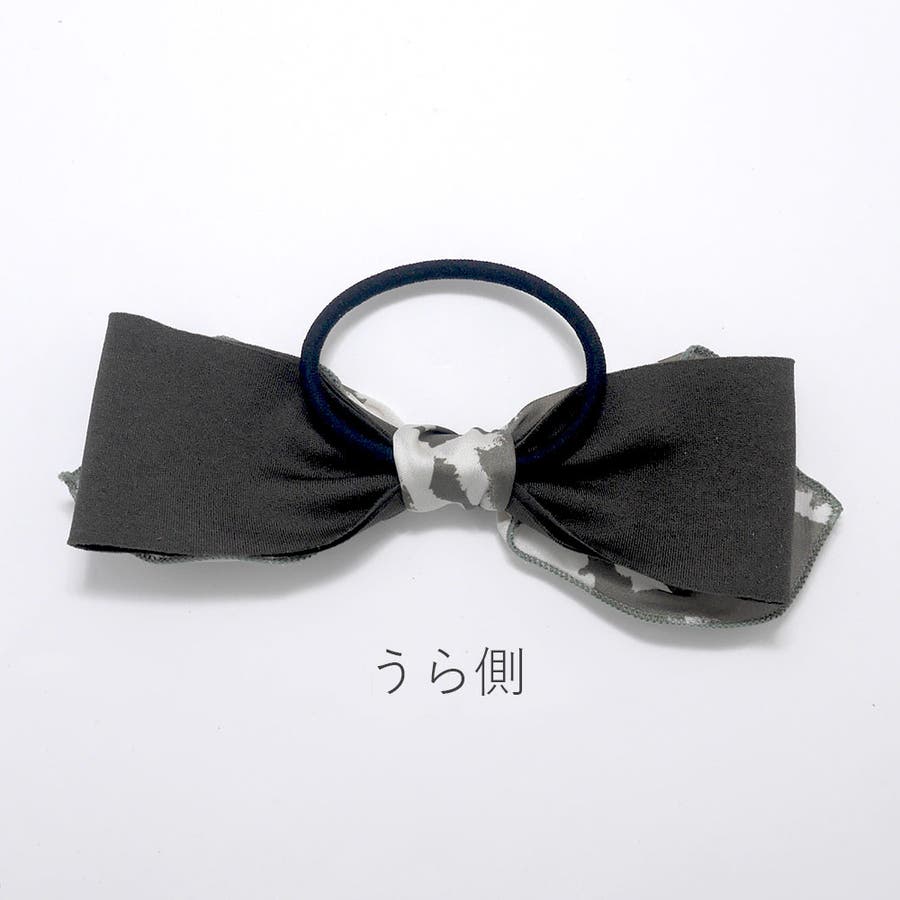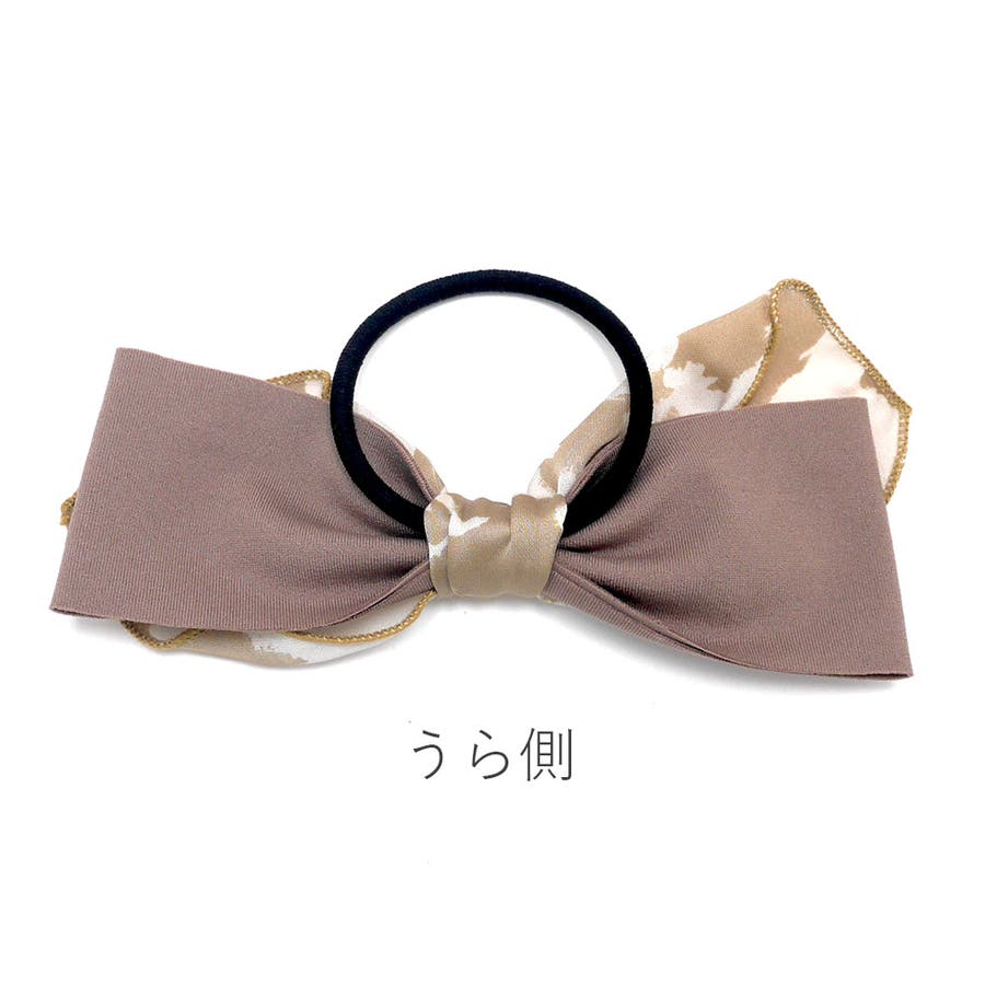 同系色のデザインの違うリボンをあわせてまとめ髪にアクセントをつけてくれます。すこし大きめですが、落ち着いたカラーで大人の方でも使いやすいデザインです。