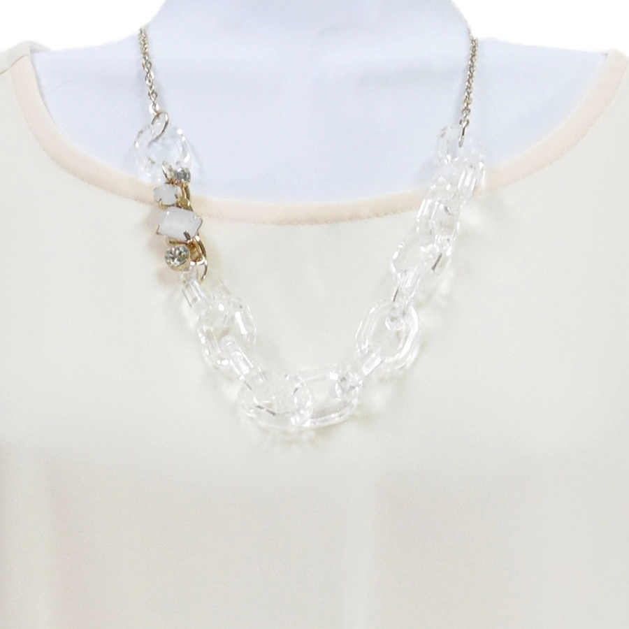 プラチェーンビジュウ付ショートネックレス クリア系 大人アクセ インパクト