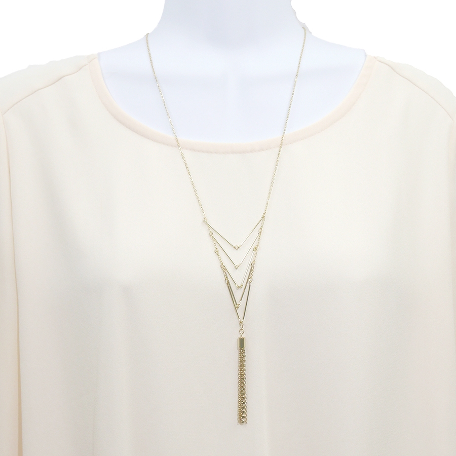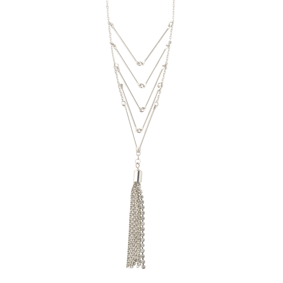 ラインストーン入りチェーンタッセルはしごネックレス