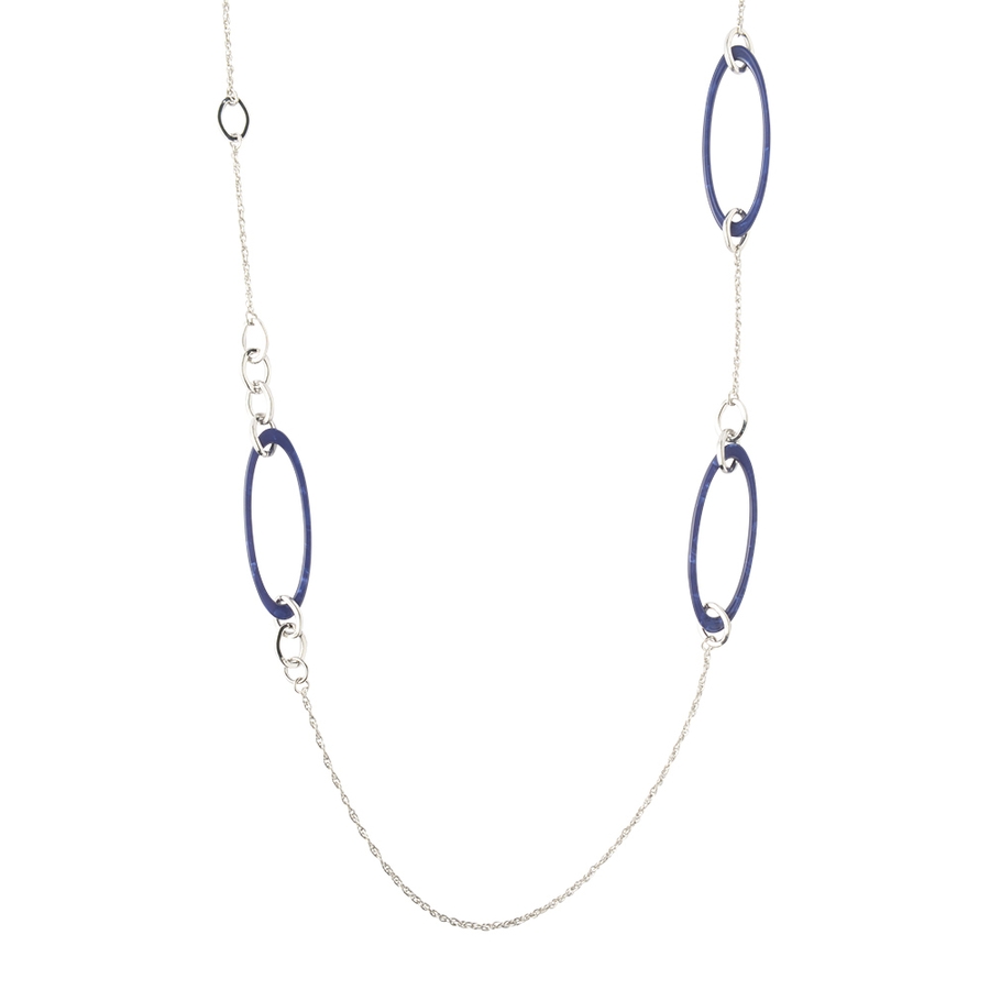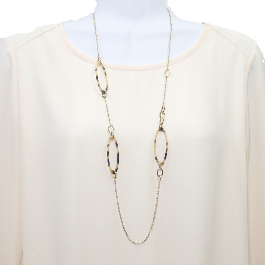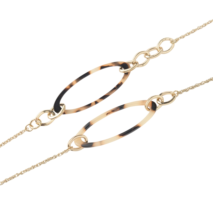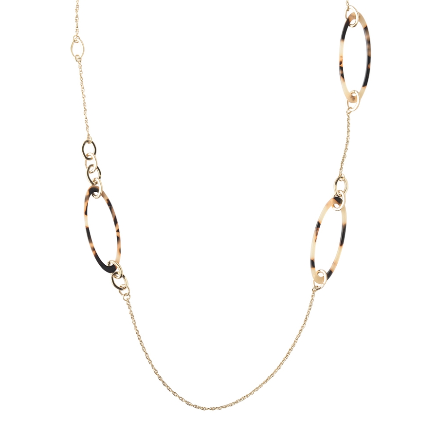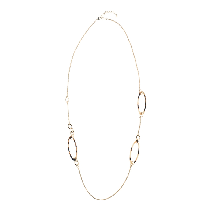 繊細なチェーンにリングと楕円形のアセチパーツを使用したステーションネックレス。マーブルがかったアセチパーツが知的で大人っぽい印象をプラス。さり気なく首元にあしらうだけでも洗練されたコーディネーとに仕上がる心強いアイテム。カジュアルコーデにも◎。
