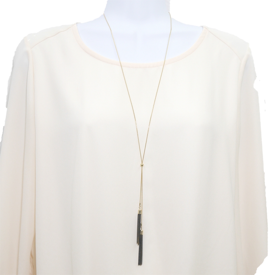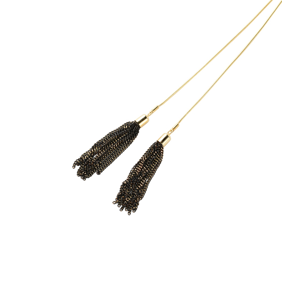 幾重にも重ねたボリューム感たっぷりのチェーンフリンジが目を惹くスライドネックレス。ボールパーツを動かすだけで、シーンに合わせて自分の好きな形・長さにアレンジが楽しめる便利なデザイン。シンプルなコーディネートのポイント使いとしてもオススメ。