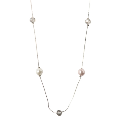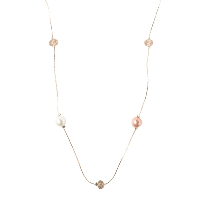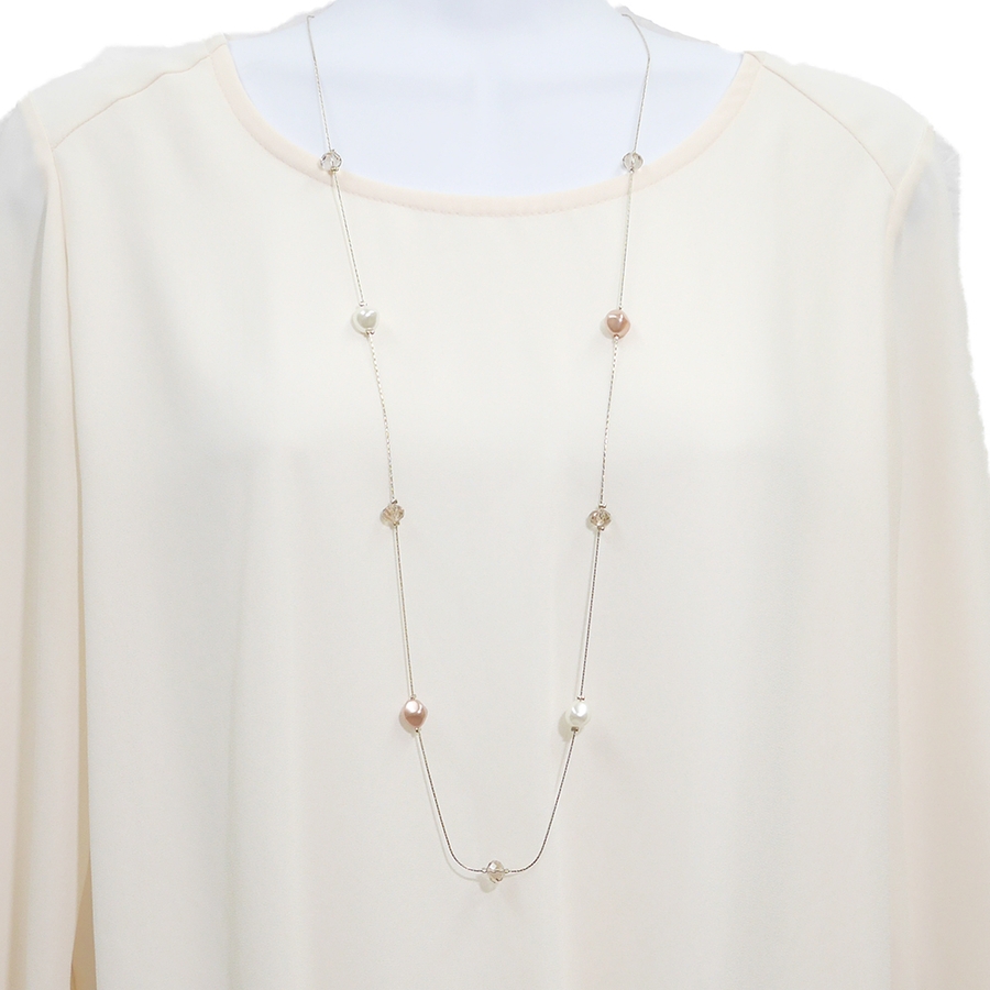 変形パール&カットビーズステーションネックレス
