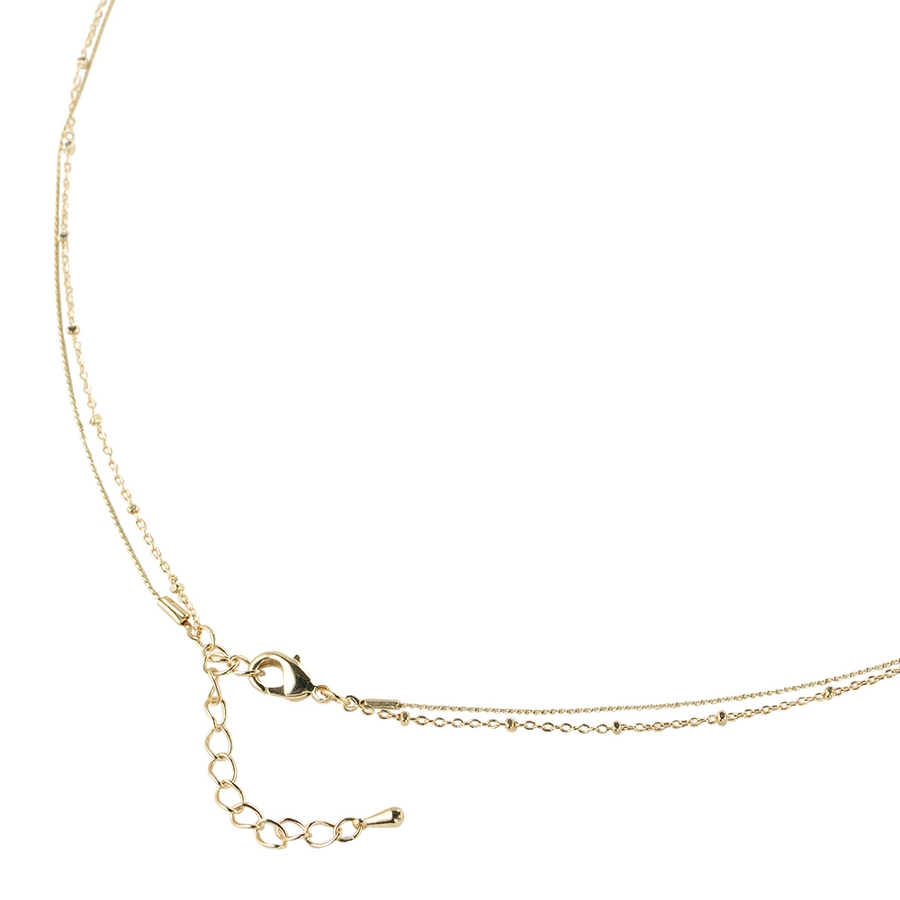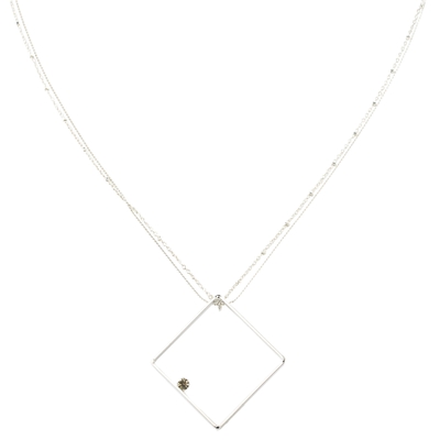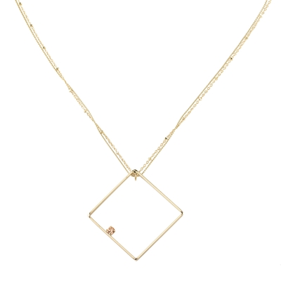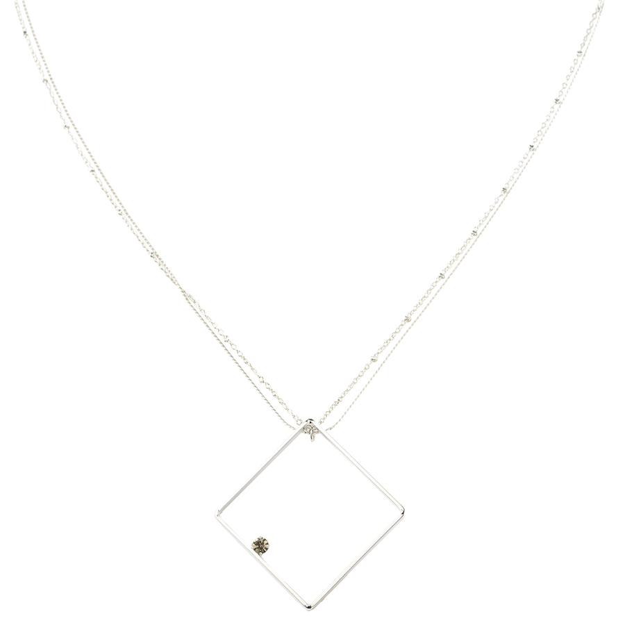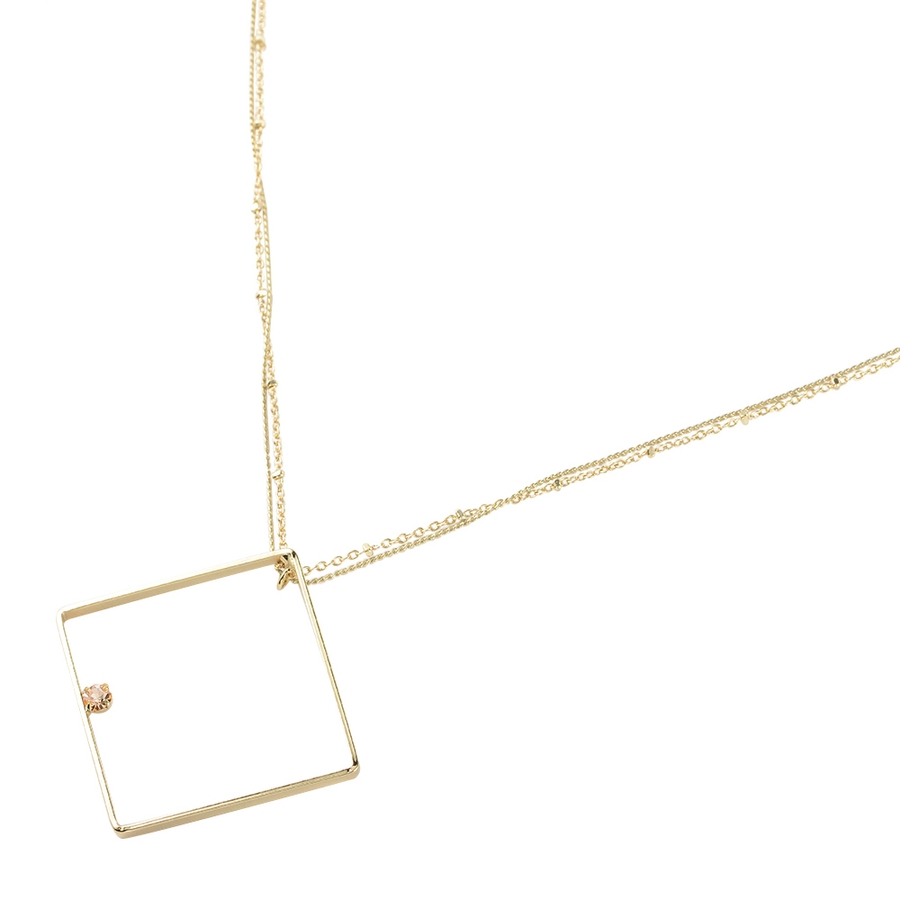 繊細な2本取りのチェーンを使用したネックレス。センターにはスクエアパーツ×煌めくストーンを控えめにあしらったスタイリッシュなデザイン。さり気なく胸元にあしらうだけでもこだわりの感じさせるアクセントに。どんな着こなしにも合わせやすく、さり気ないポイント使いに最適。