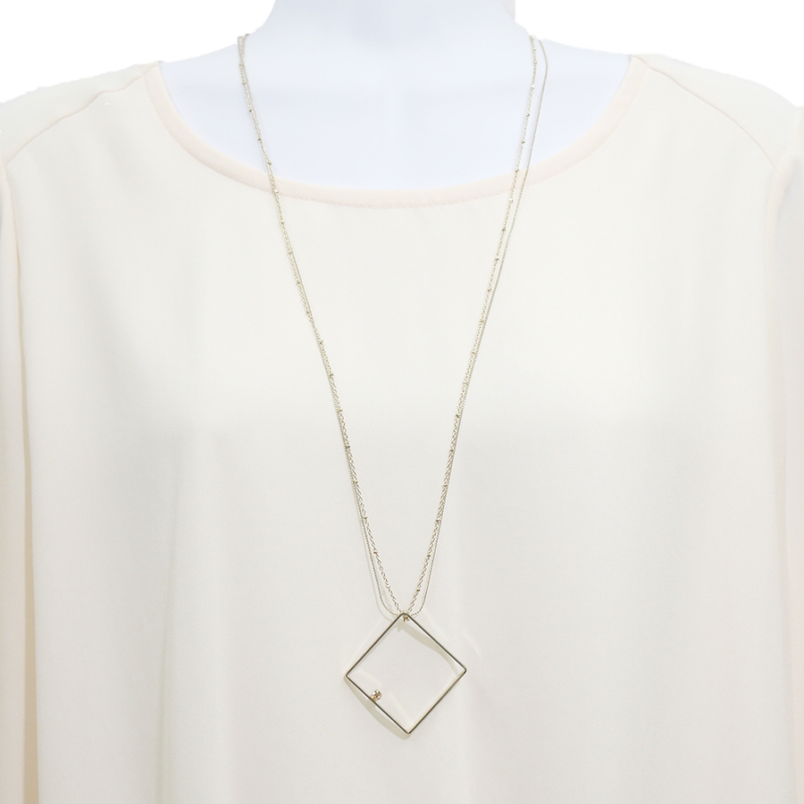 ひし形モチーフ2連ロングネックレス