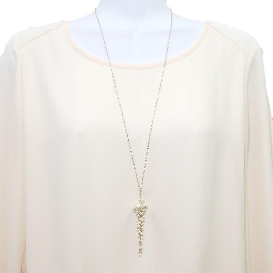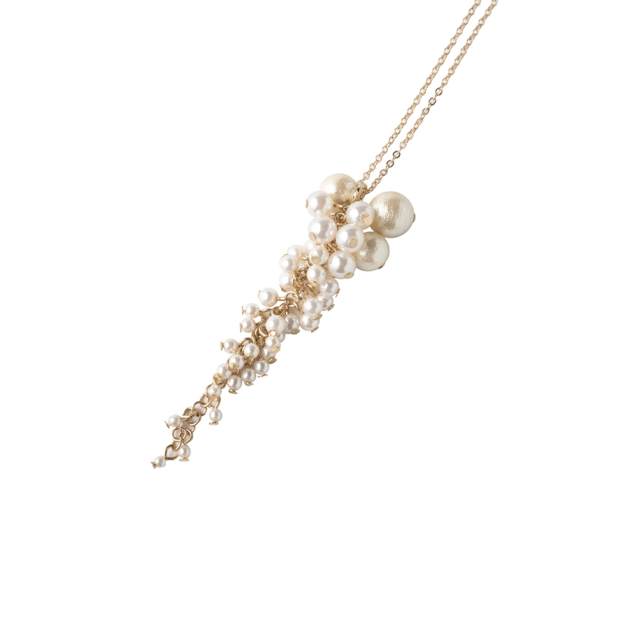 まるで果実がたわわに実ったようなデザインがラグジュアリーな雰囲気を醸し出すパールネックレス。一部上質なコットンパールを取り入れた高級感溢れるディテールがポイント。さり気なく縦のラインを強調することでスッキリとしたスタイリングに見せてくれる心強いアイテム。
