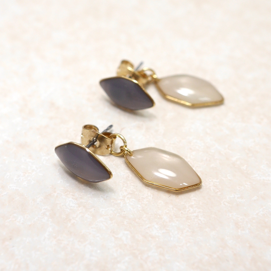 ポスト部分の濃い色部分だけでも、お持ちのキャッチと使用出来ますし、キャッチから下がった薄い色のパーツ部品と一緒に2WAYピアスとしてもお使い出来ます。
