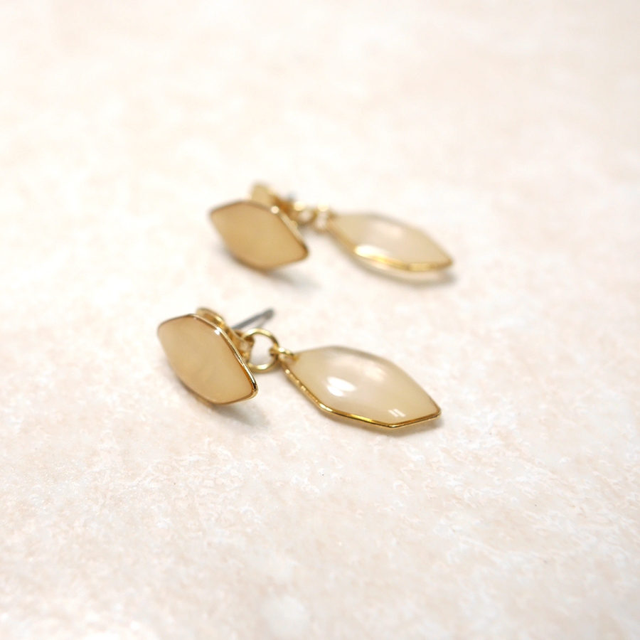 ぷっくりしたメラミン樹脂のパーツが木の葉のように揺れて、大人可愛いピアスです。