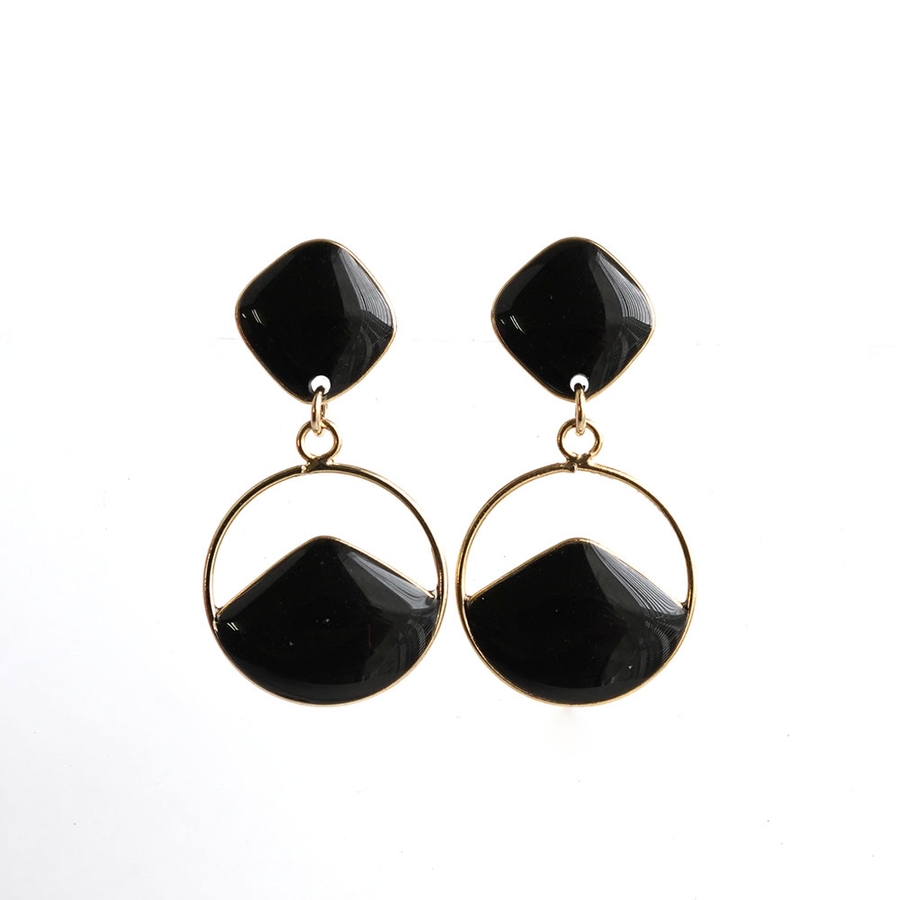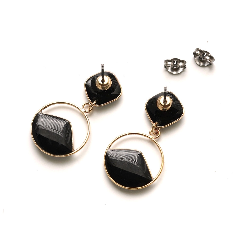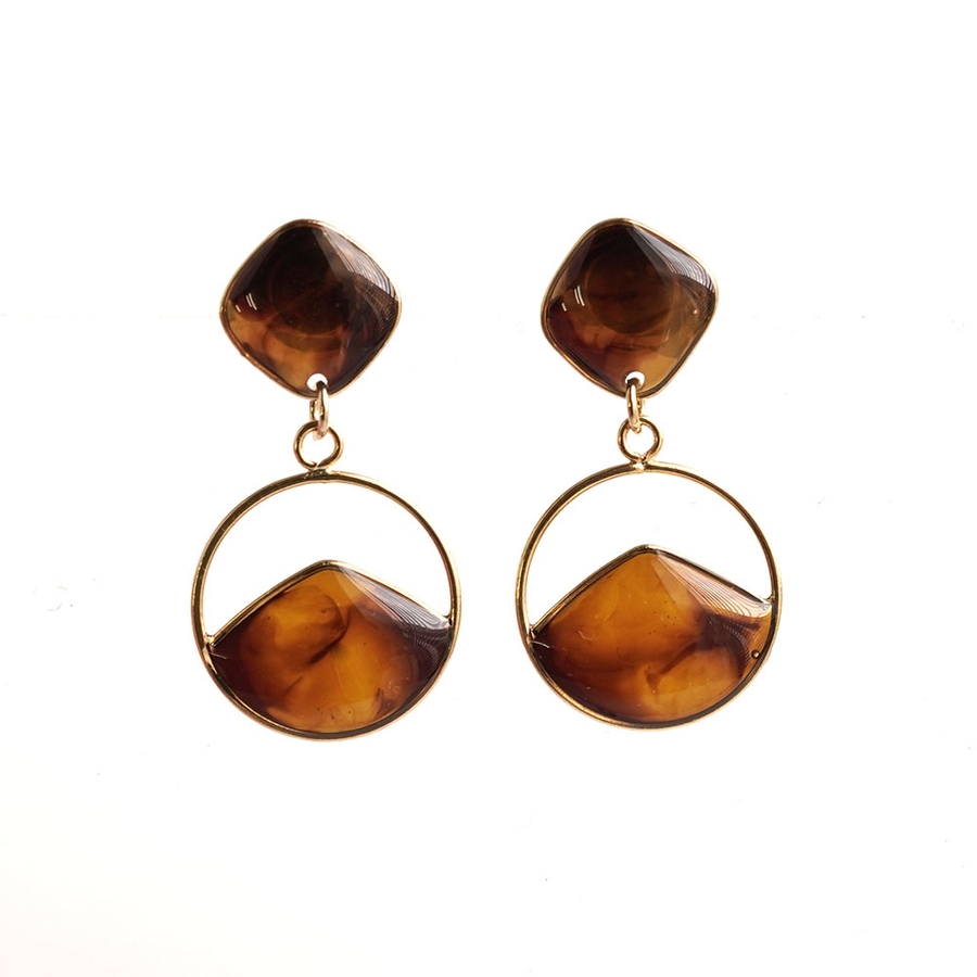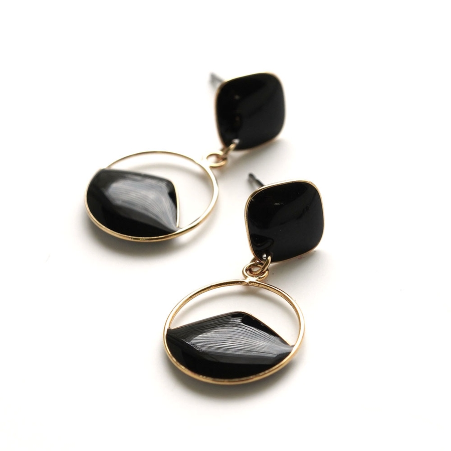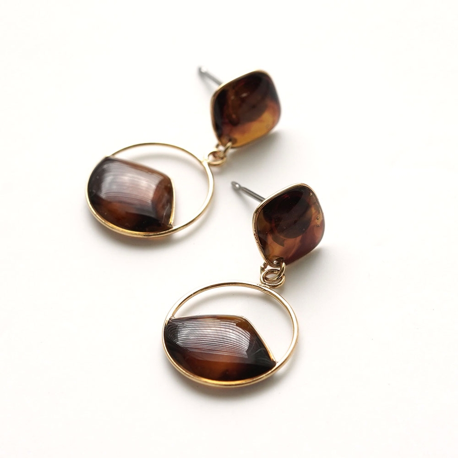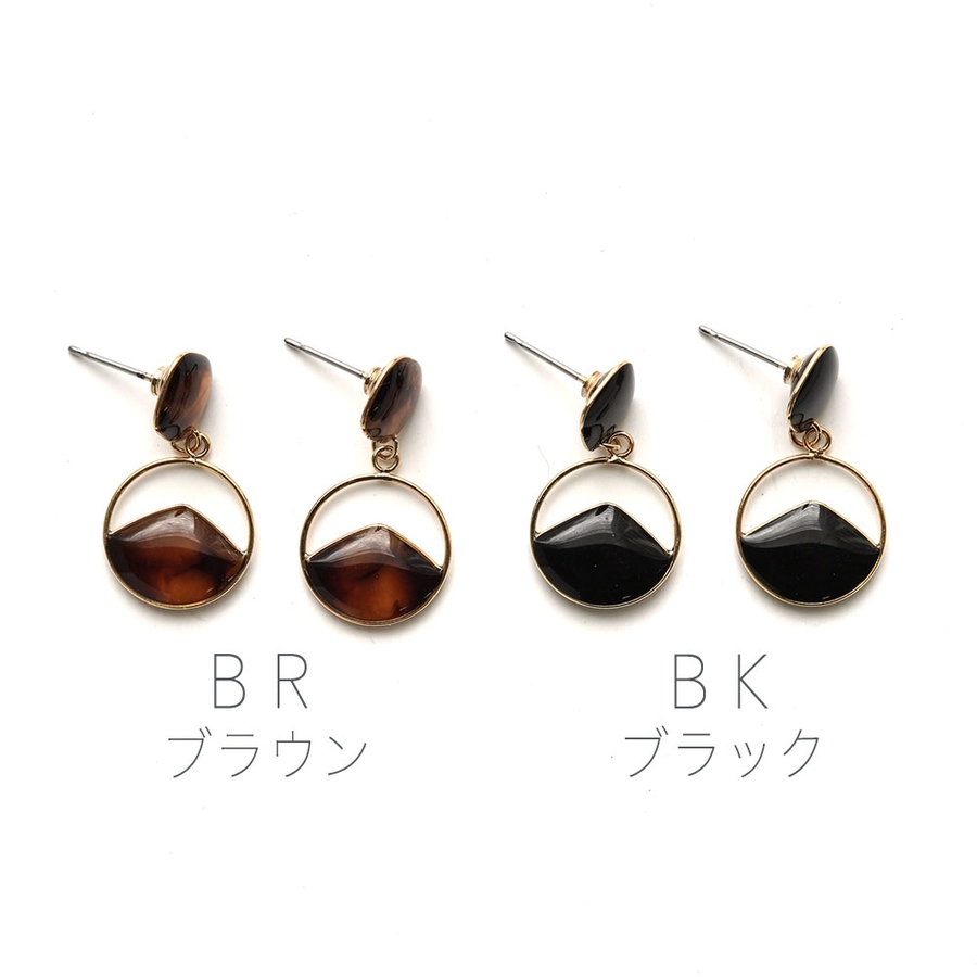 メタルフレームに樹脂をコーティングした丸型ピアス。