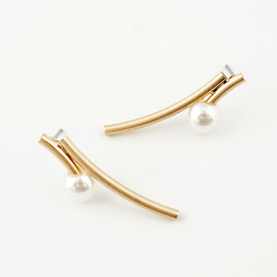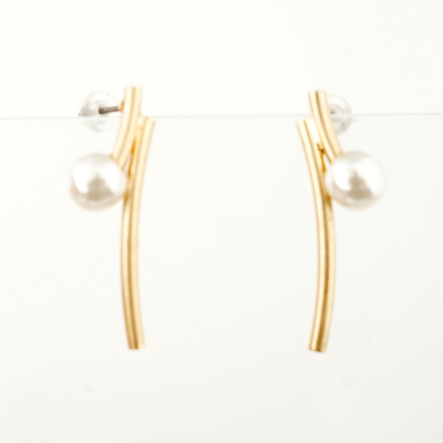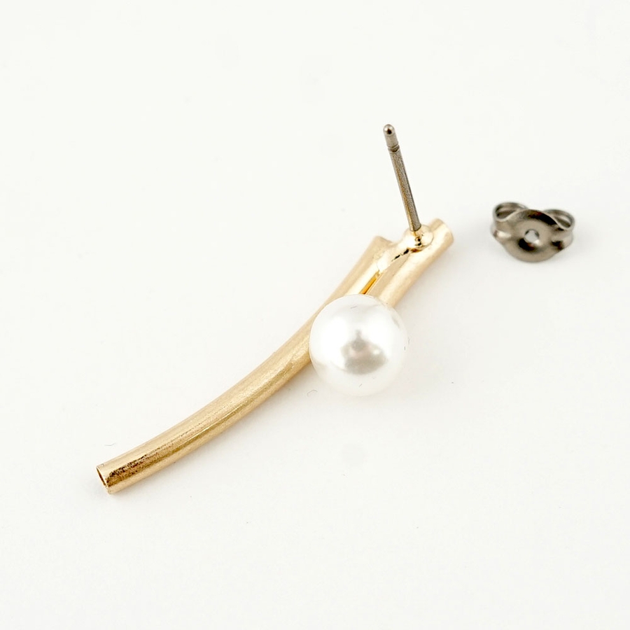 カーブラインのパイプにパールを組み合わせたピアス