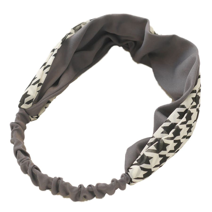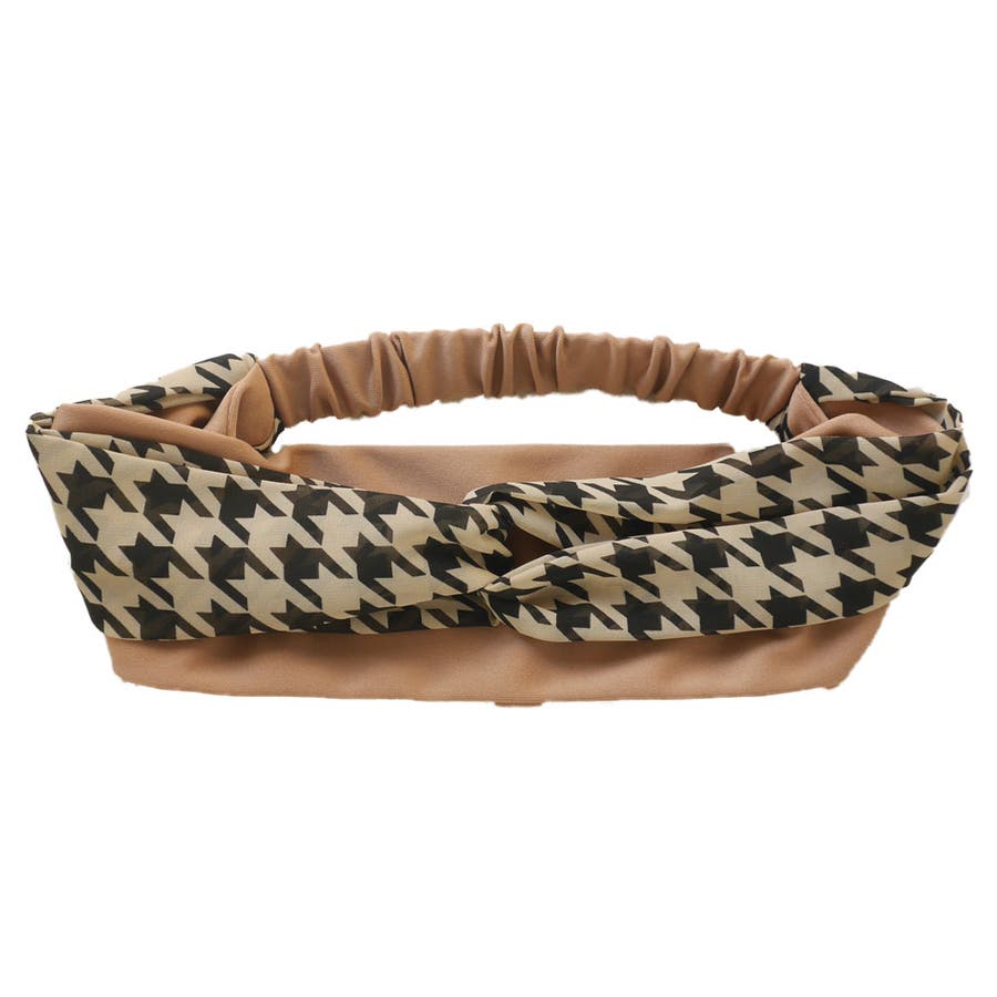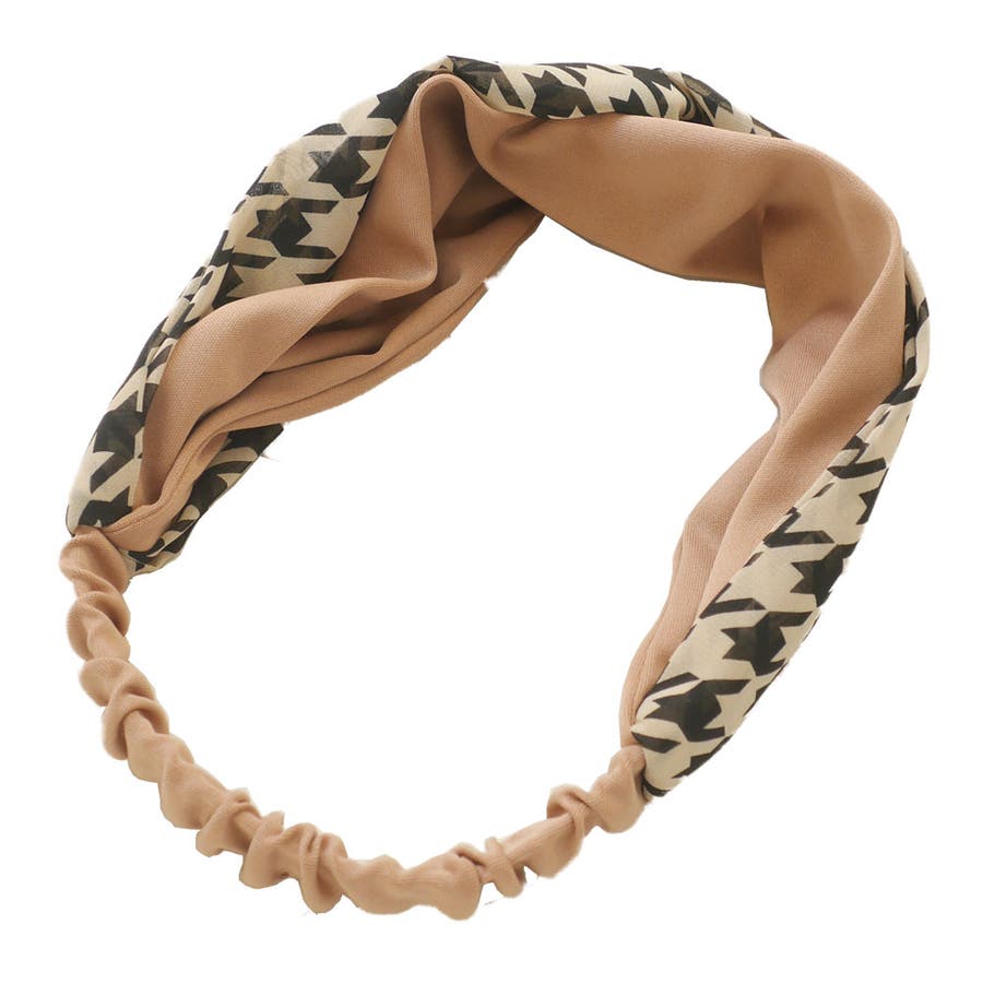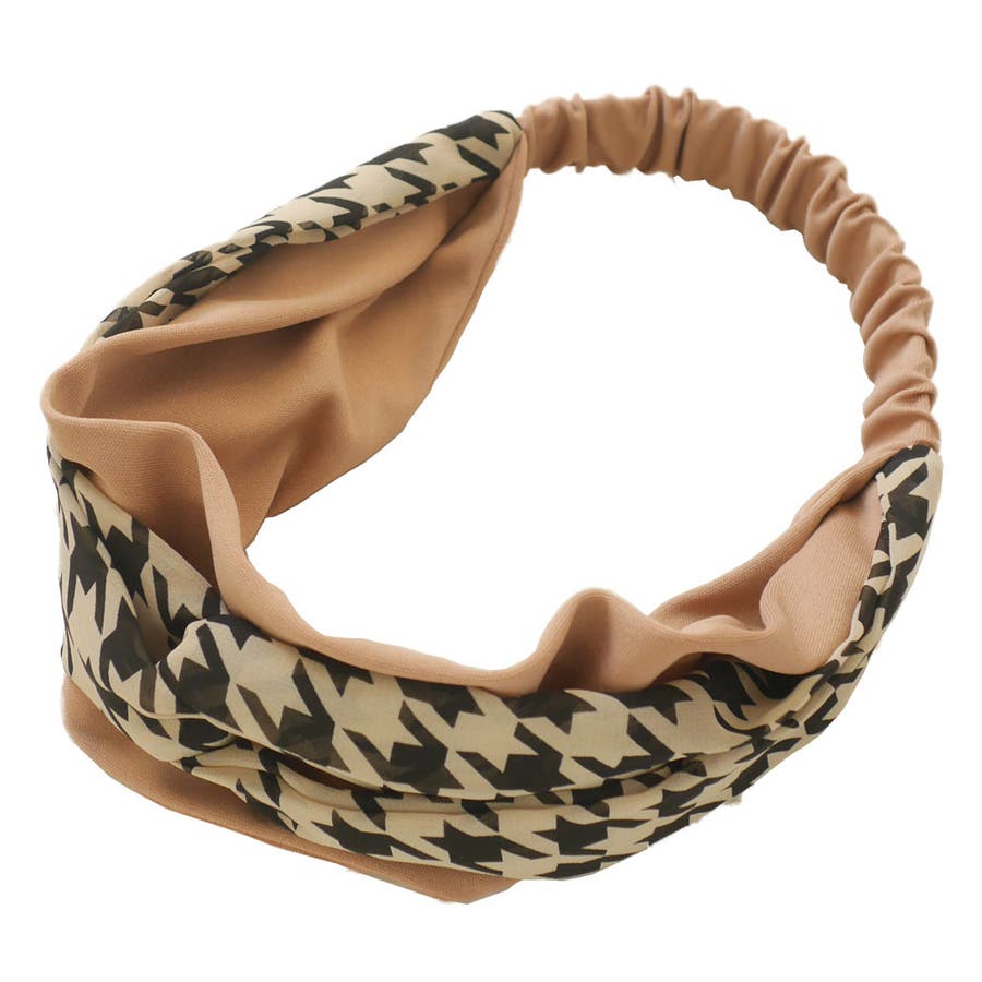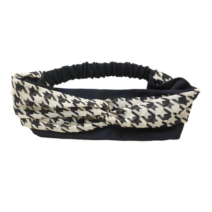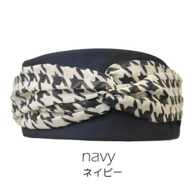 大きめの千鳥柄のヘアバンド、落ち着いたカラーの無地と合わせることで使いやすデイリーカジュアルにぴったり。