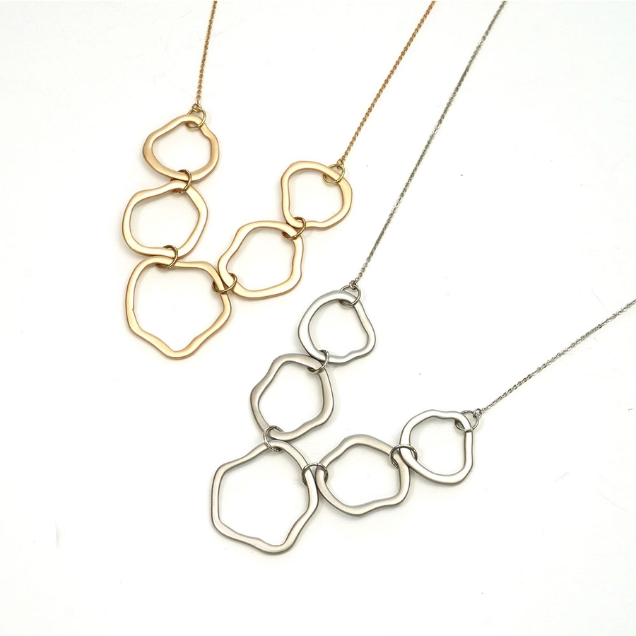 細身のチェーンに落ち着いたマットカラーのシンプルなデザインは