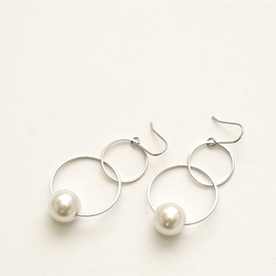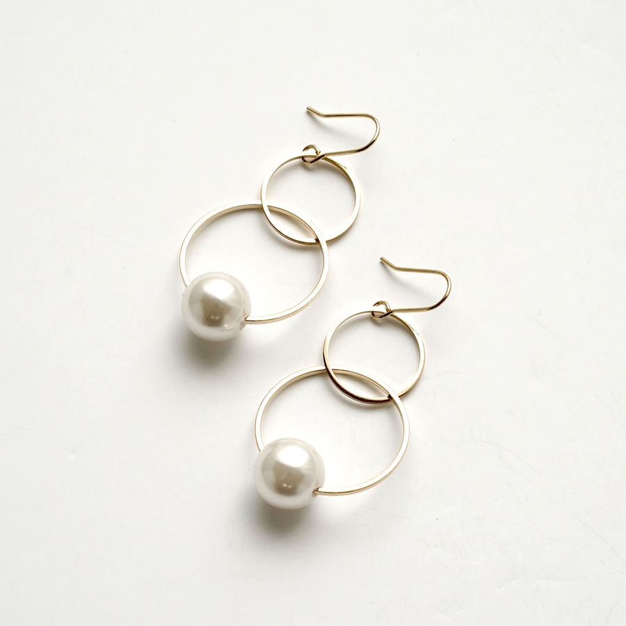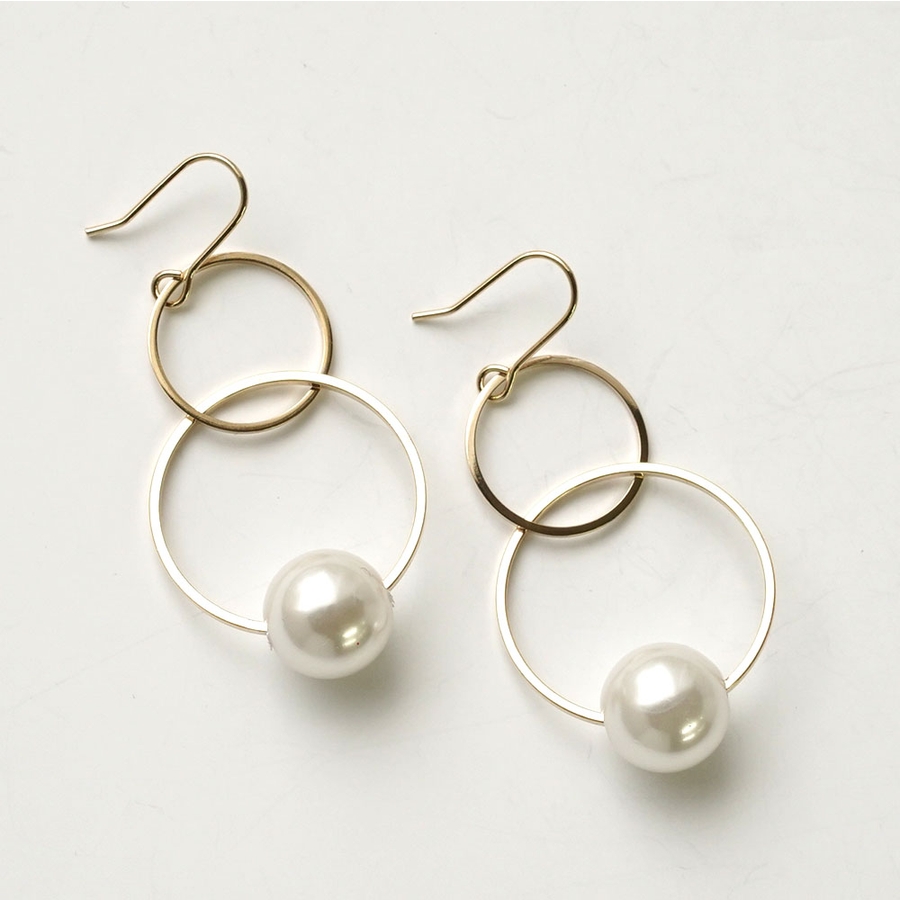 下がりのフープにパール玉をセットしたピアス