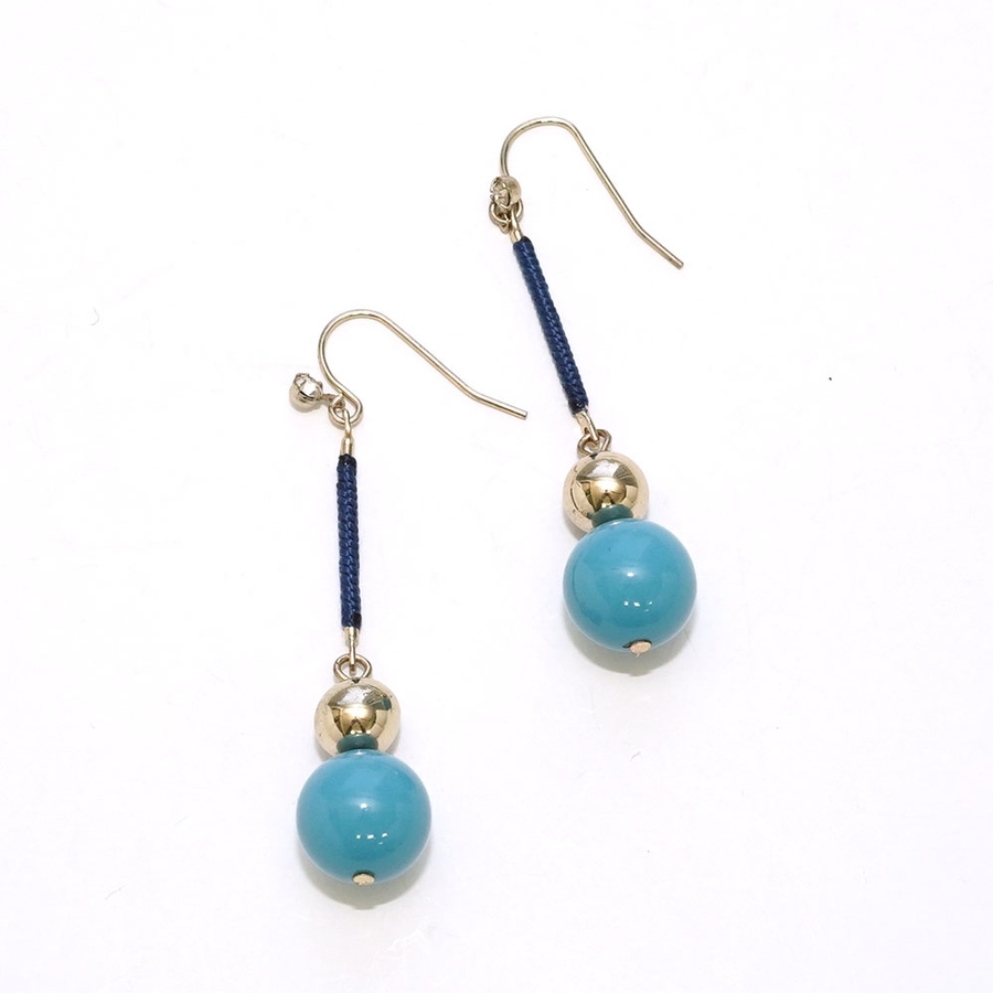 トルコ系ブルーとゴールドの耳元で揺れるデザインはさりげなく上品なイメージがあります。