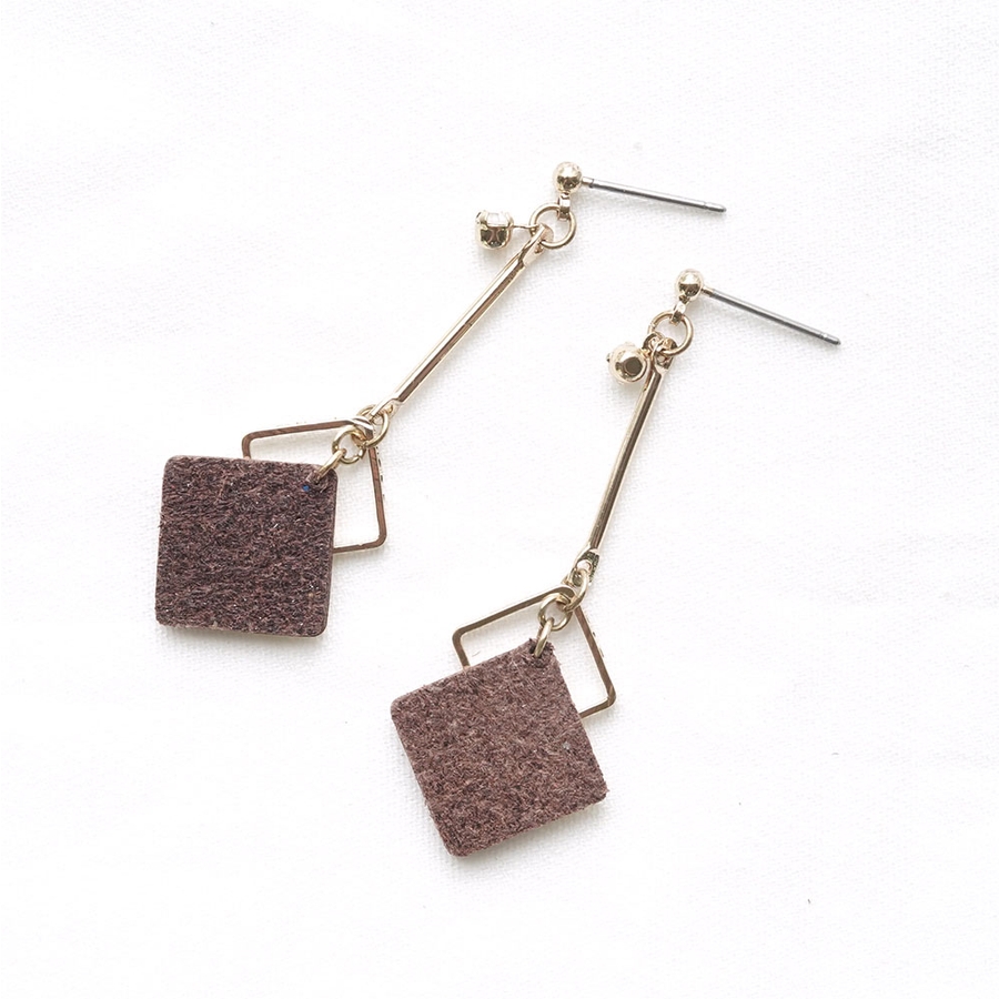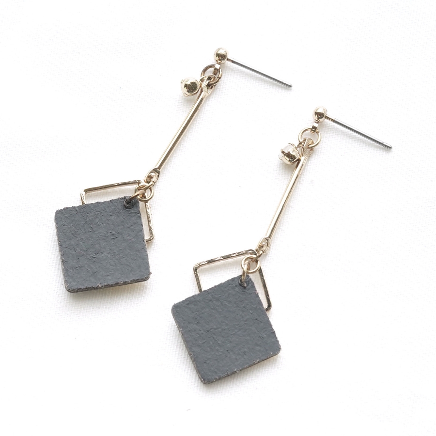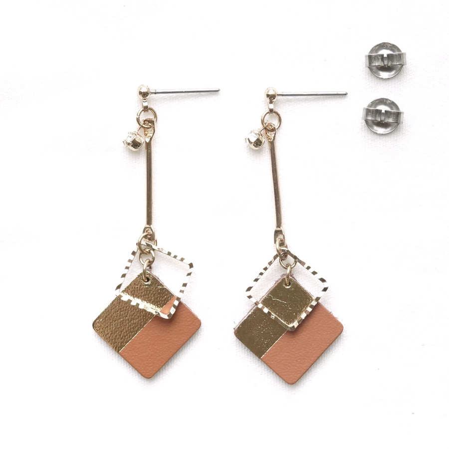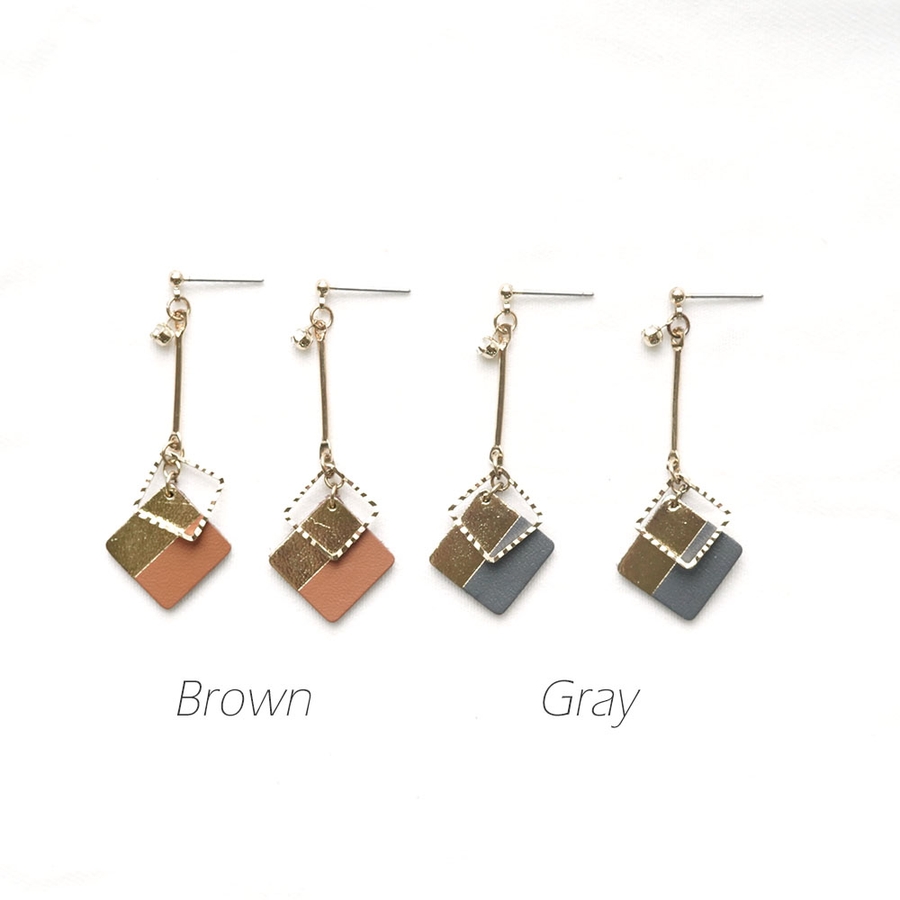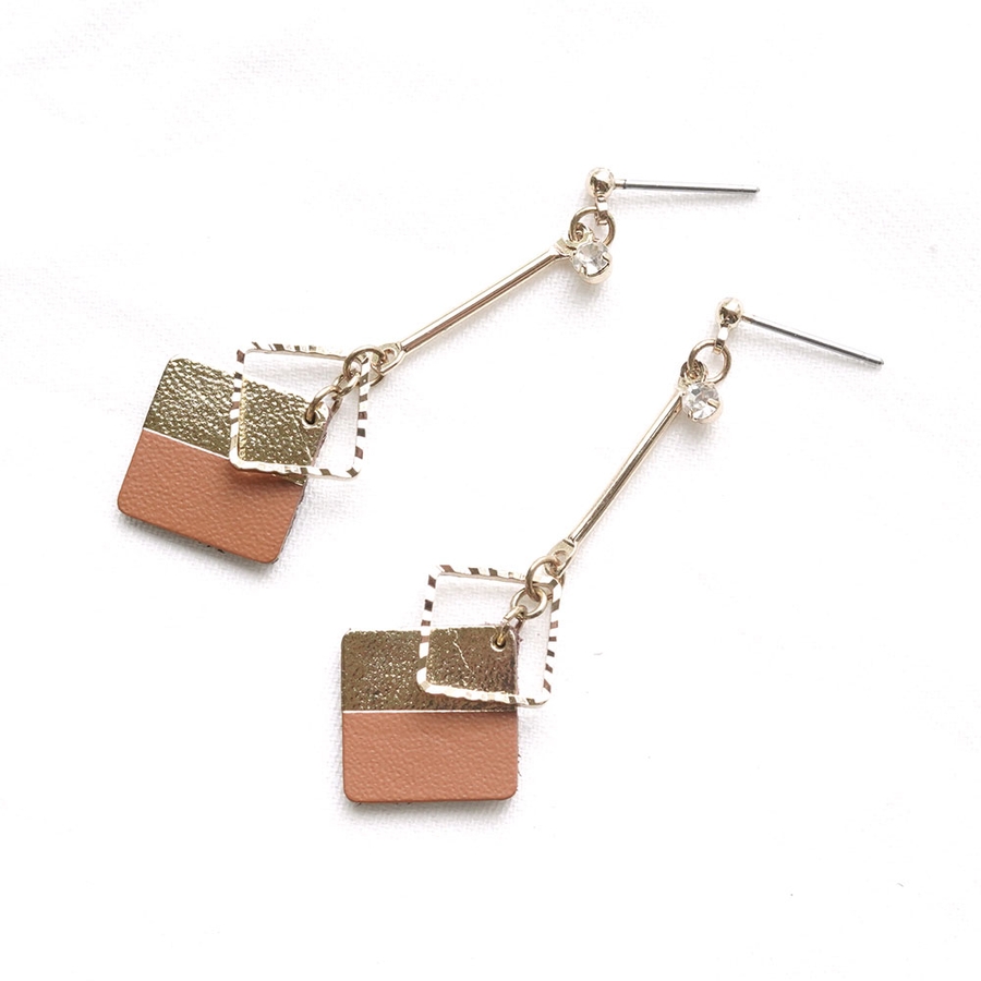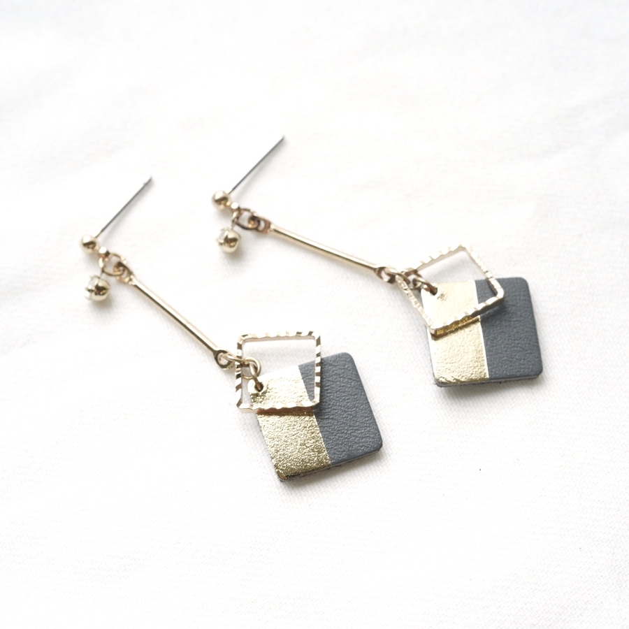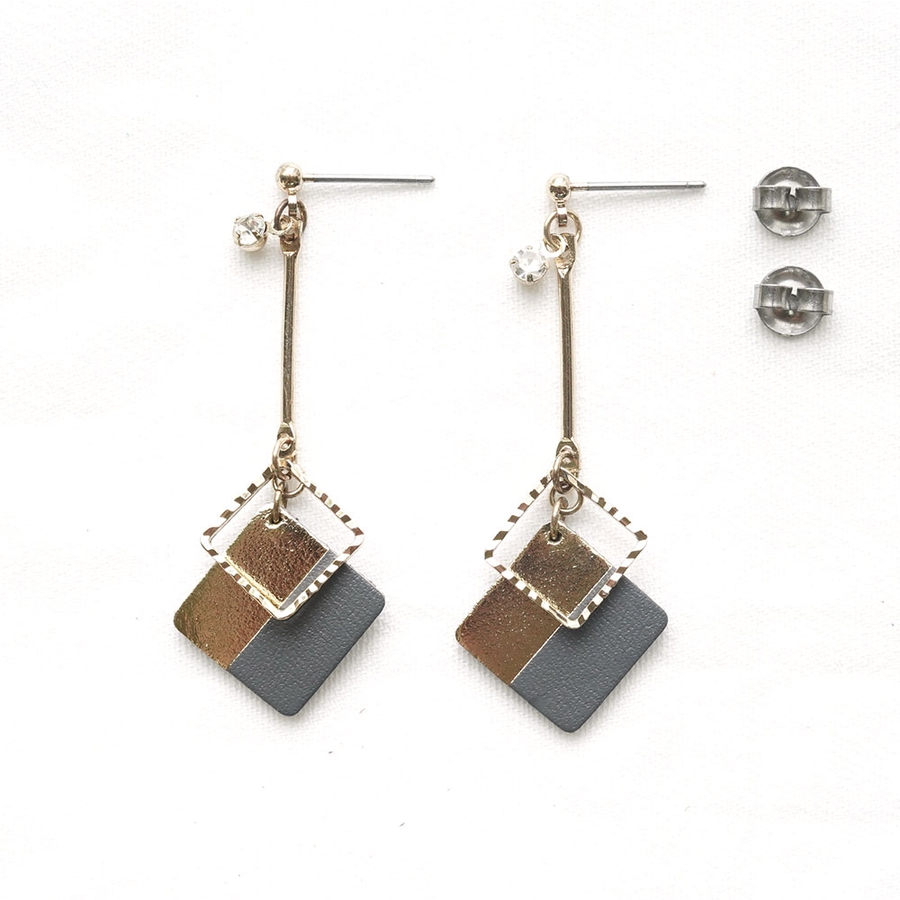 ツートンカラースクエアパーツの下がりピアス
