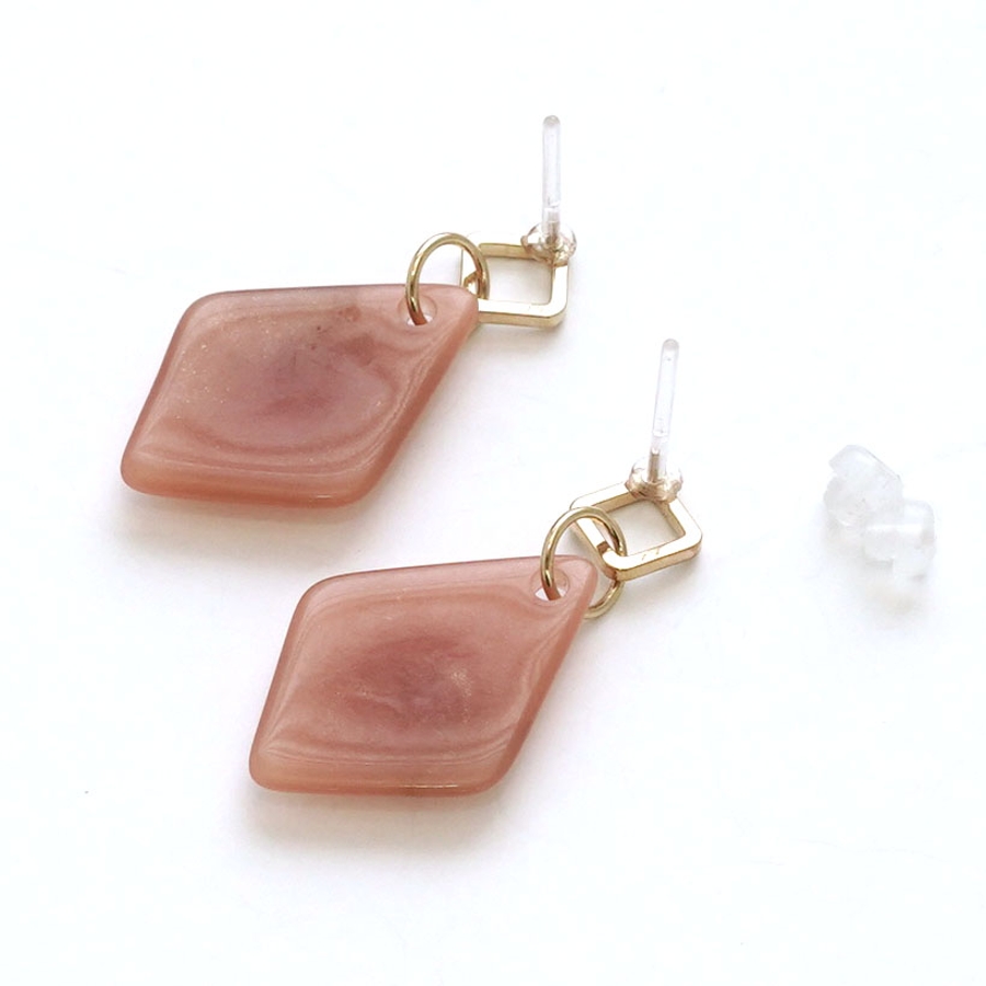アクリルのダイヤパーツに樹脂ポストを組み合わせたピアス