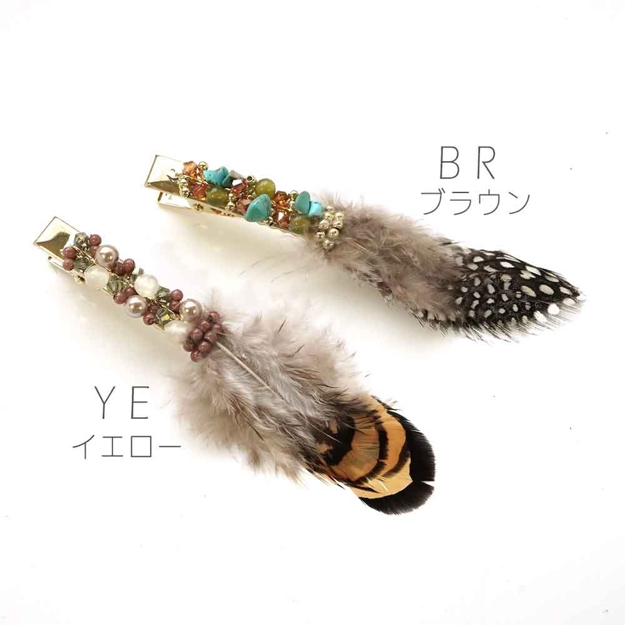 リアルフェザーを使ったビジュー付きのクリップ