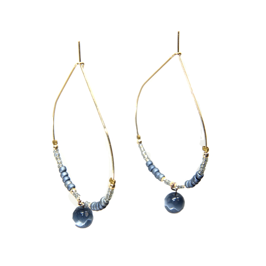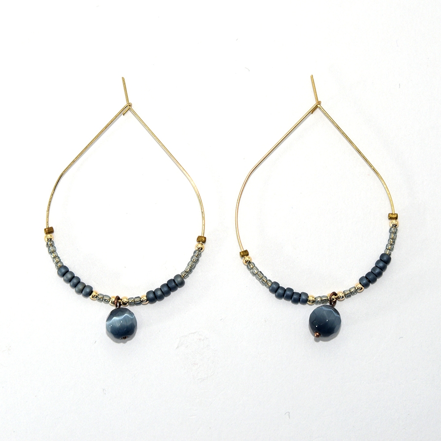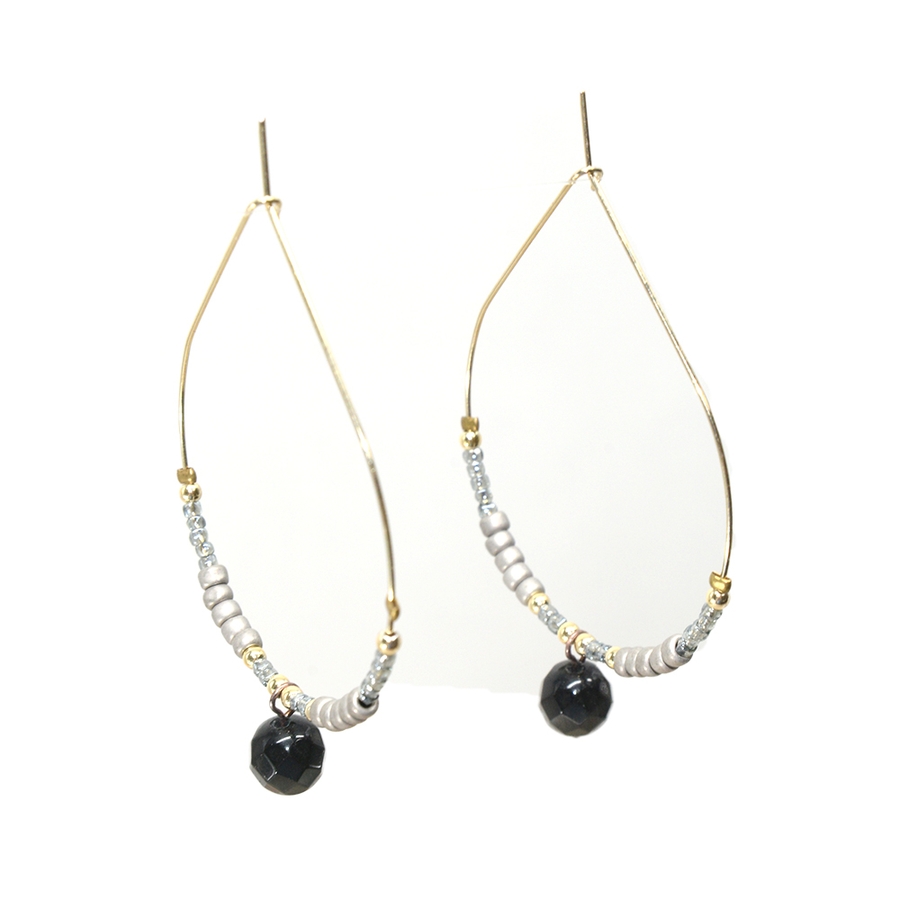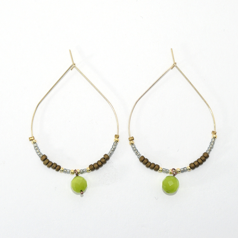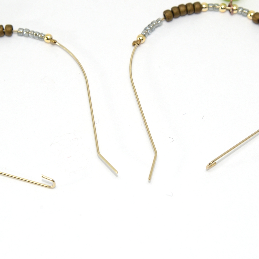 少し大きめのフープにグラデーションにビーズを通し、カジュアルにでもフォーマルでも使えます。