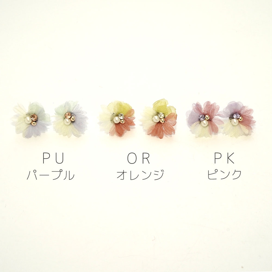 3色フラワーピアス