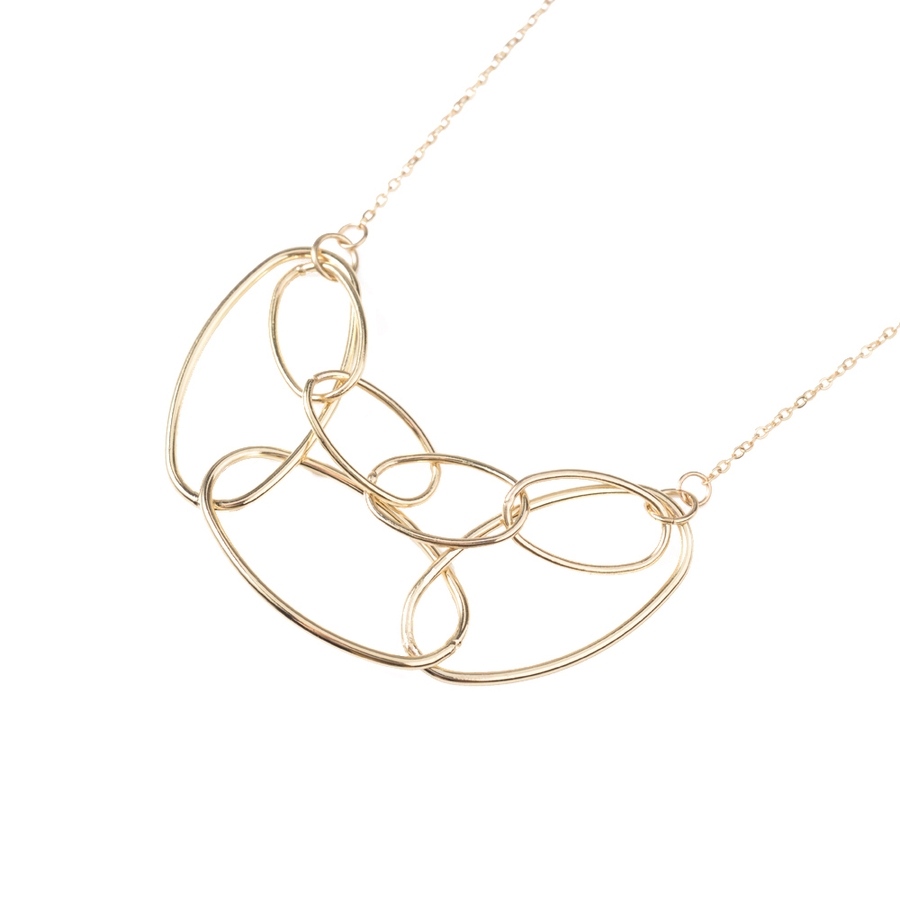 一見ランダムに見えがちですが、2種類のオーバルパーツを組み合わせてデザインしたトップが目を惹くネックレス。存在感はあるもののスタイルを邪魔しないので幅広いコーディネートにマッチ。ベーシックな着こなしのアクセントとしてもオススメのアイテム。