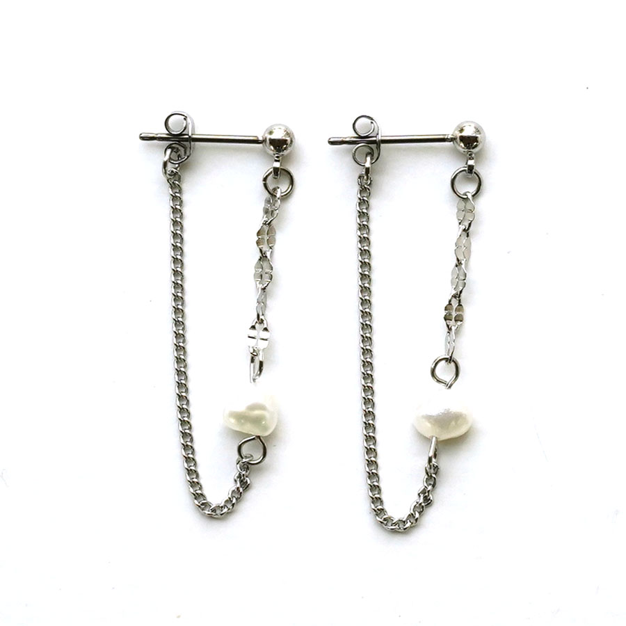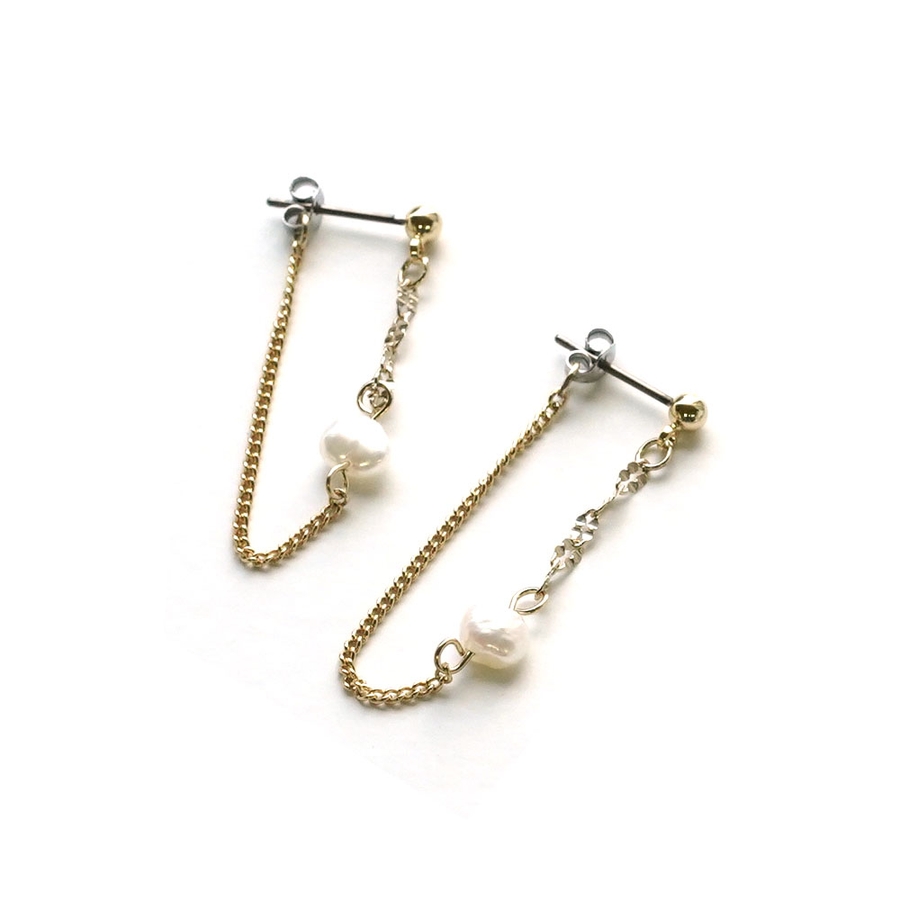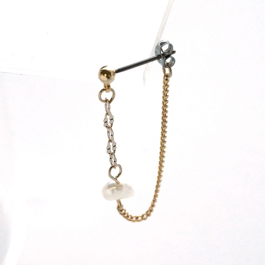 チェーンとキャッチがつながって、耳の後ろまできれいに見せます