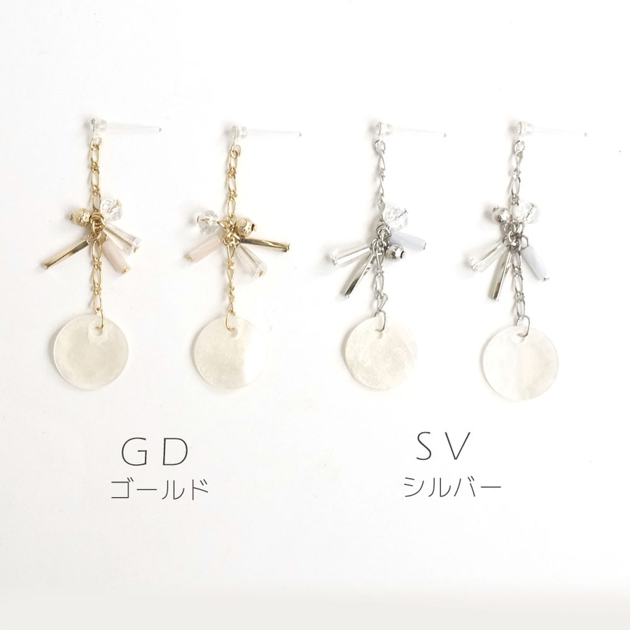 耳元で揺れる小ぶりのシェルとカットビーズは艶やかで上品な耳元を演出します。