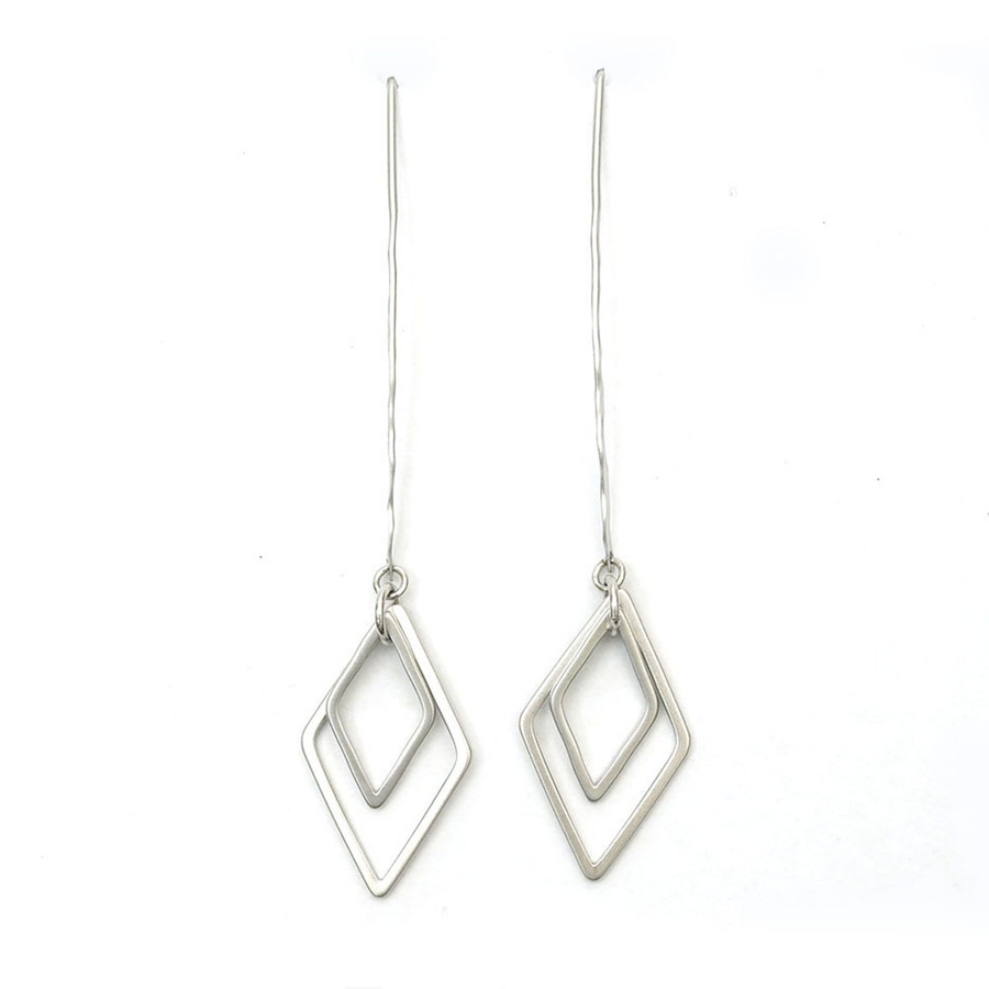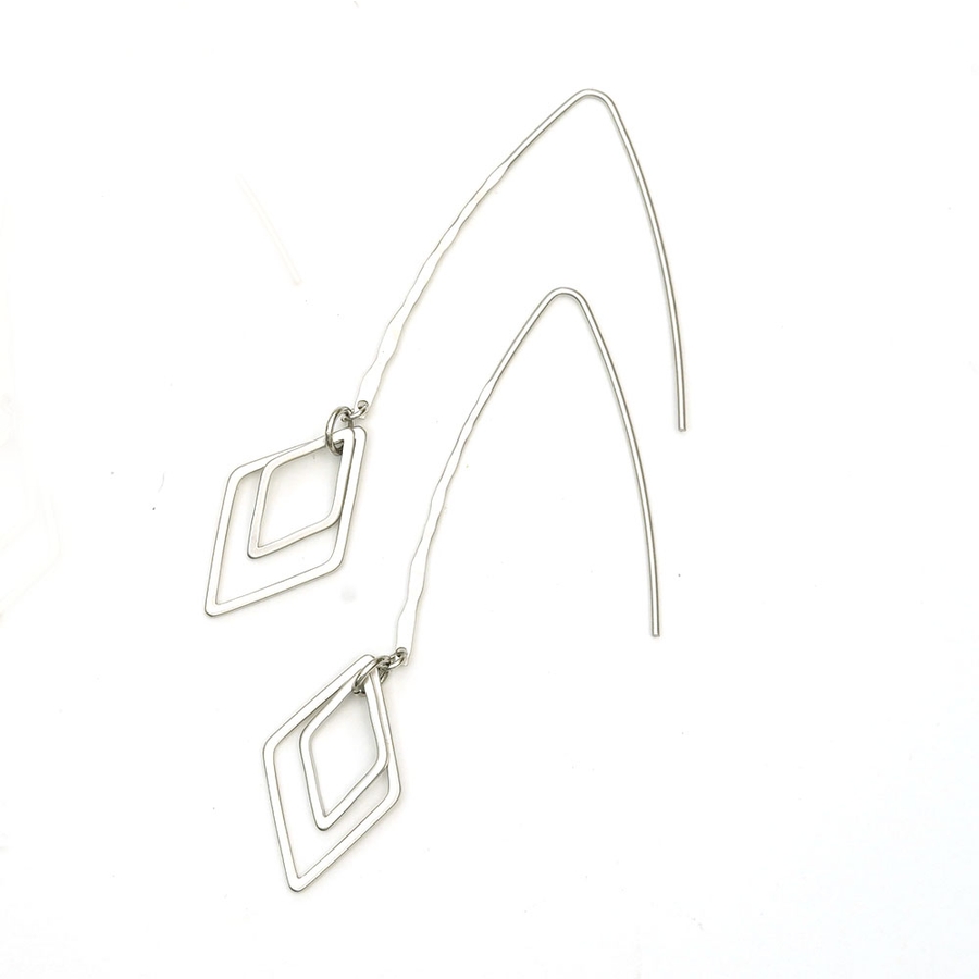 大振りのフックにダイヤ型フープのピアス