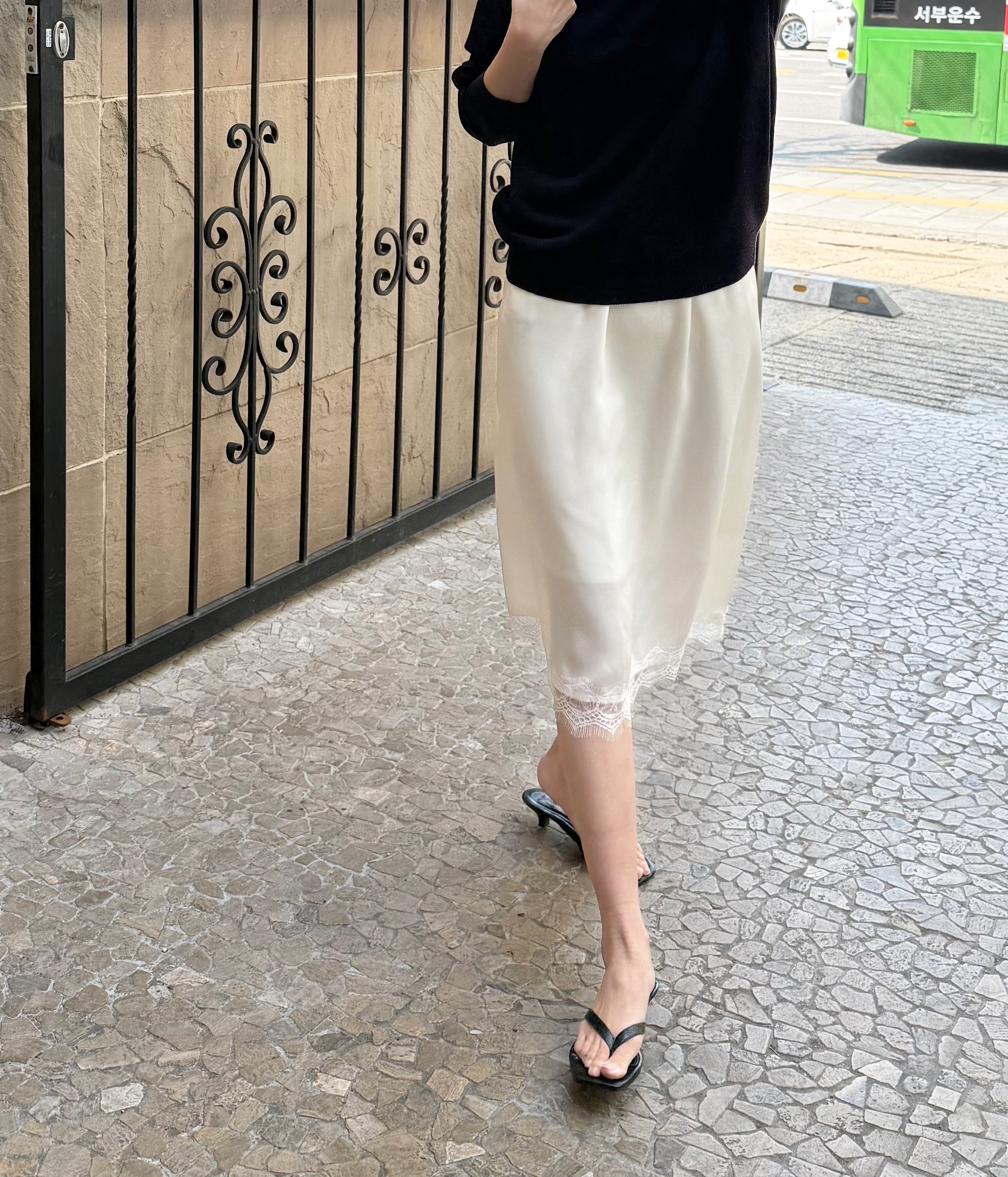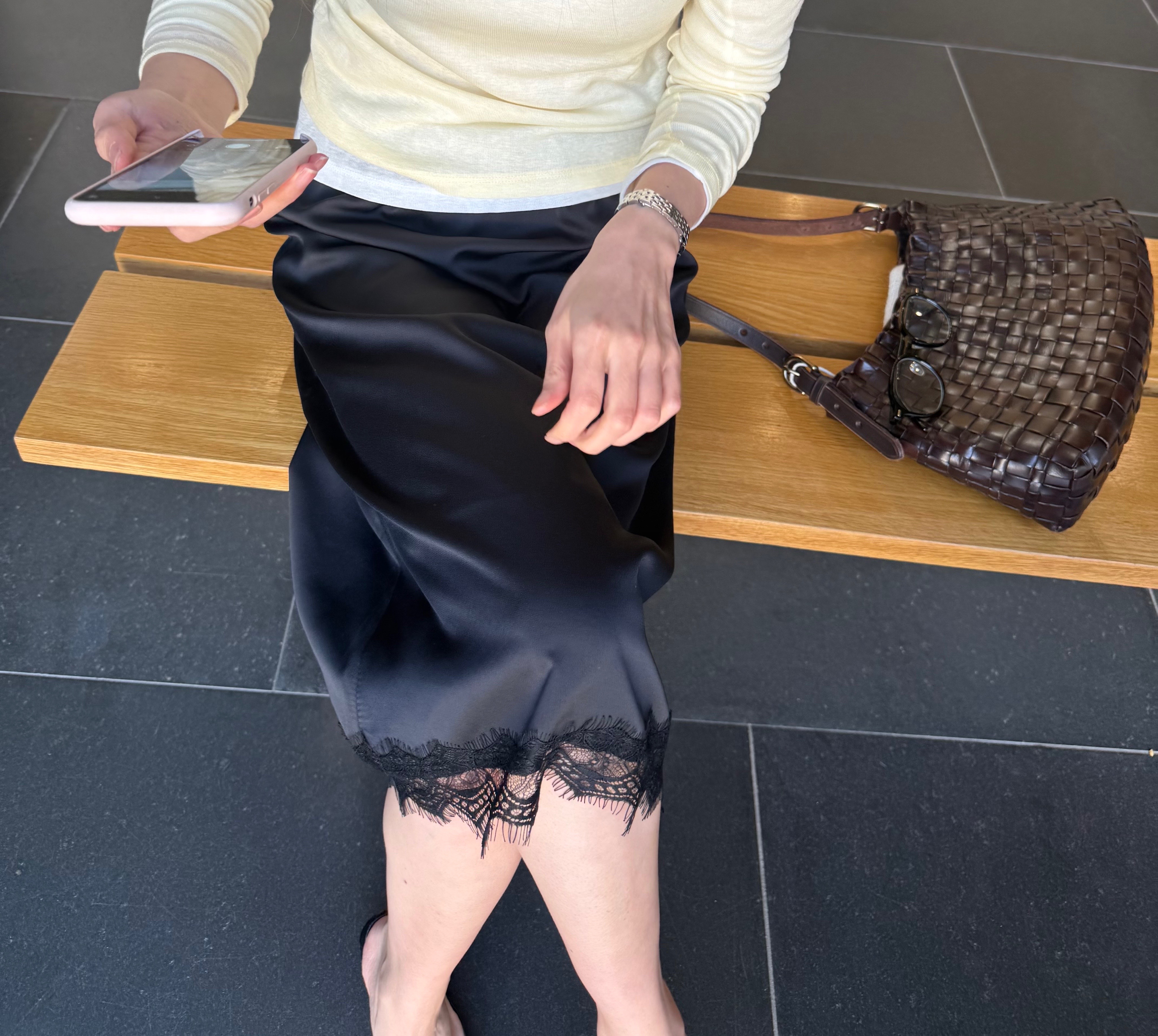 サテンナロースカート 韓国ファッション