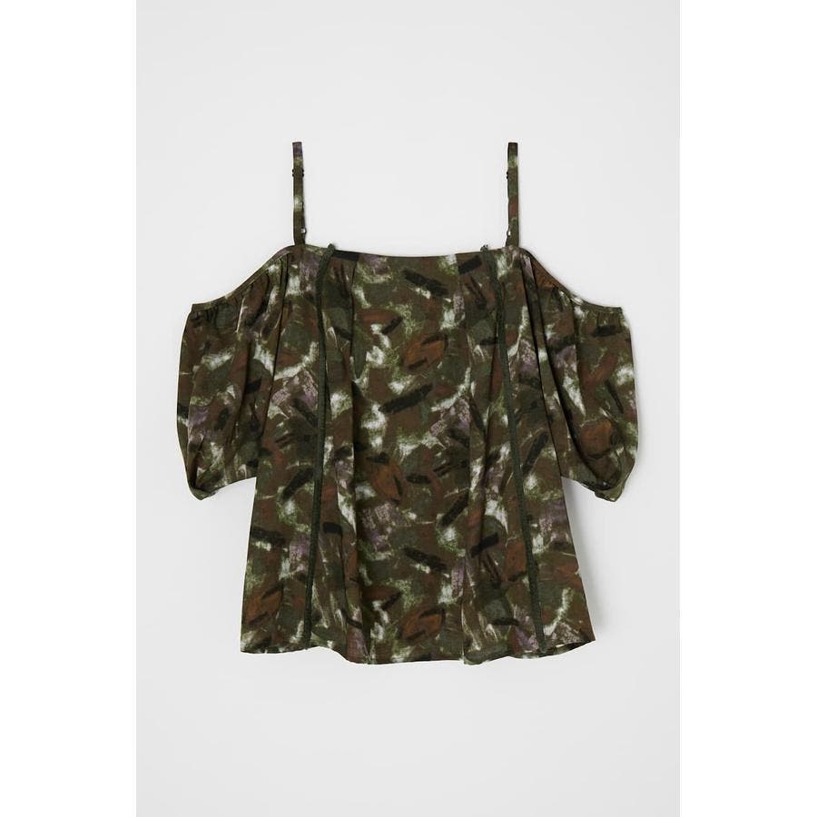 オフショルデザインの袖がポイントのキャミTOPS。縦に走るチビフリンジがアクセントです。柄はフランスにある「ミュルーズ染織美術館」のアーカイブから厳選した柄にMOUSSYがアレンジを加えたデザインとなっています。