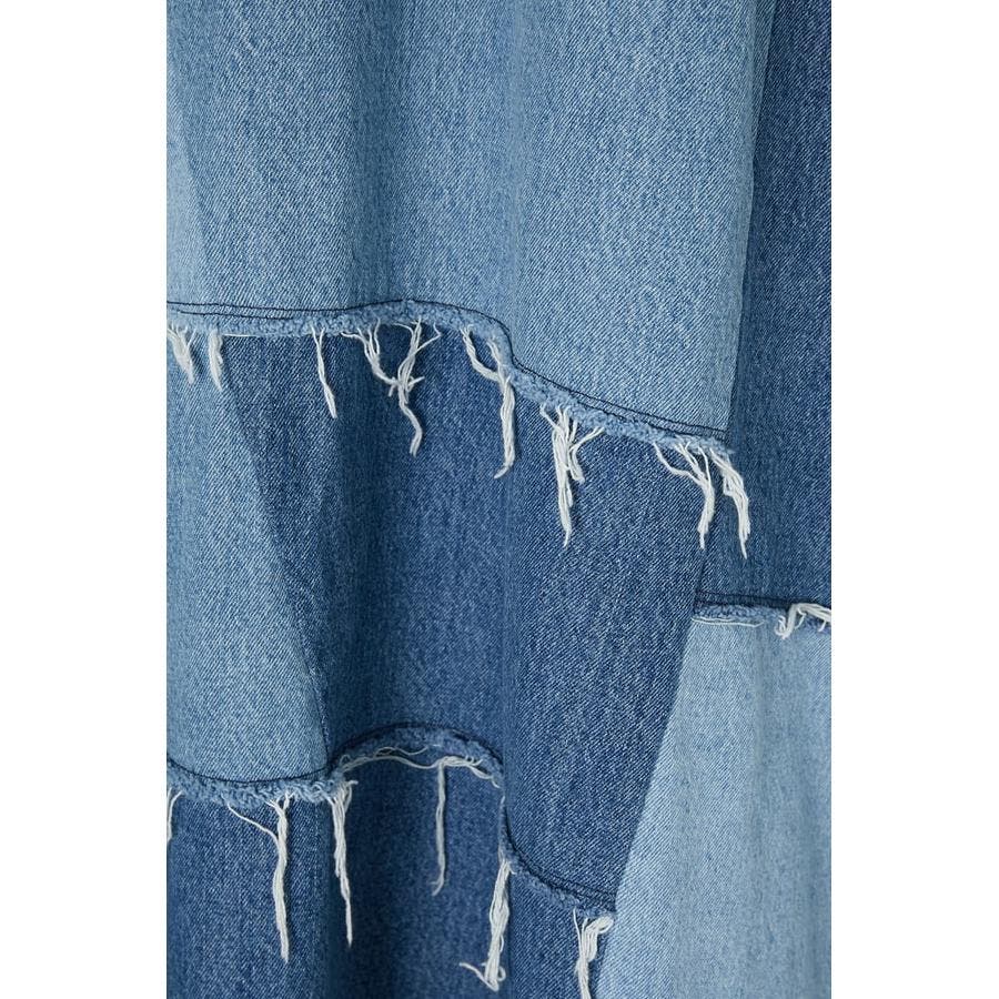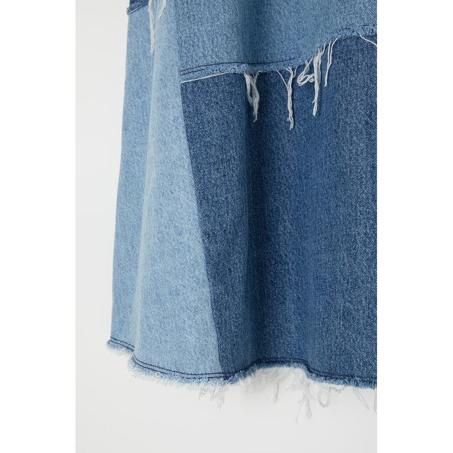 大胆なパネル切り替えが入ったデニムロングスカート。ランダムにカットオフディテールを入れることでよりヴィンテージ感のある仕上がりに。履いた際に立体感がでるよう、濃淡のついた生地を使用しています。着丈もあえて長めのマキシ丈に設定しているので、シンプルなトップスに合わせるだけで決まる一枚です。