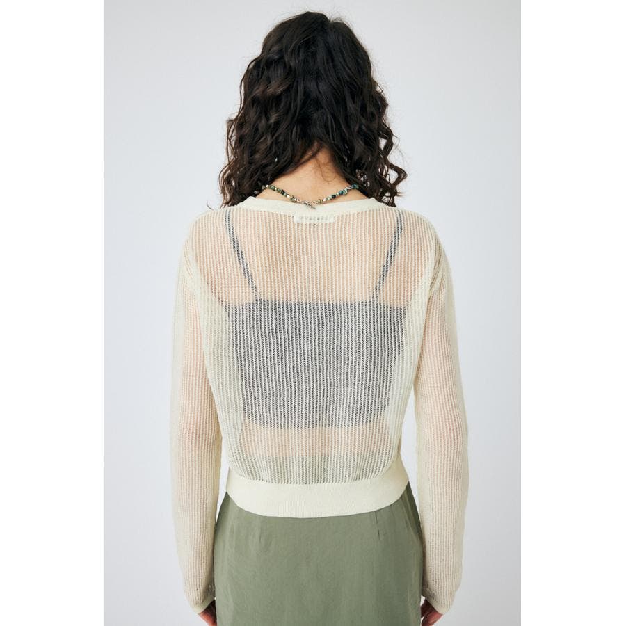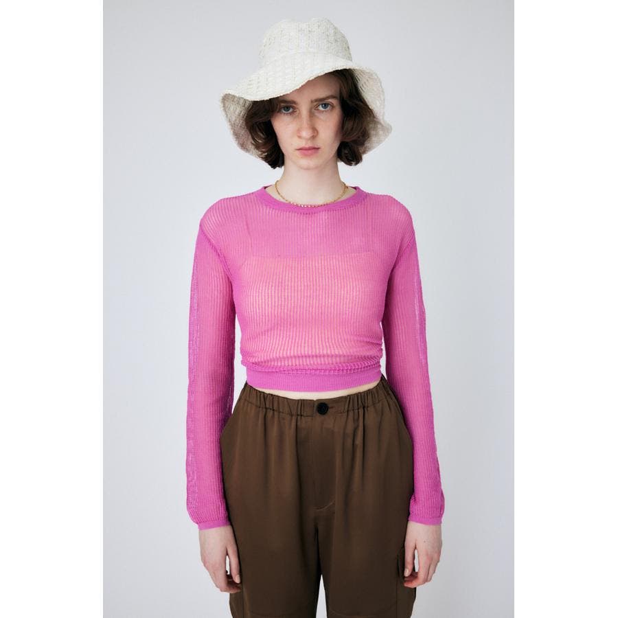コンパクトなサイズ感と程よく透け感のあるメッシュデザインがポイントのトップスです。
