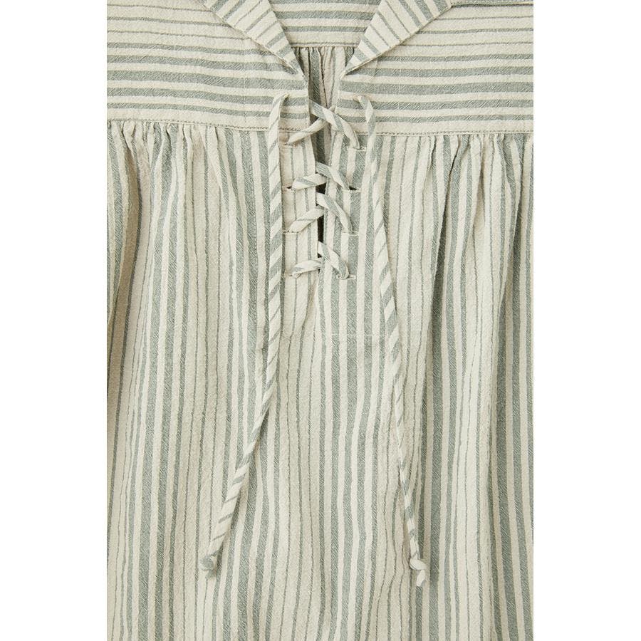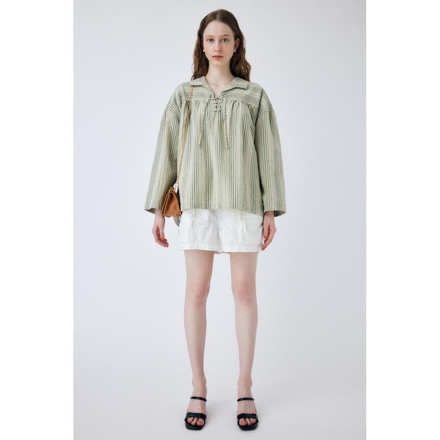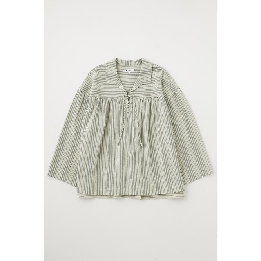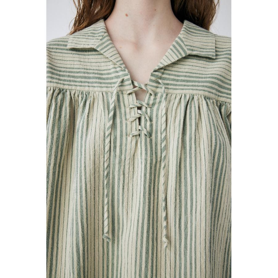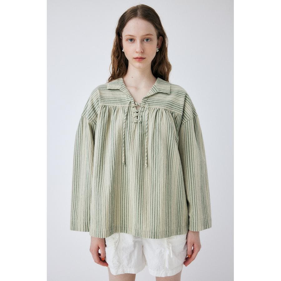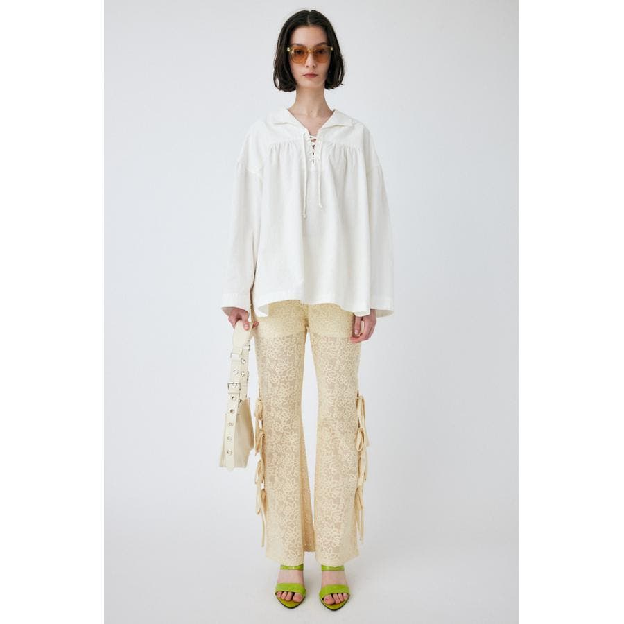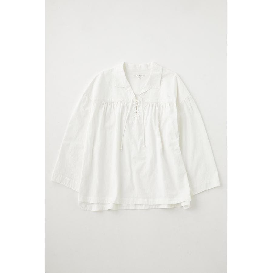 胸元のレースアップがポイントで、紐を垂らしてゆるっと着ていただくのがおすすめ。