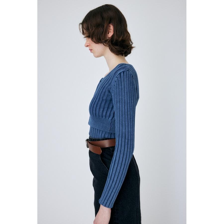 独特のビンテージライクなカラーが目を引くニットカーディガン。