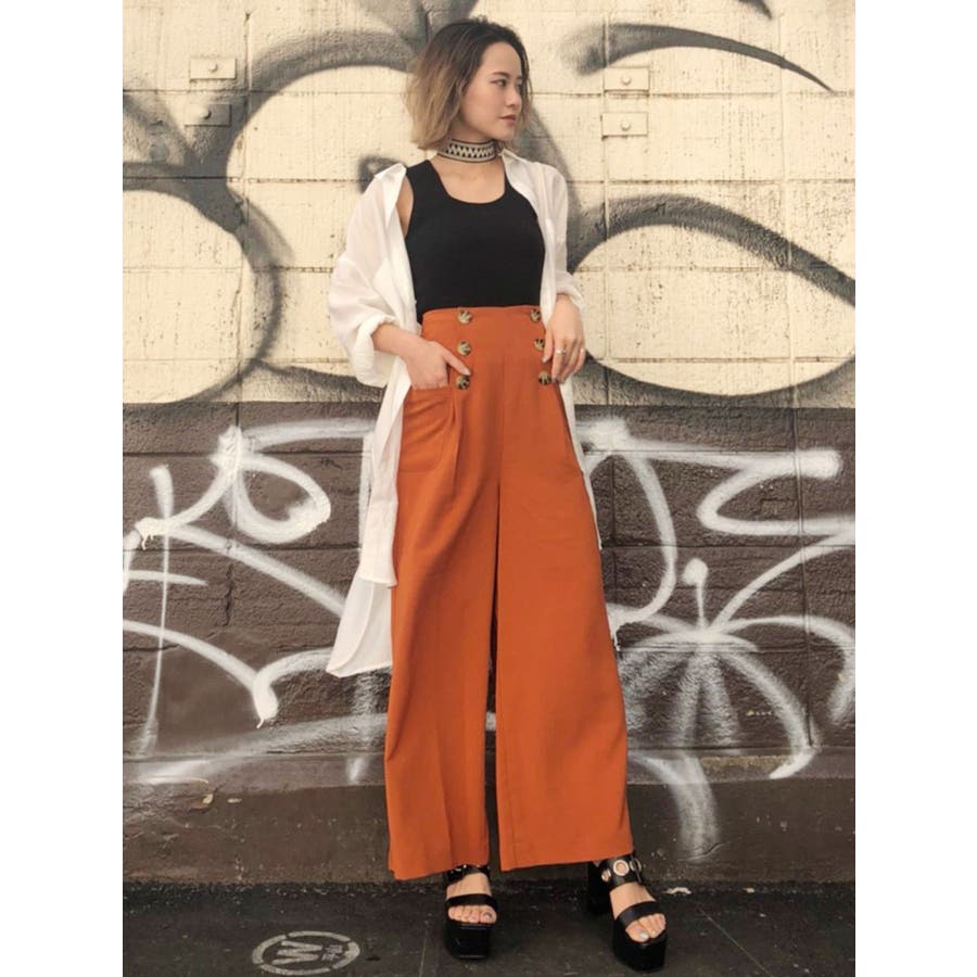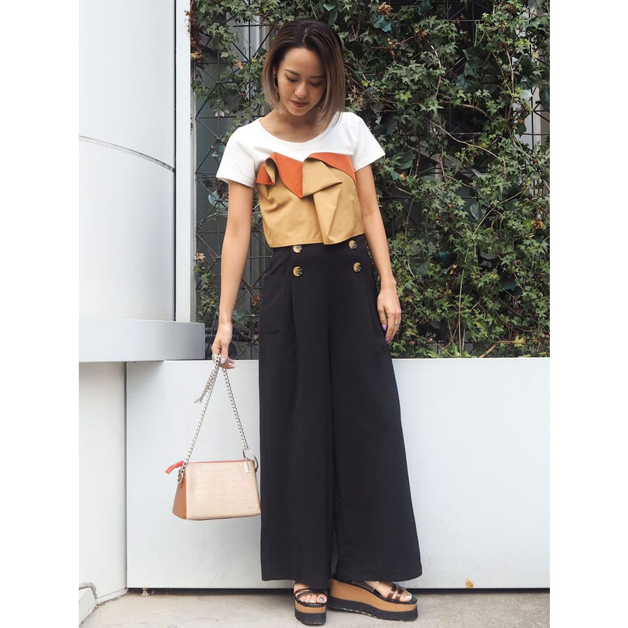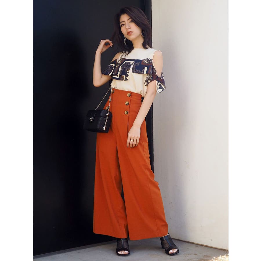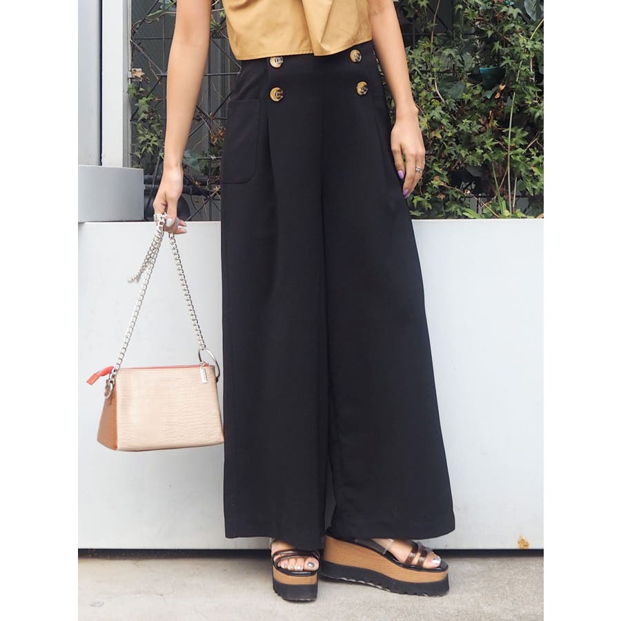 ■アイテム 大ぶりなマーブルボタンでメリハリの効かせたワイドパンツ。サマーシーズンでも不快感なくはけるサラッとした生地感です。 ■スタイリングカジュアル:ミニマルなニットやカットと合わせてシンプルコーデで。フェミニン:ブラウス合わせでキレイめ大人コーディネートがGOOD!今季は花柄のオフショルシャツがお勧め!!
