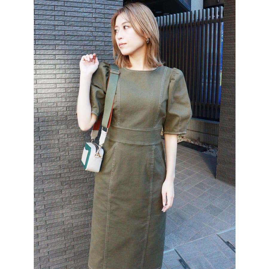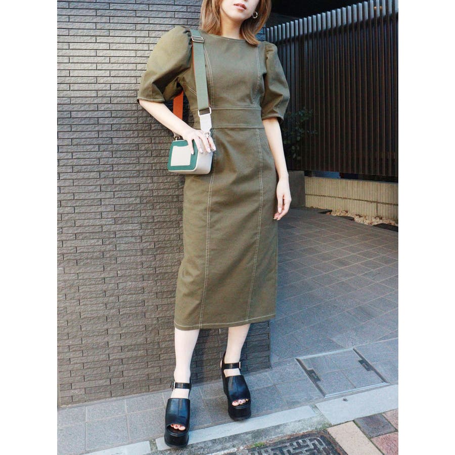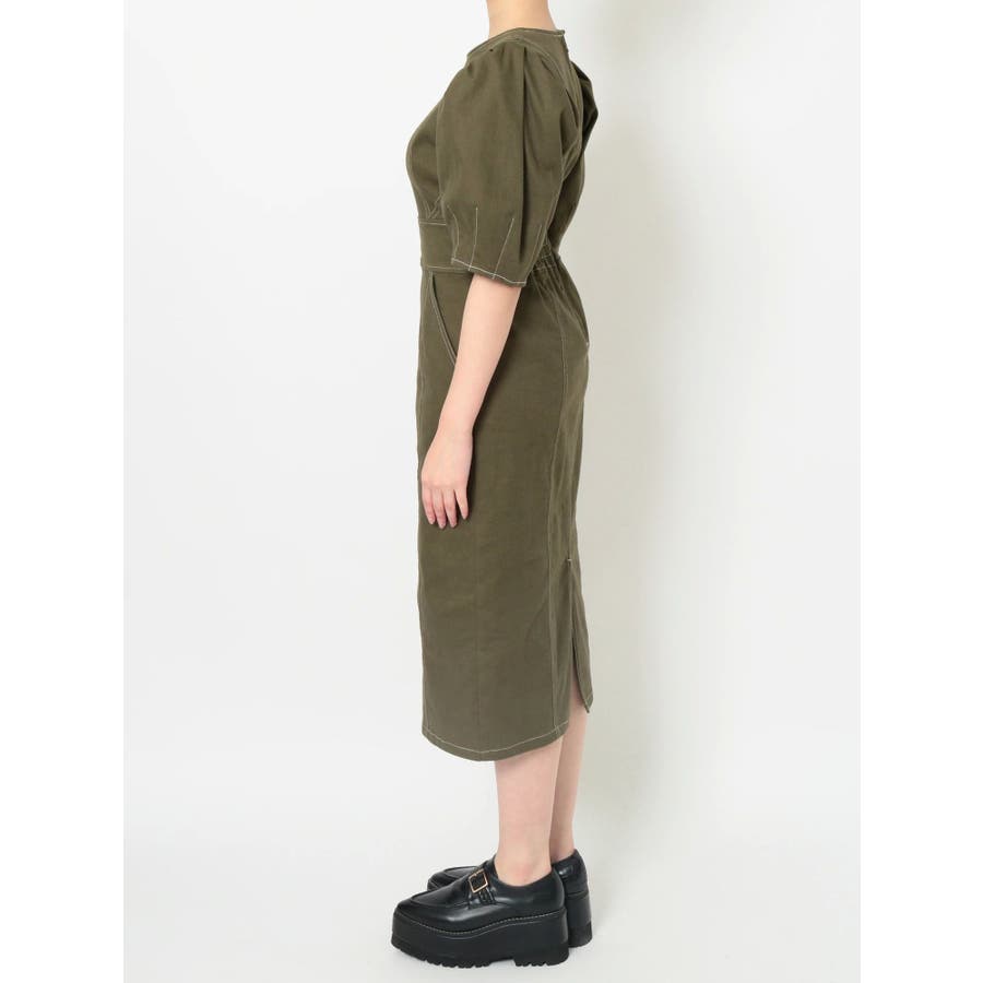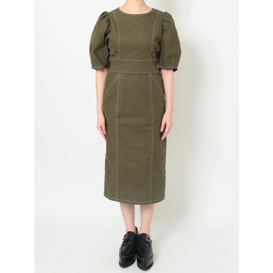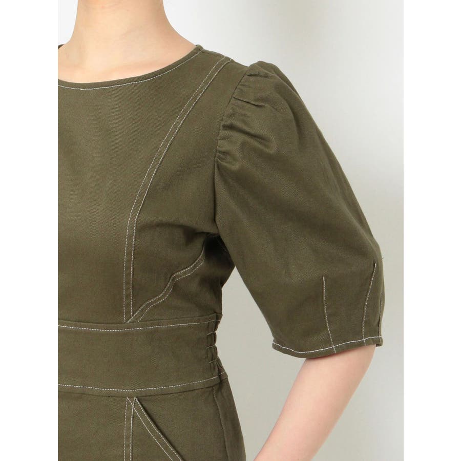 ギャザースリーブステッチワンピース