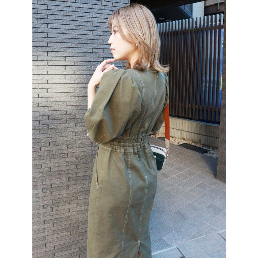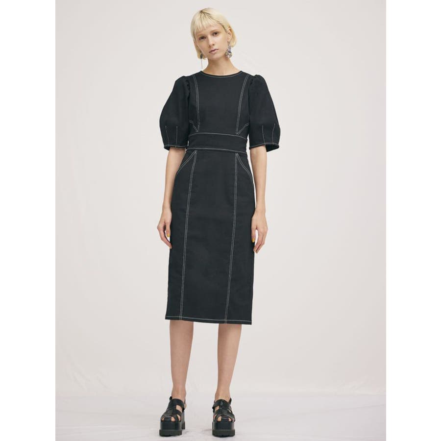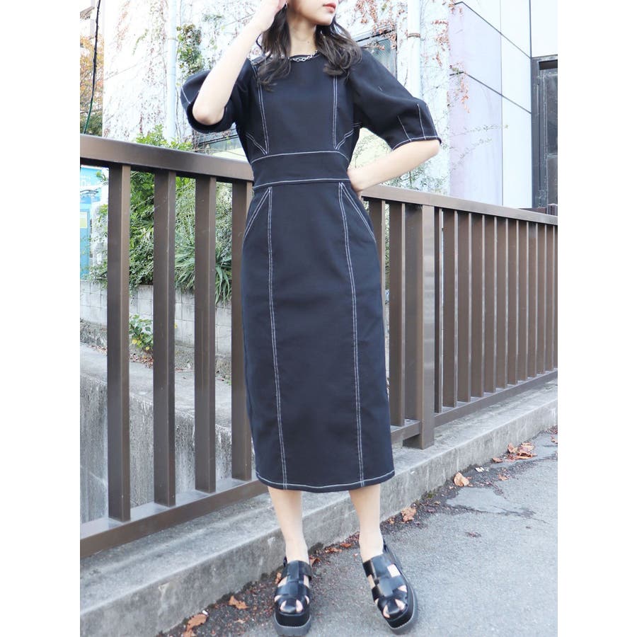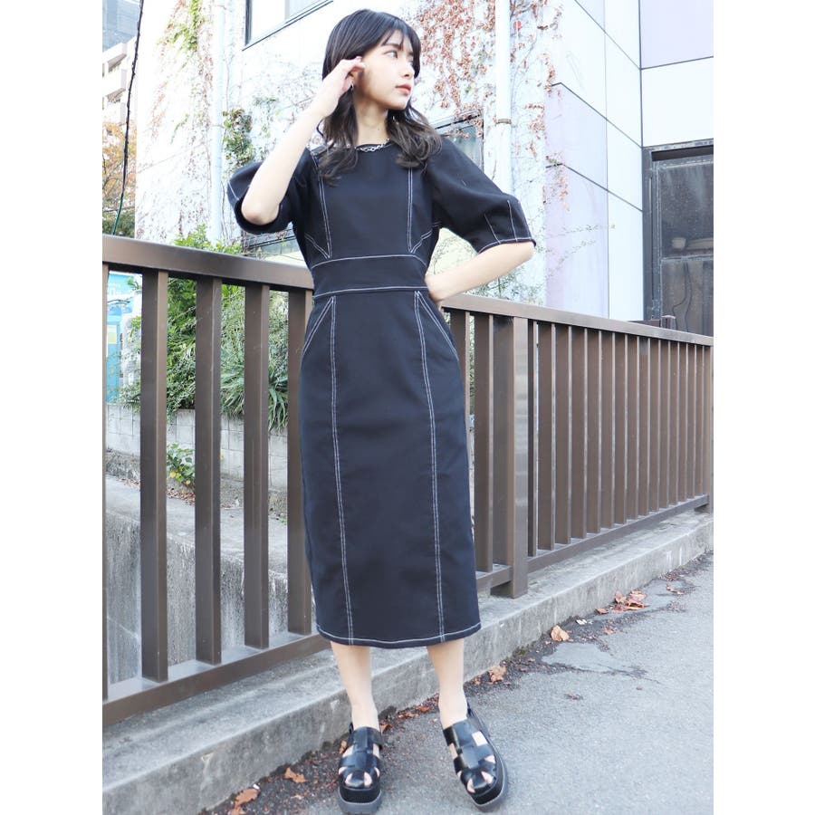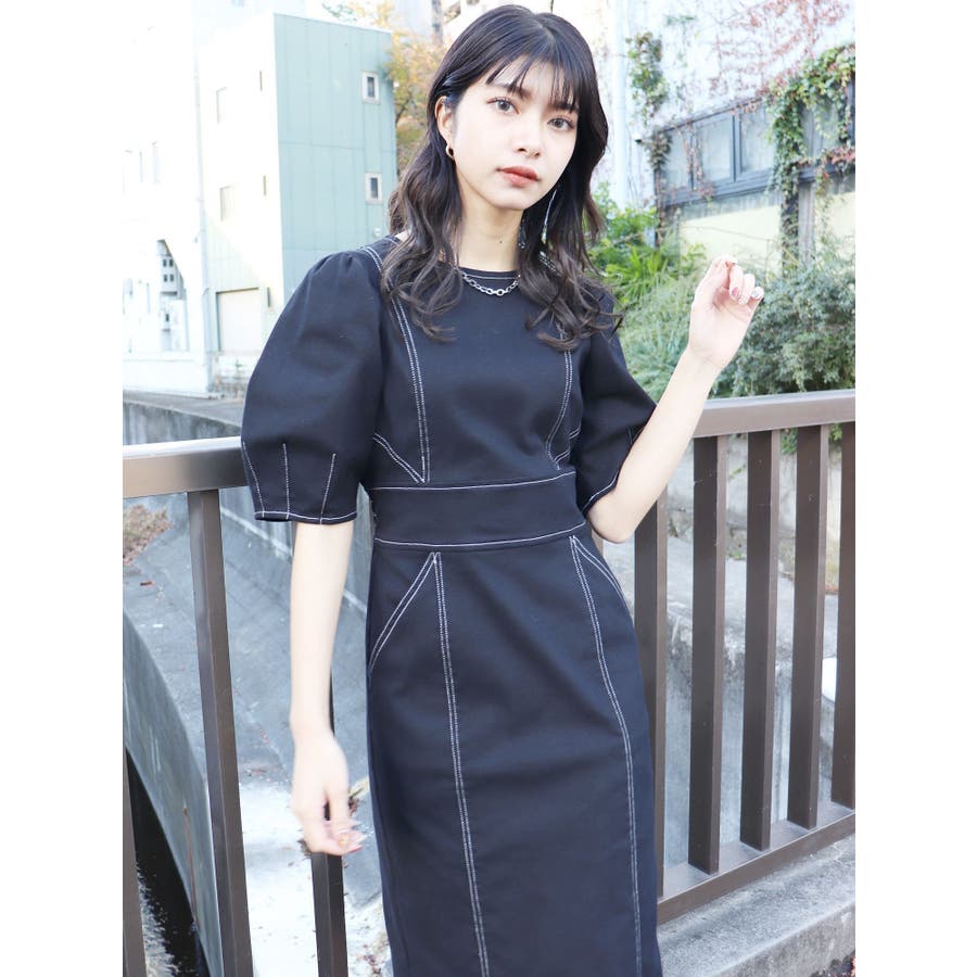 ギャザースリーブステッチワンピース
