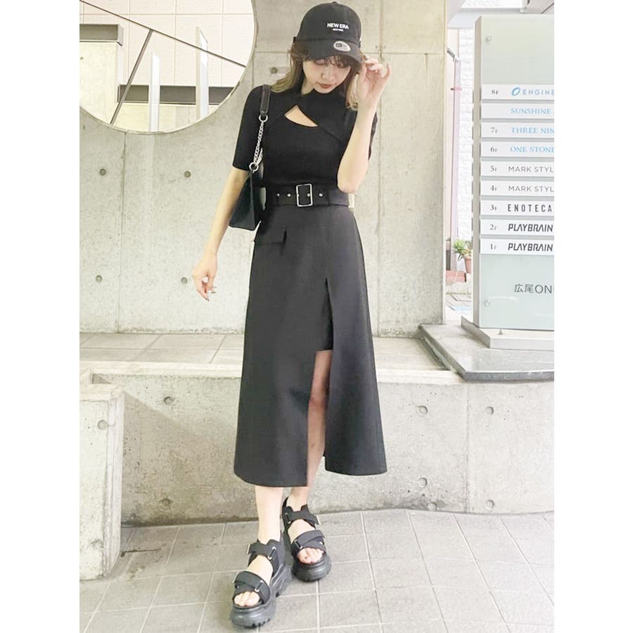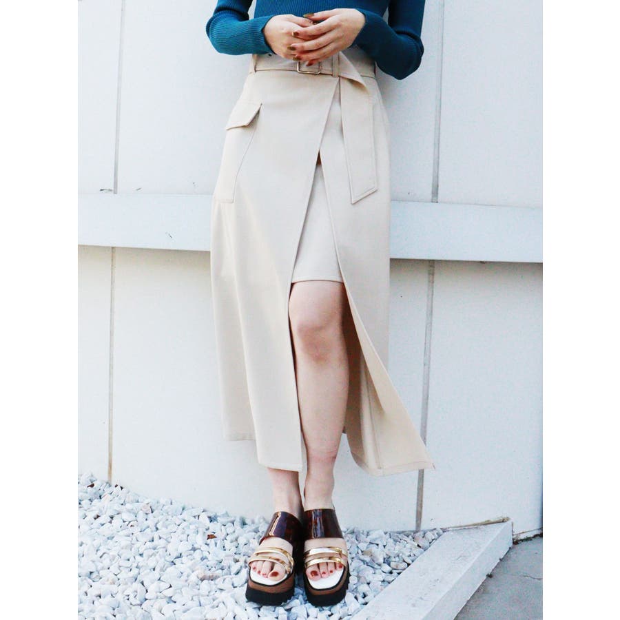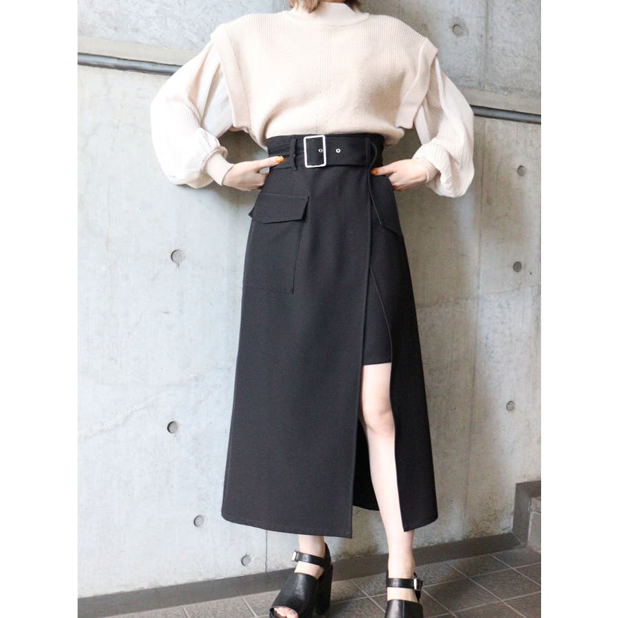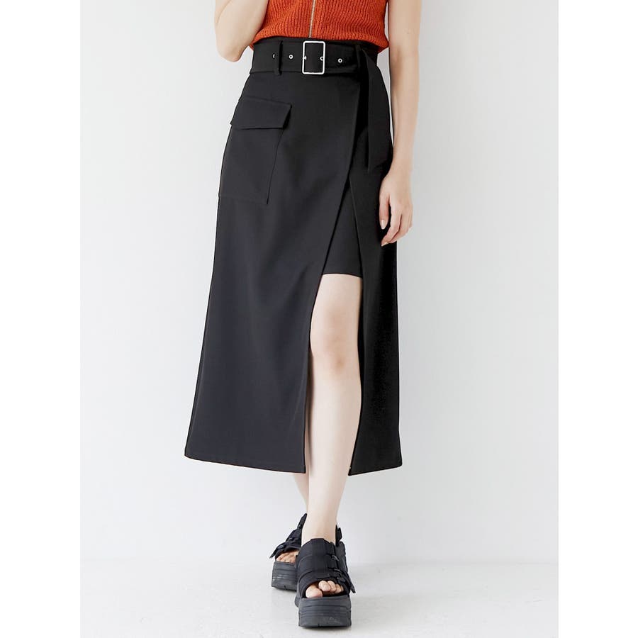 ワイドベルトラップスカート