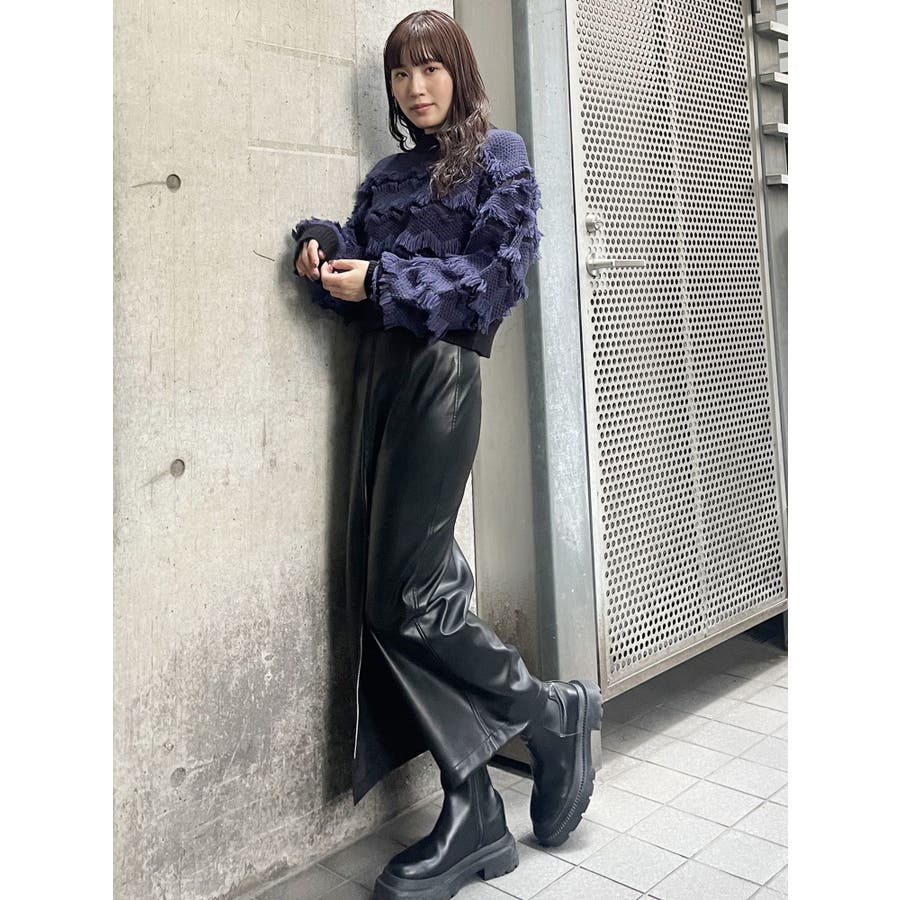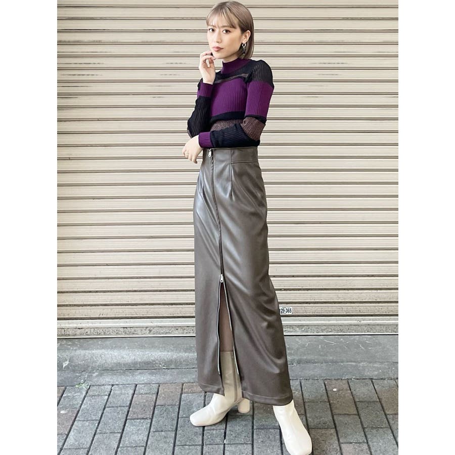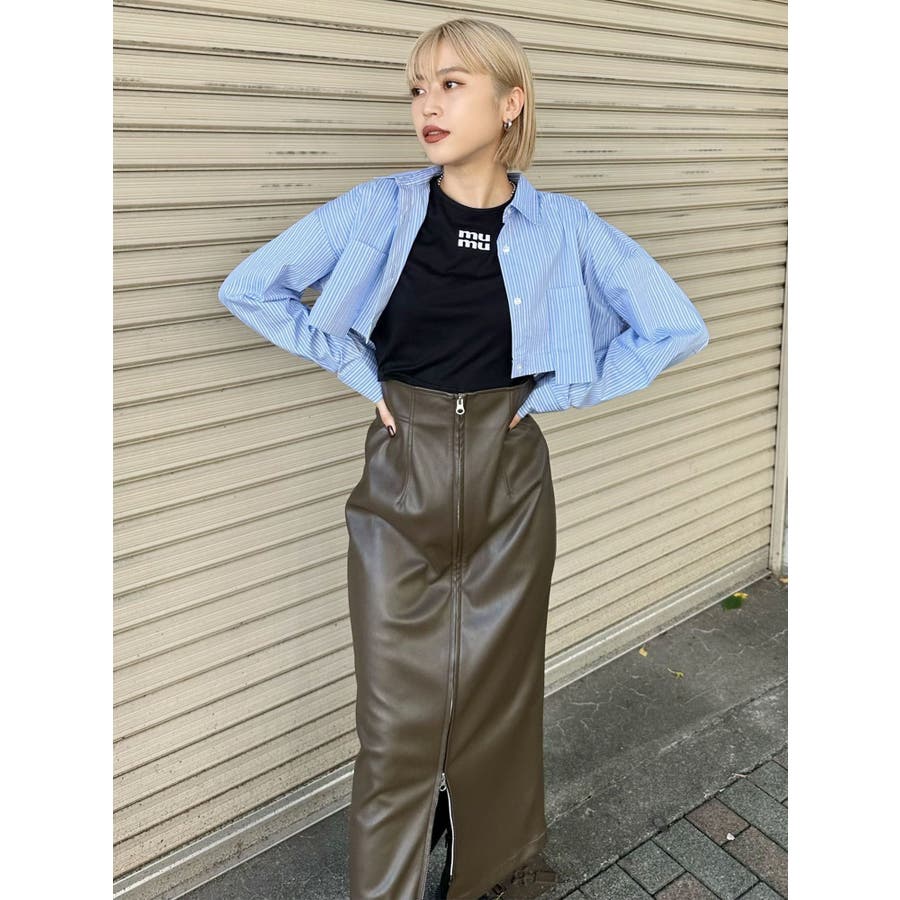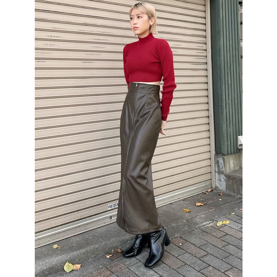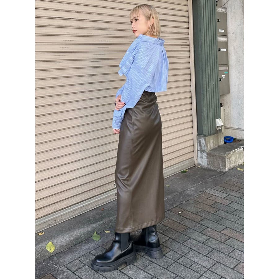 マルチウェイナローフェイクレザースカート