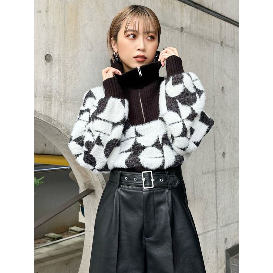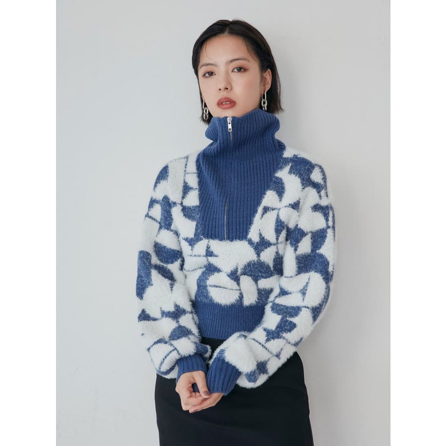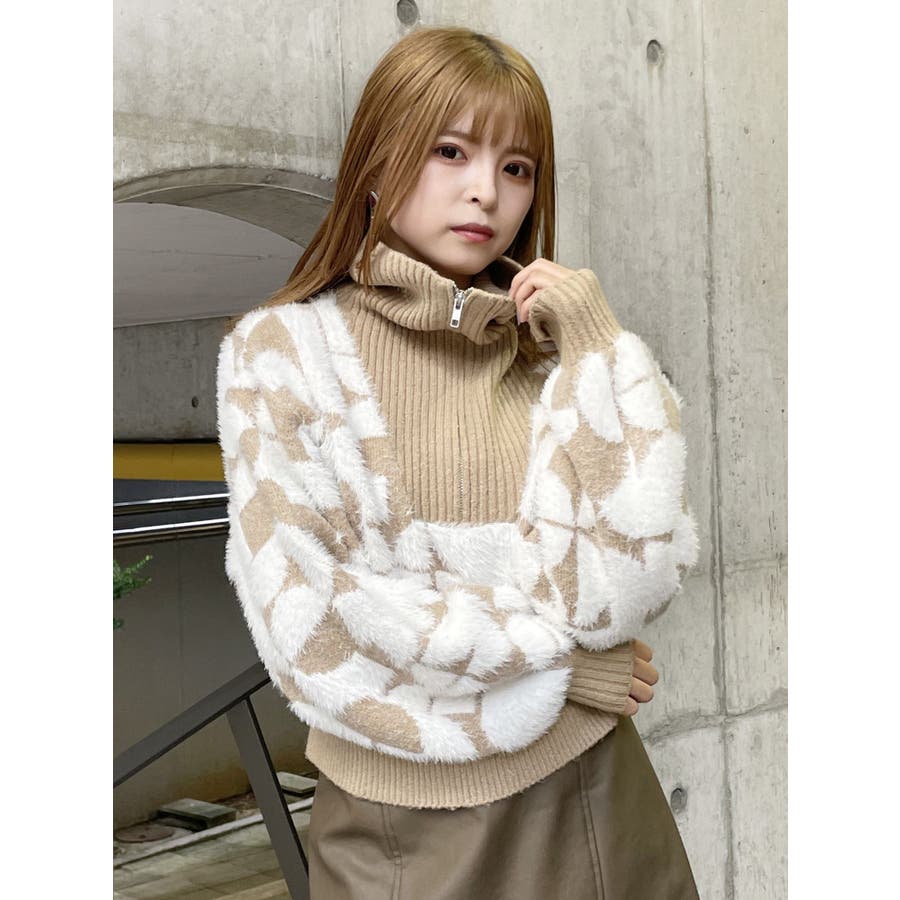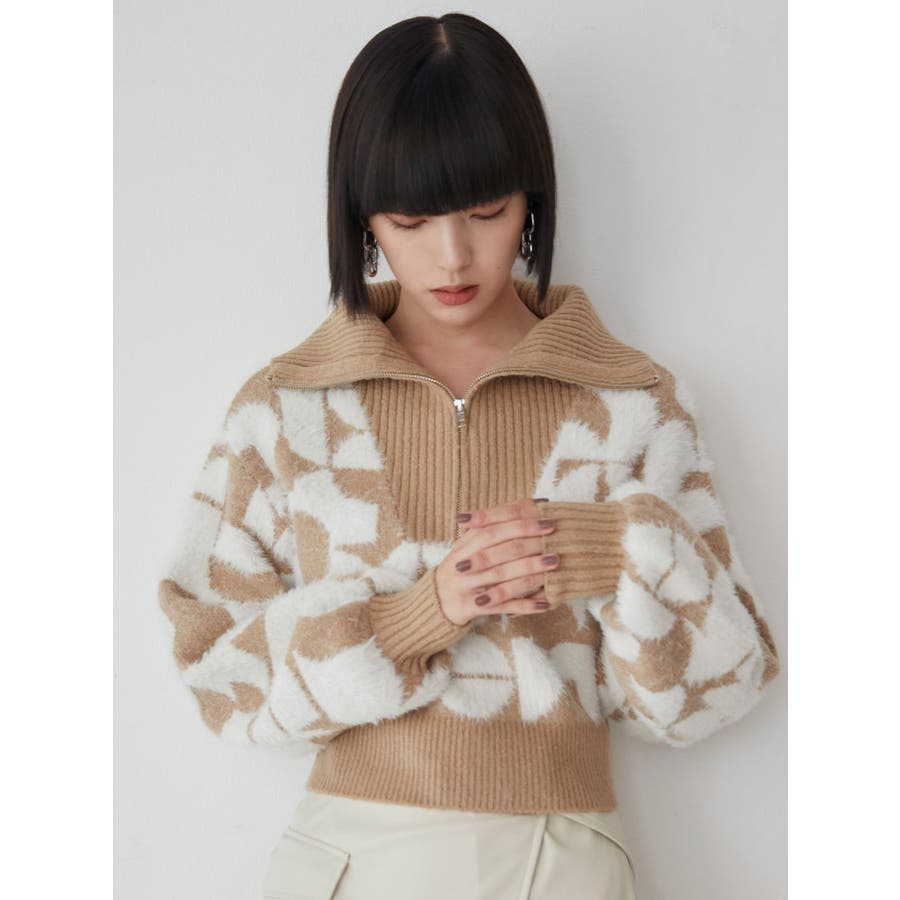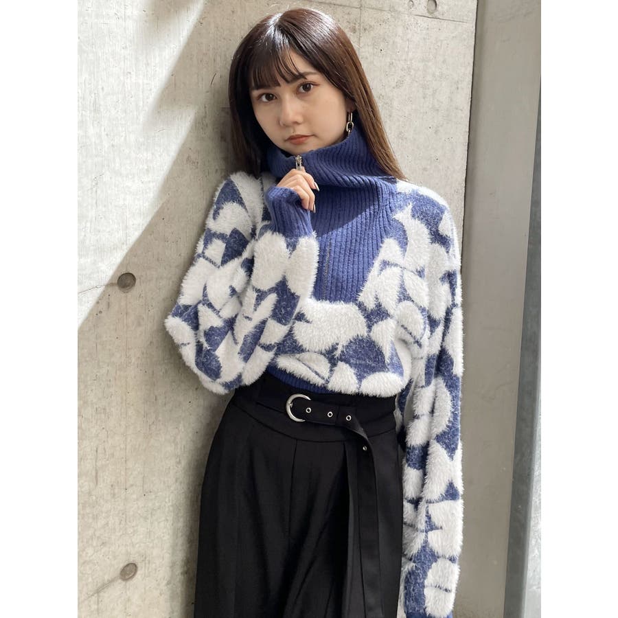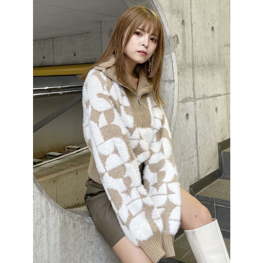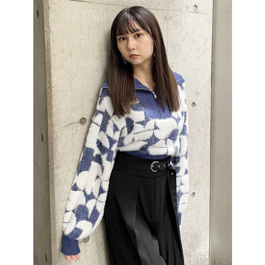 フロントZIPフェザーニット